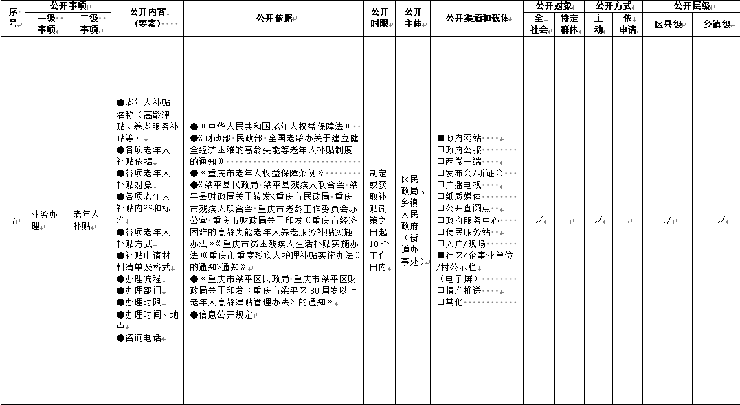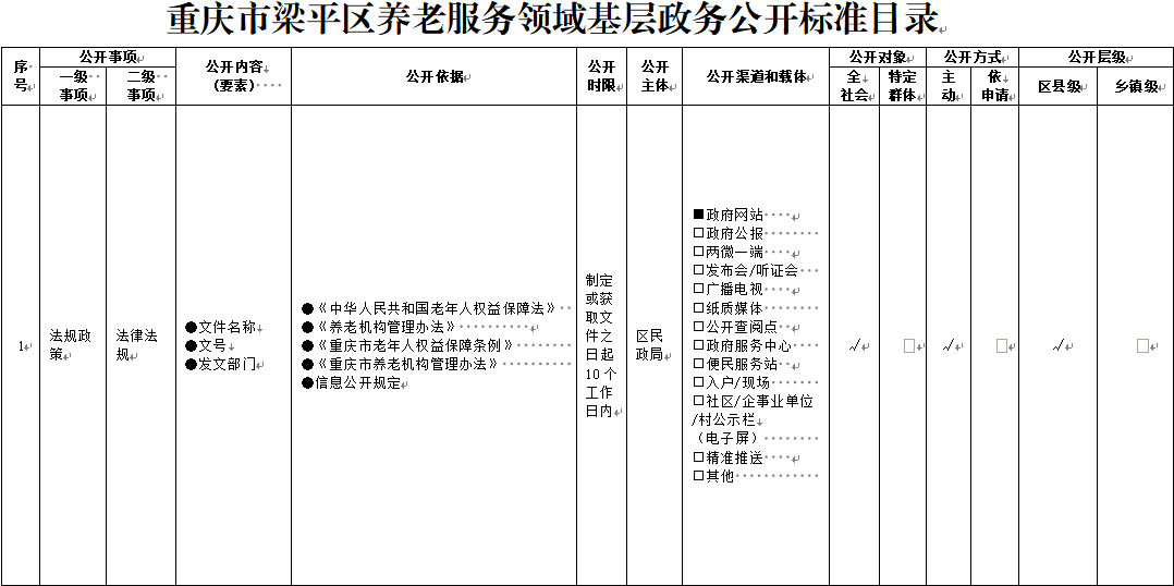 重慶市梁平區鄉鎮(街道)養老服務領域基層政務公開標準目錄