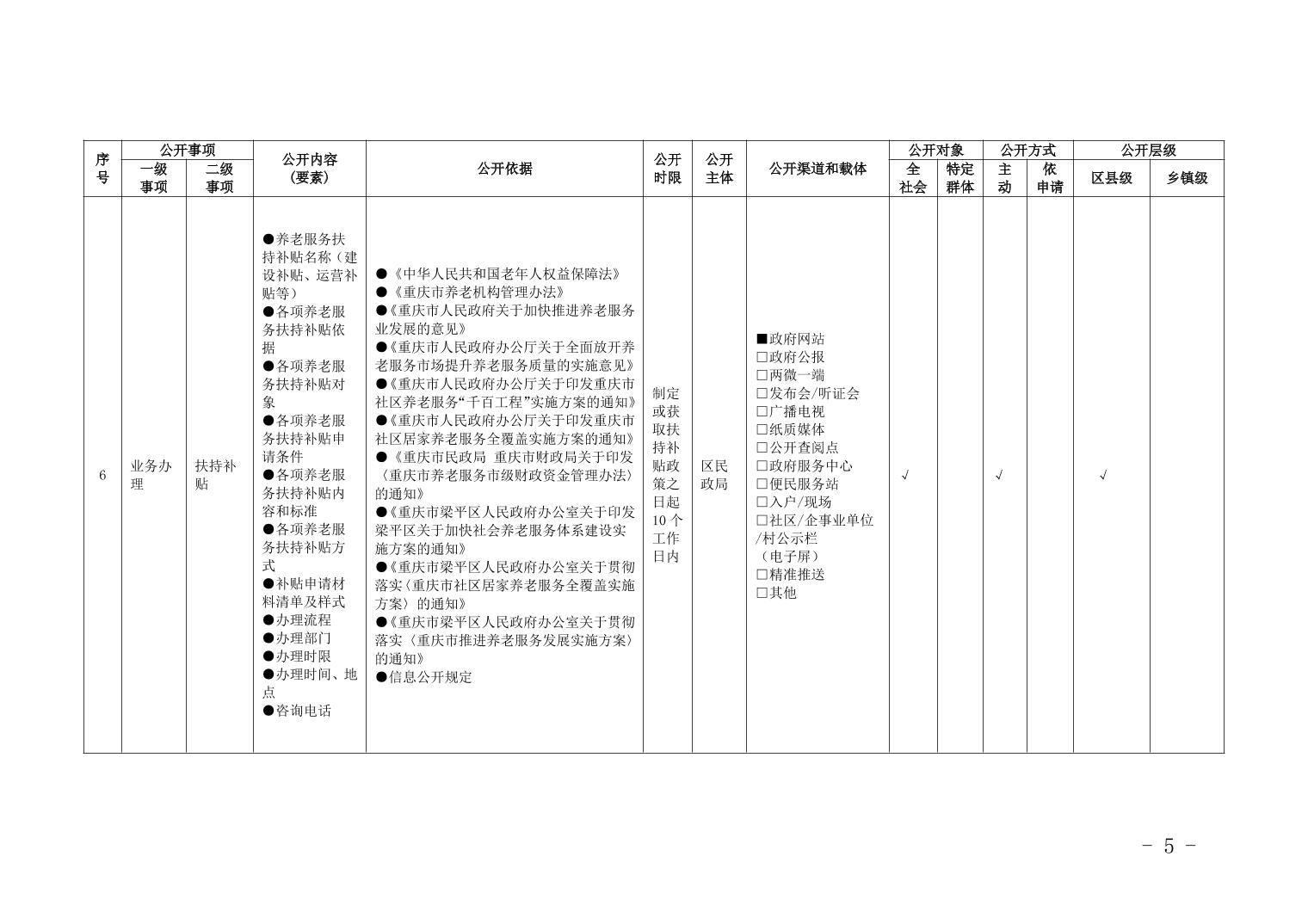 重慶市梁平區養老服務領域基層政務公開標準目錄(2026年)
