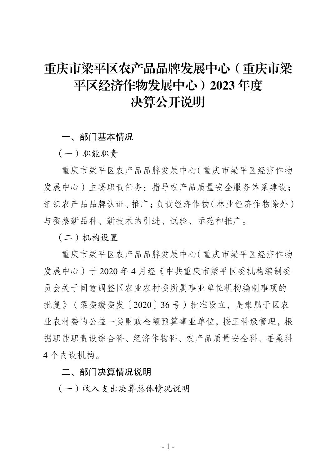 | 標題 | 重慶市梁平區農產品品牌發展中心(重慶市梁平區經濟作物發展中心)2023年度決算公開說明 |