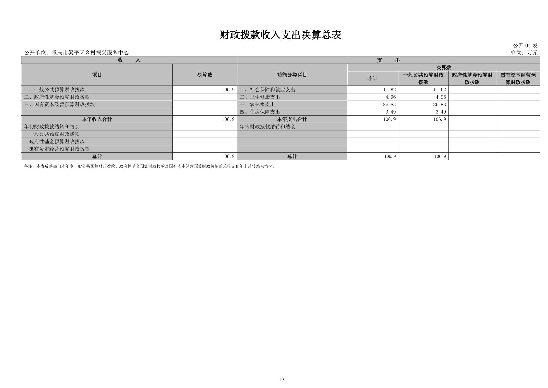 | 標(biāo)題 | 重慶市梁平區(qū)鄉(xiāng)村振興服務(wù)中心2023年度決算公開(kāi)說(shuō)明 | ||