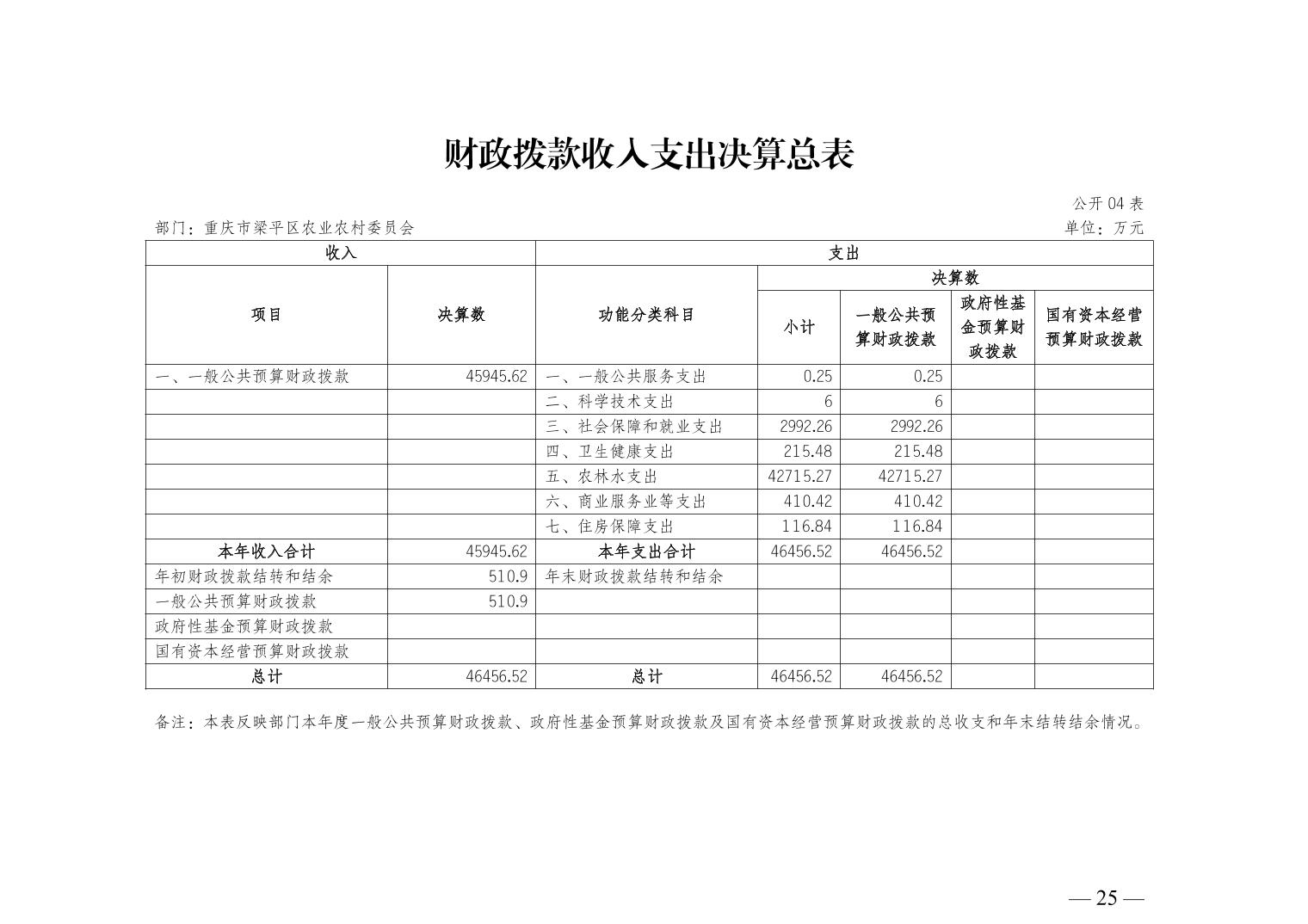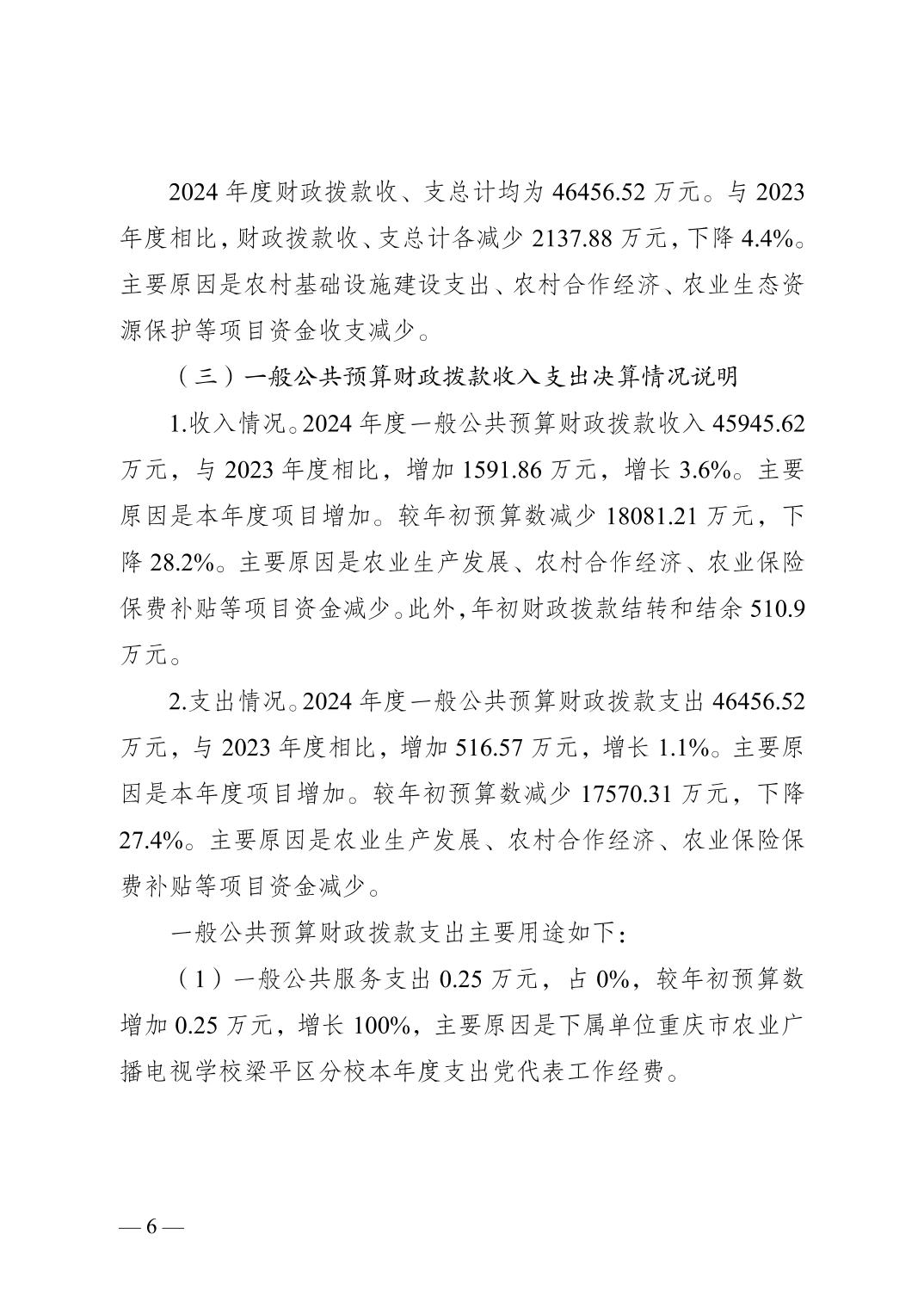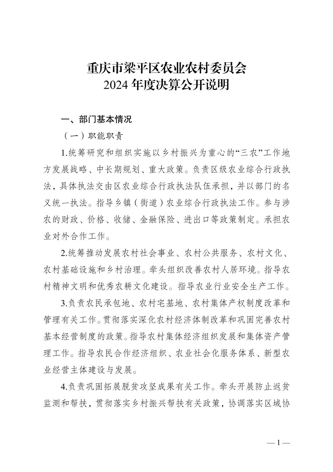 | 標題 | 重慶市梁平區農業農村委員會 2024年度決算公開說明 |