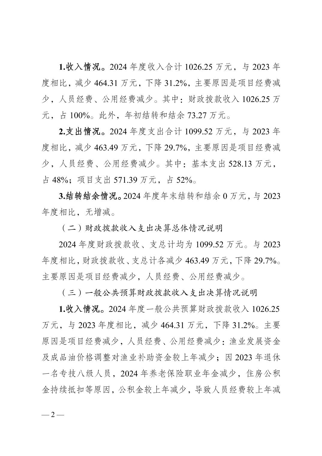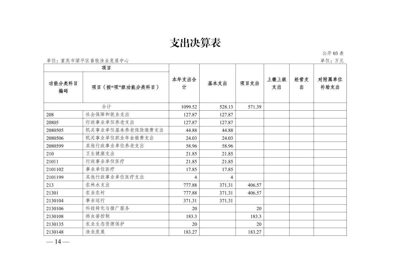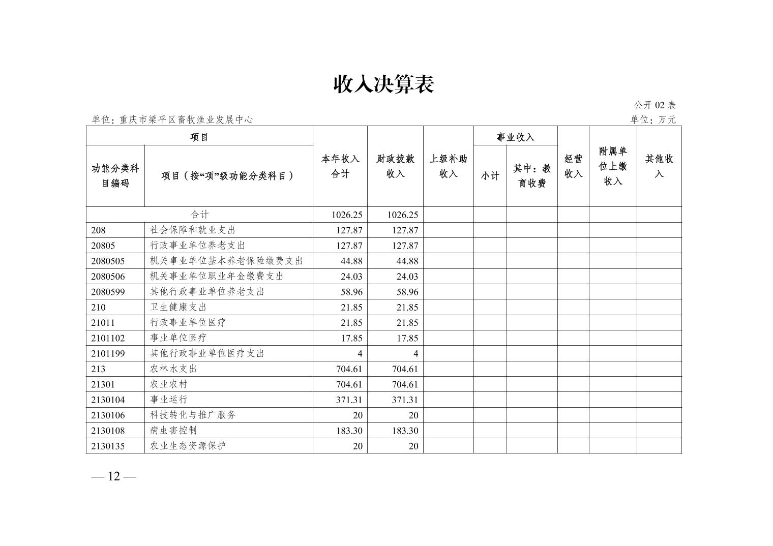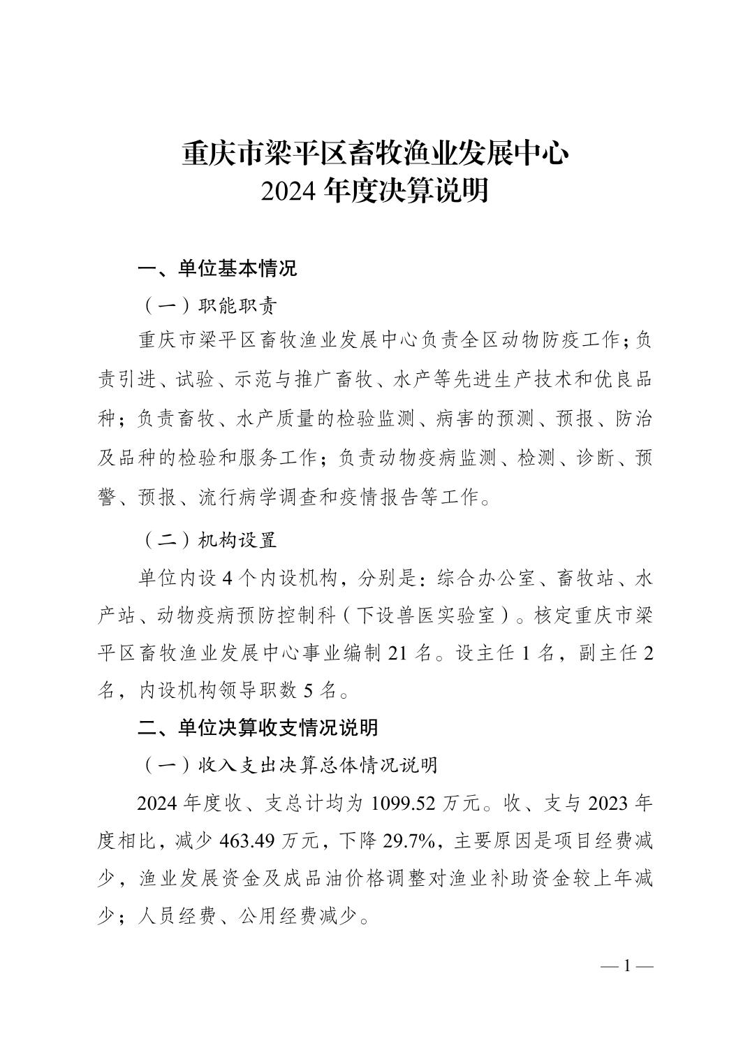 | 標(biāo)題 | 重慶市梁平區(qū)畜牧漁業(yè)發(fā)展中心2024年度決算說明 |