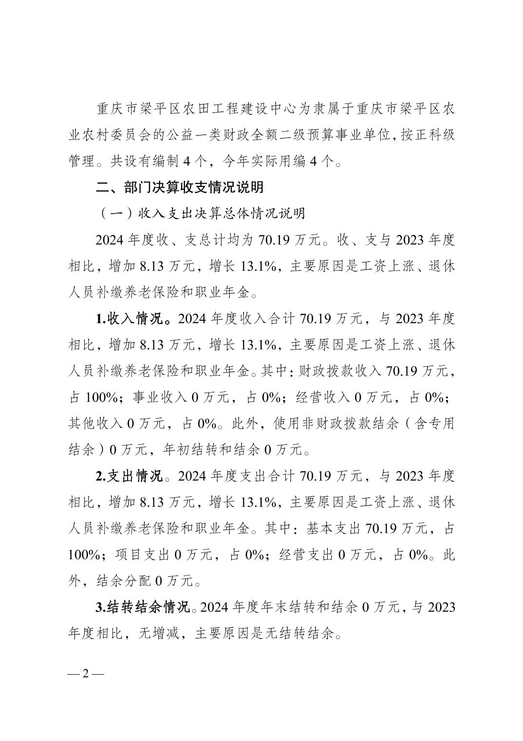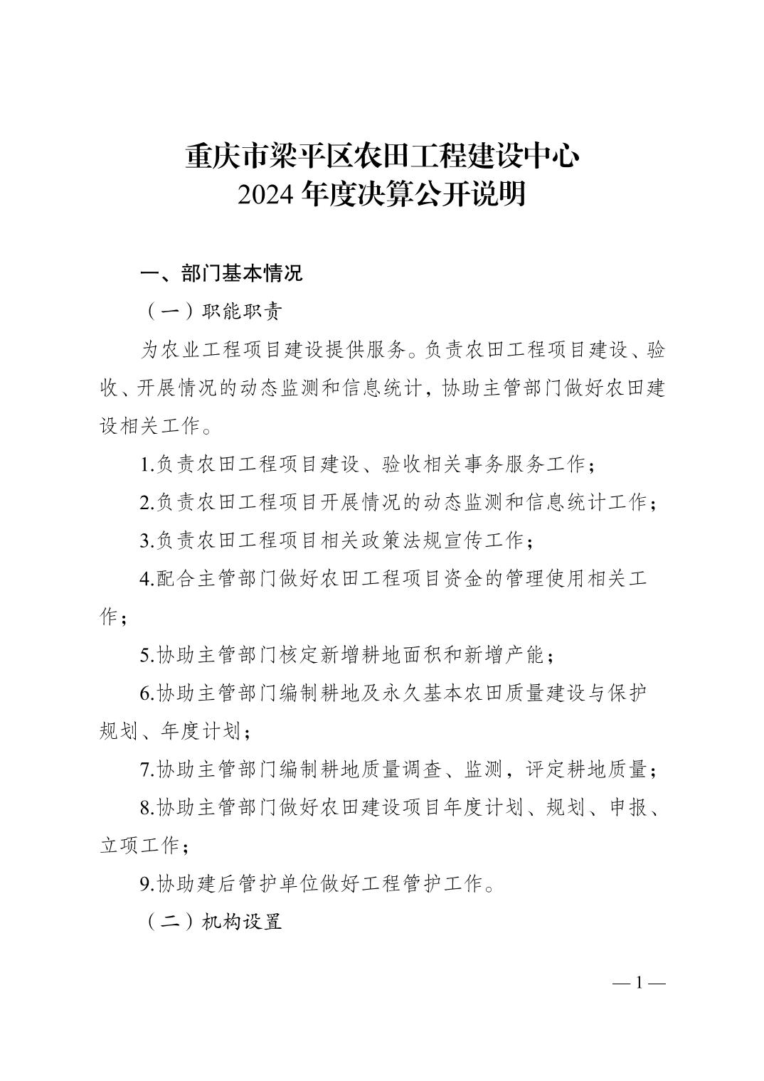 | 標題 | 重慶市梁平區(qū)農田工程建設中心2024年度決算公開說明 |