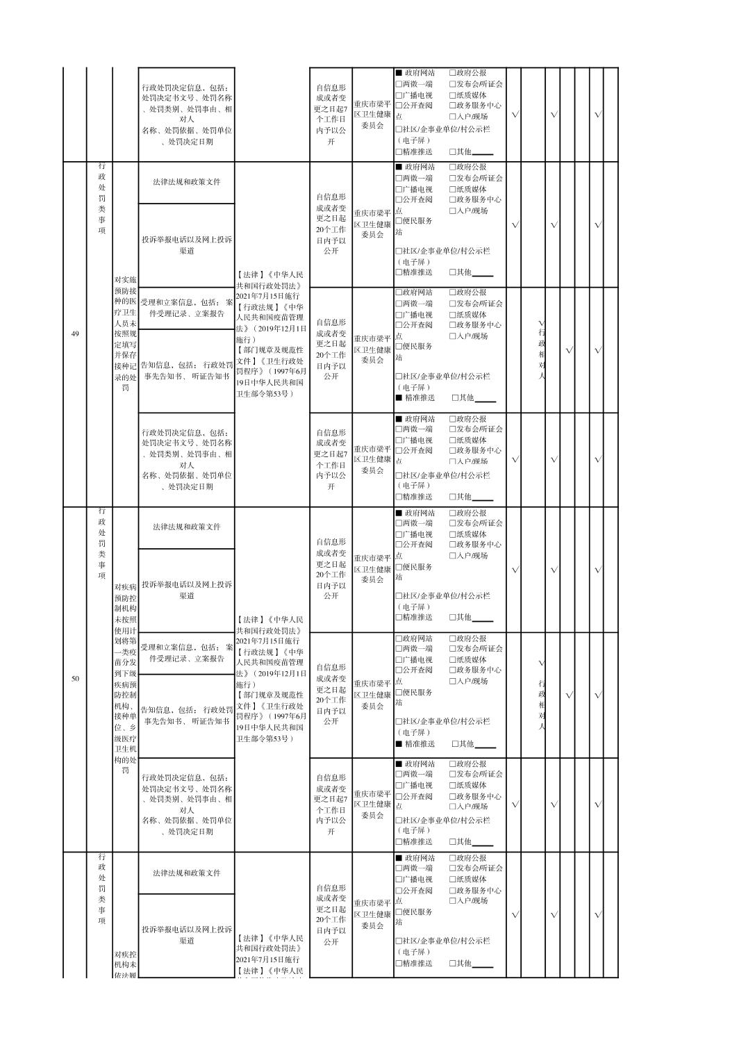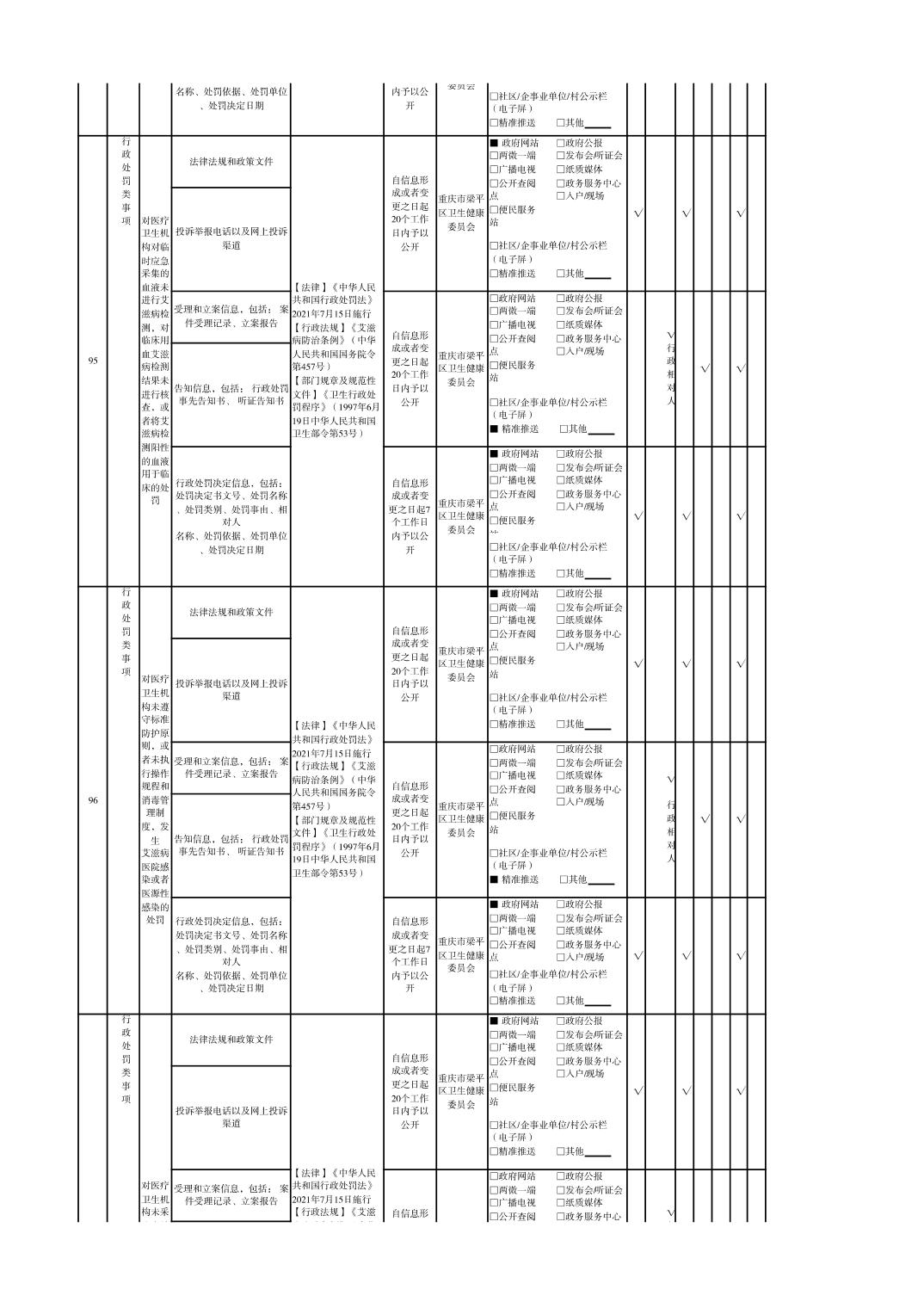 重慶市梁平區衛生健康領域基層政務公開標準目錄