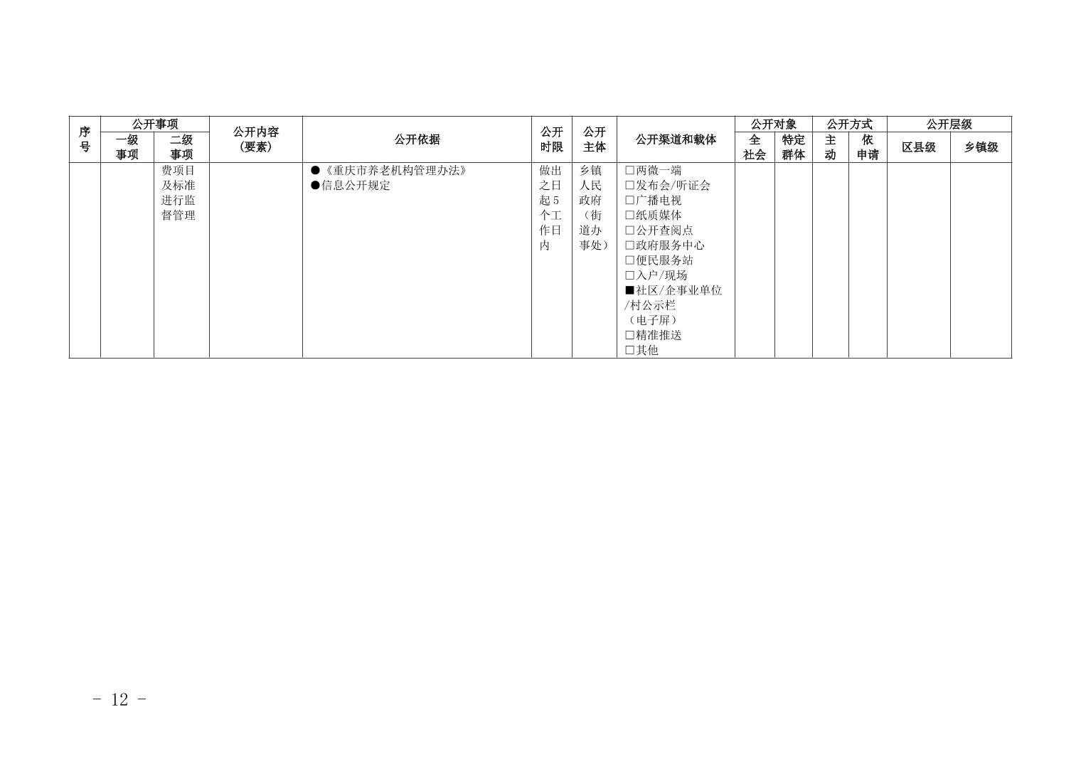 重慶市梁平區養老服務領域基層政務公開標準目錄