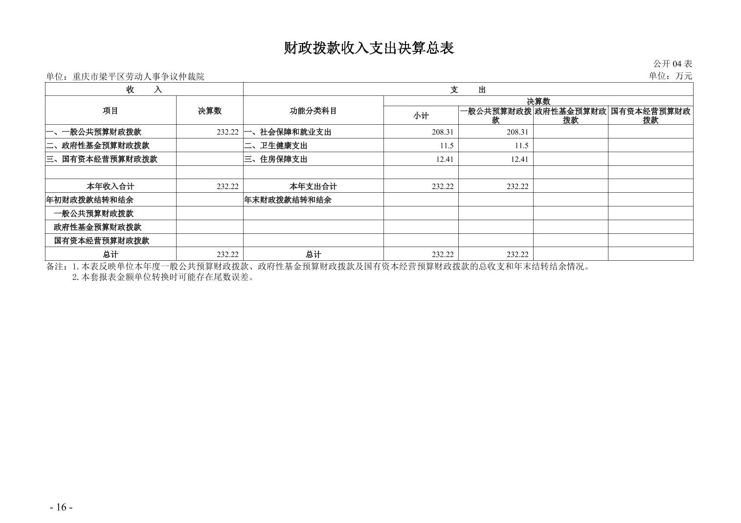 | 標題 | 重慶市梁平區勞動人事爭議仲裁院 2024 年度決算公開說明 |