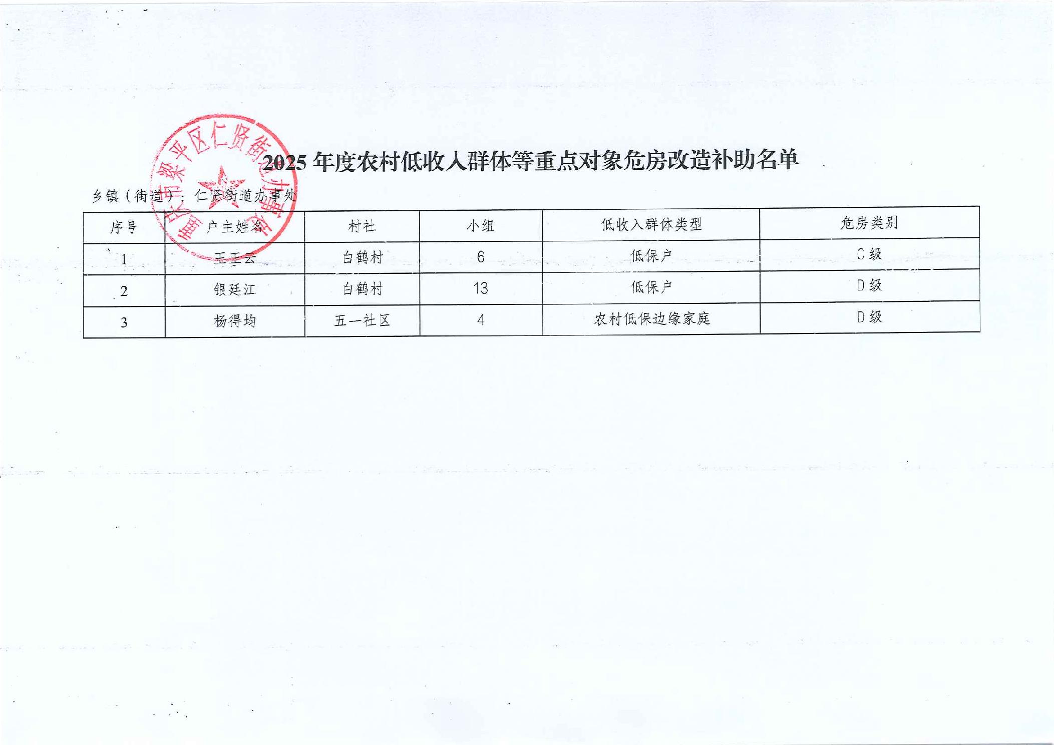 | 標題 | 2025年仁賢街道農村危房改造對象審核結果公示 |