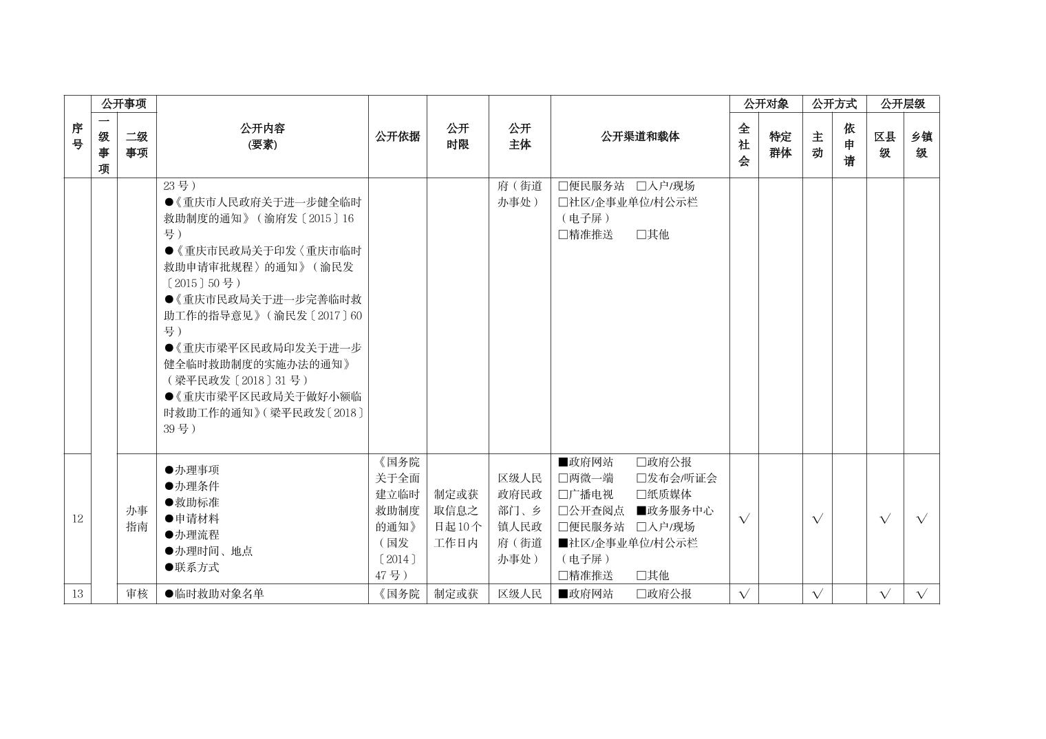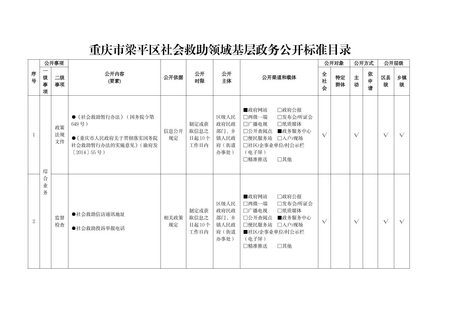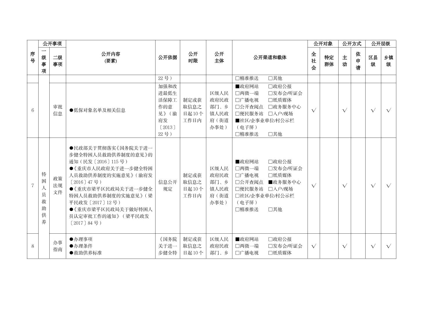重慶市梁平區社會救助領域基層政務公開標準目錄