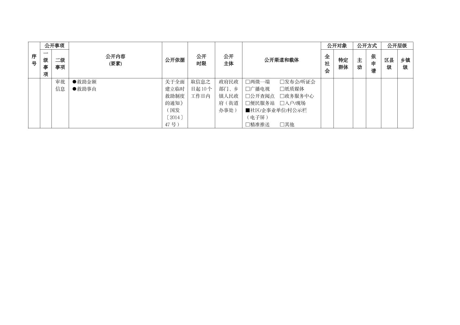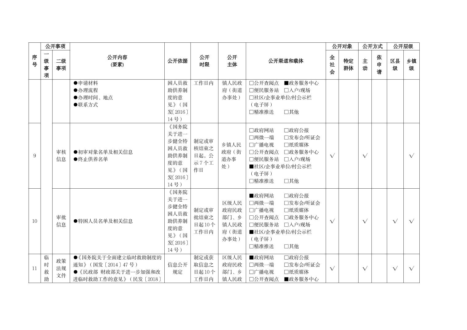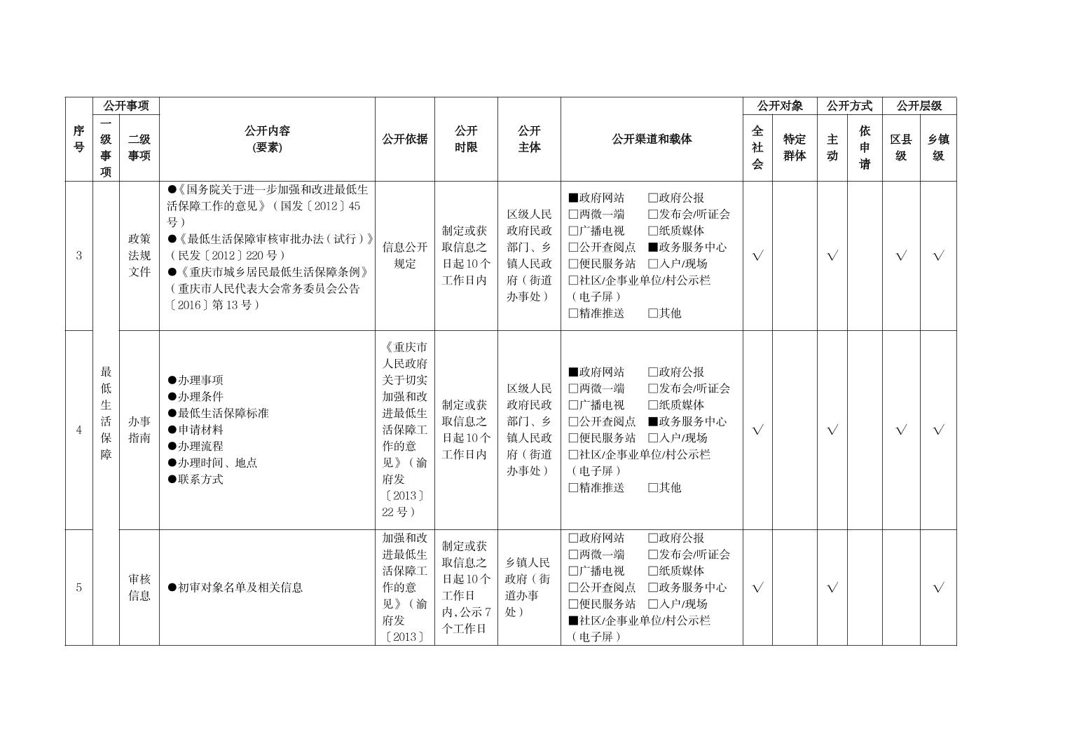 重慶市梁平區社會救助領域基層政務公開標準目錄