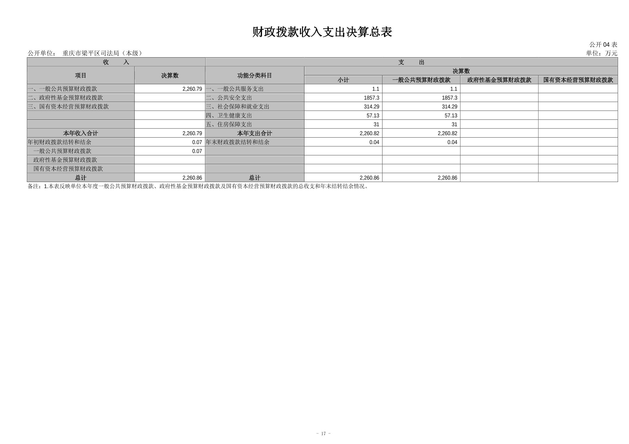 | 標題 | 重慶市梁平區司法局(本級)2023年度決算公開 |