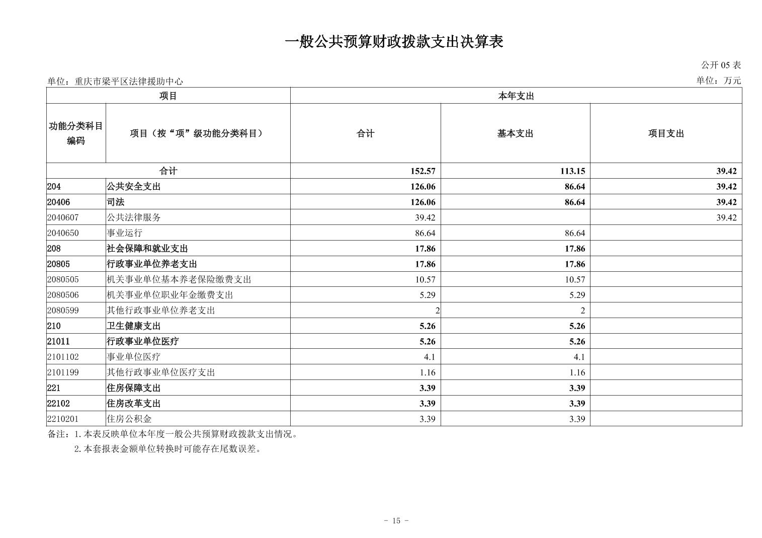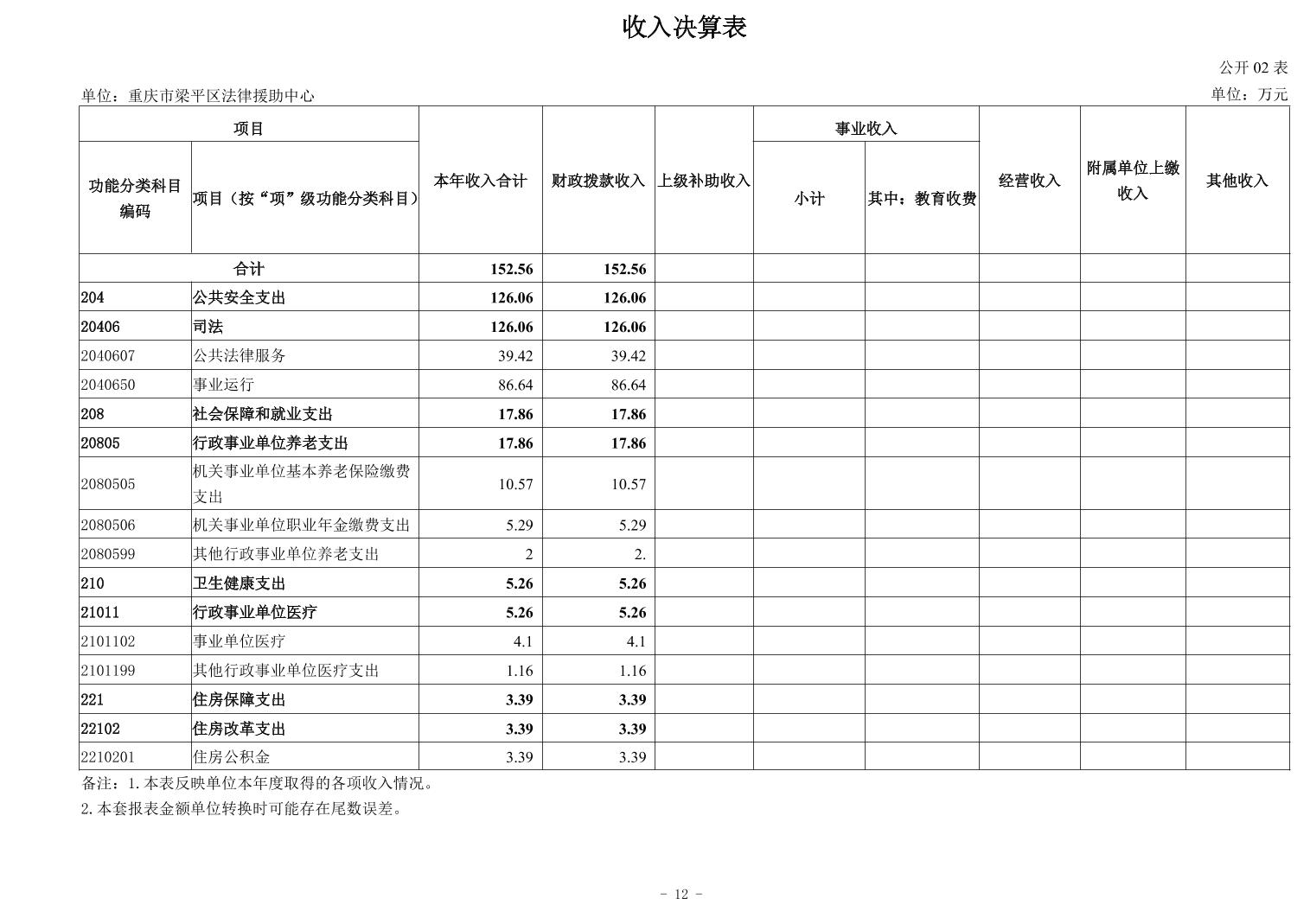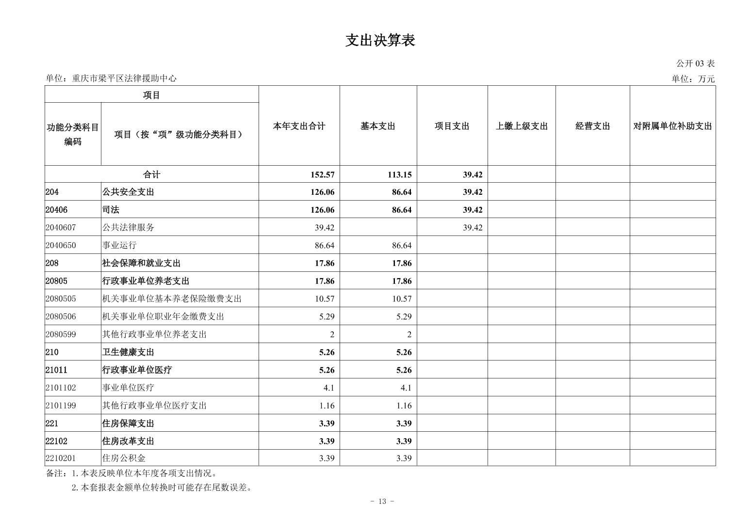 標題 重慶市梁平區法律援助中心2024年度決算公開