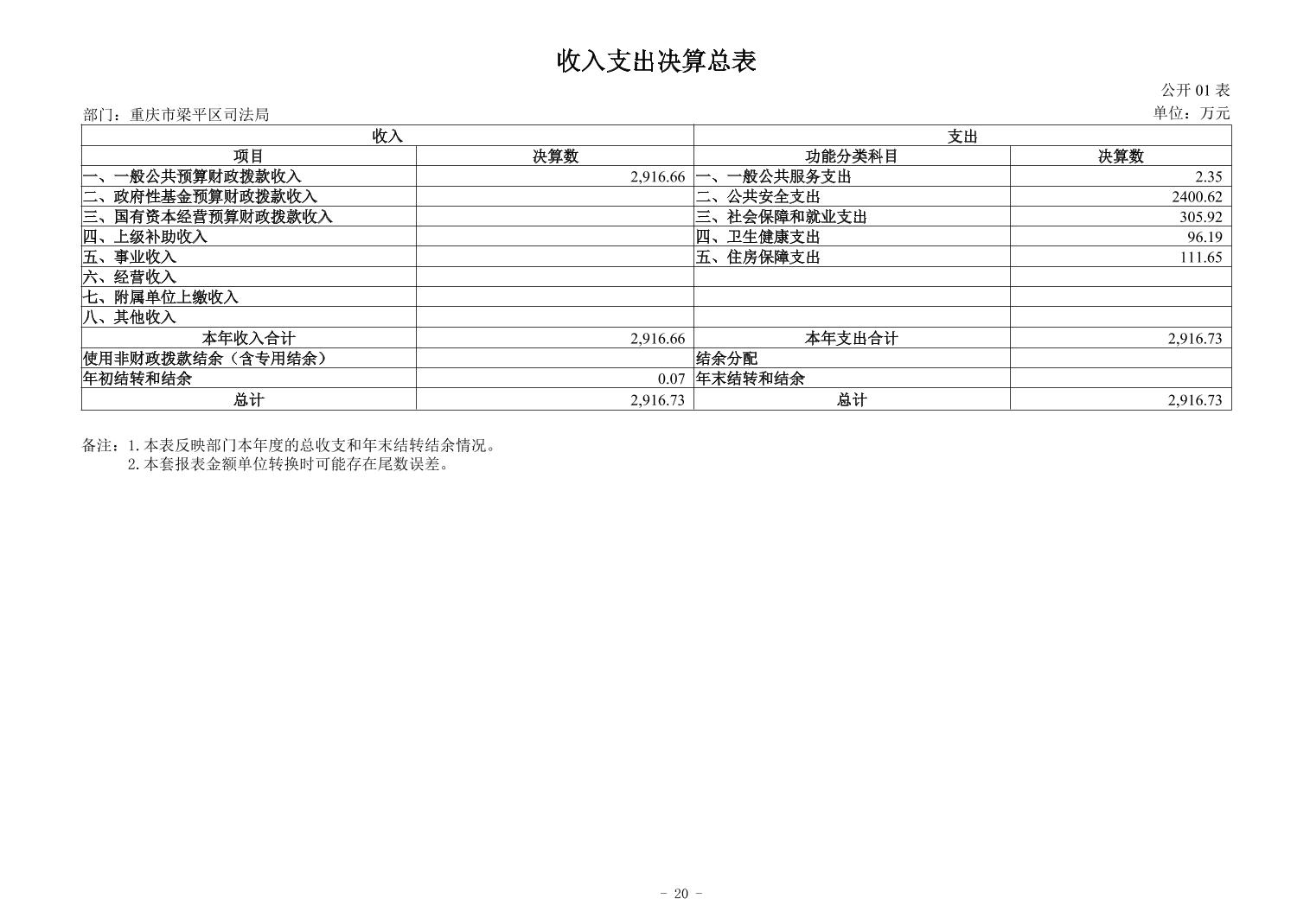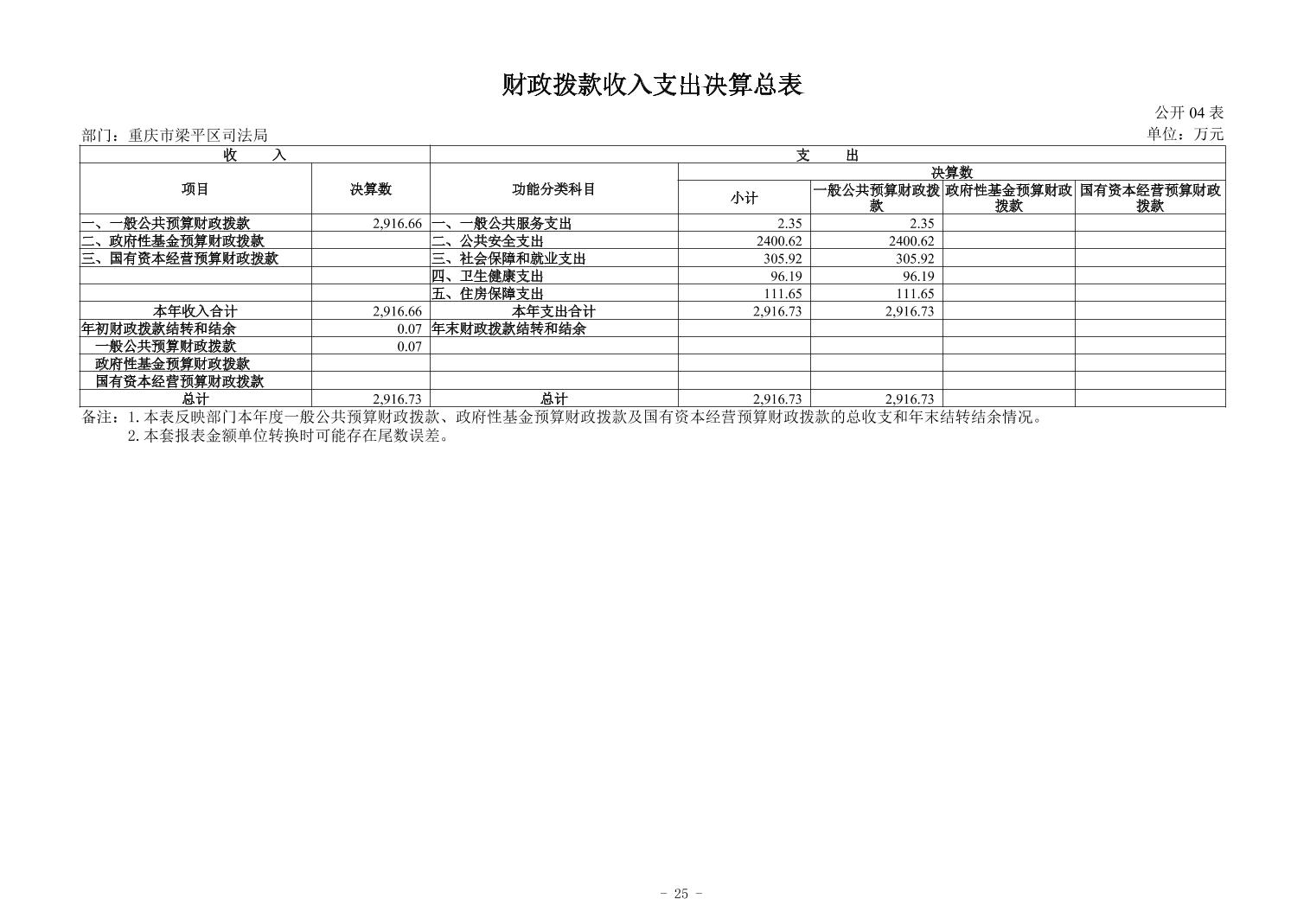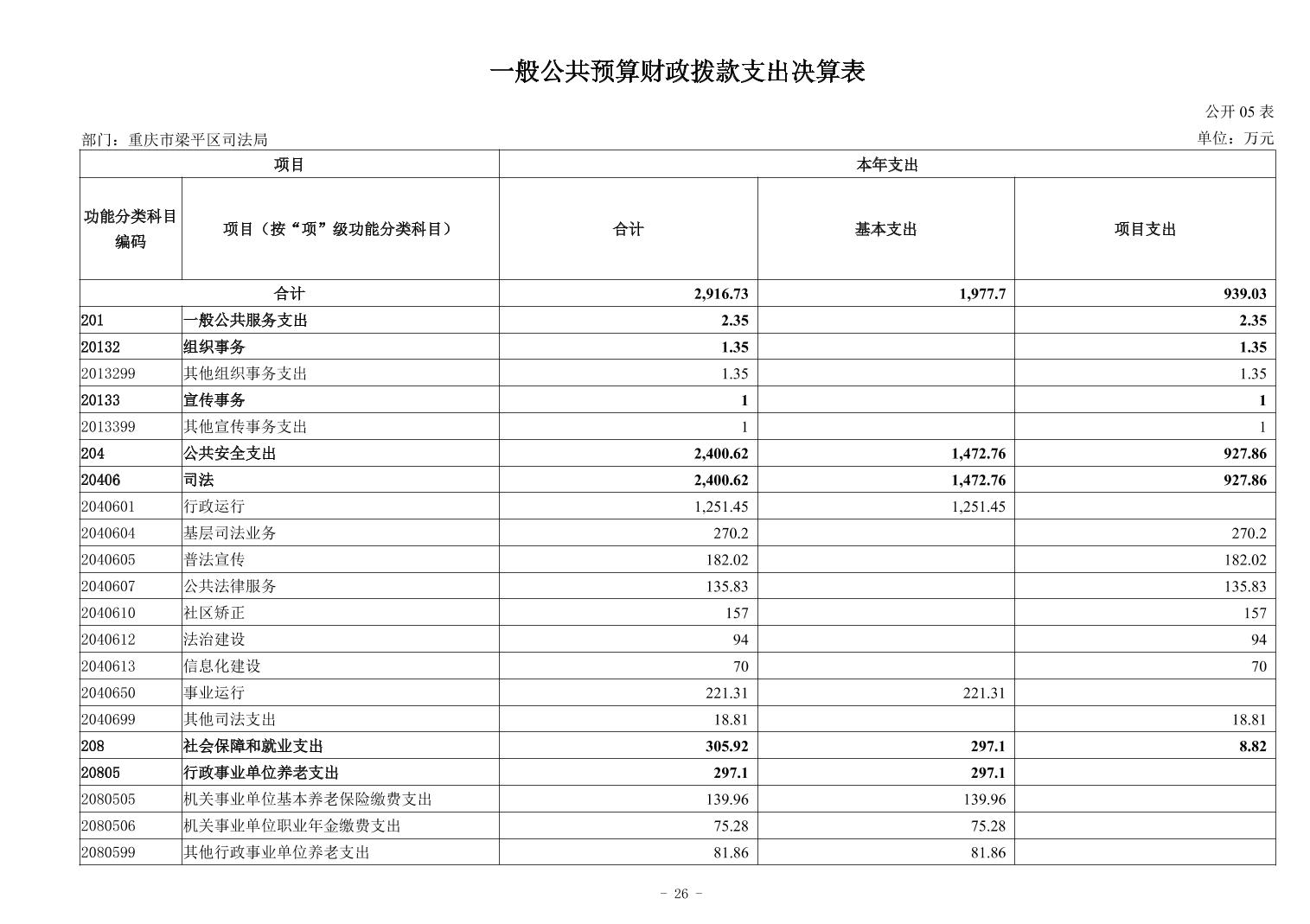 | 標題 | 重慶市梁平區司法局2024年度決算公開 |