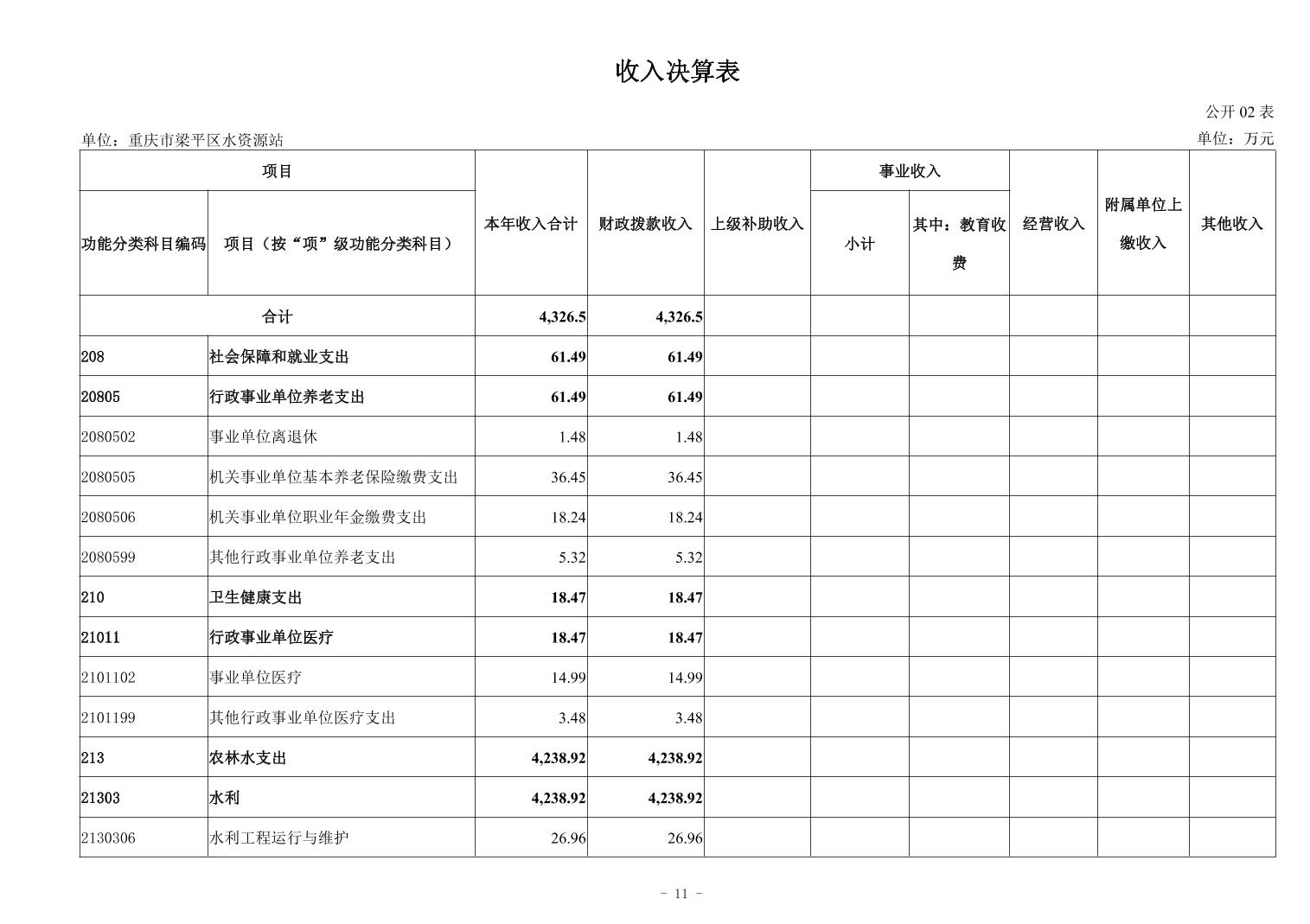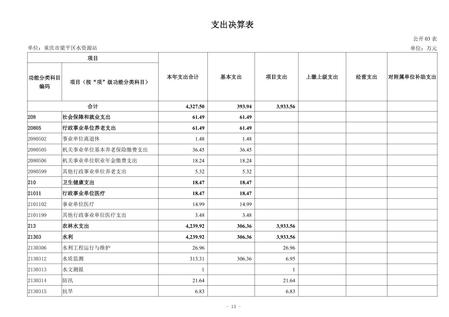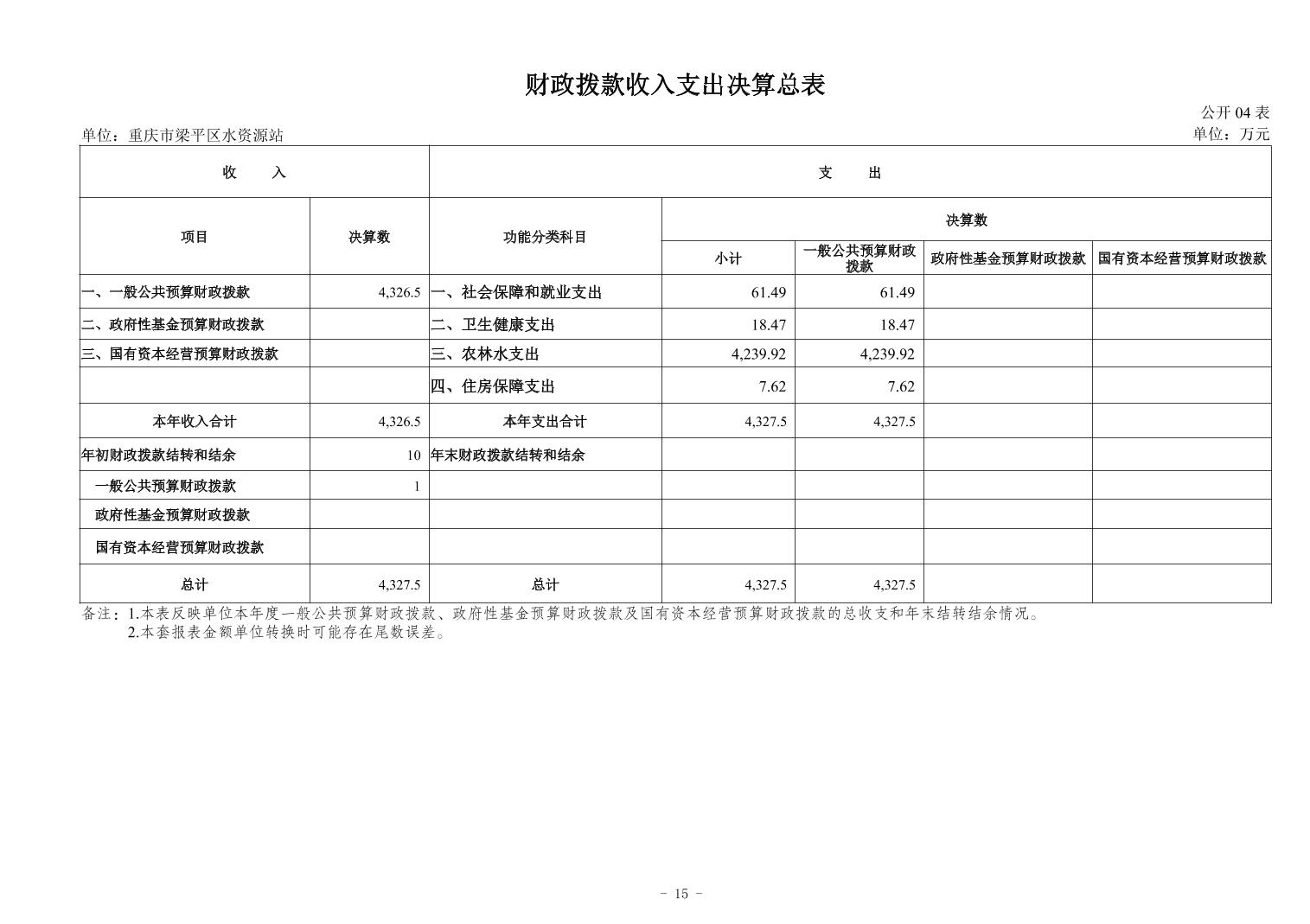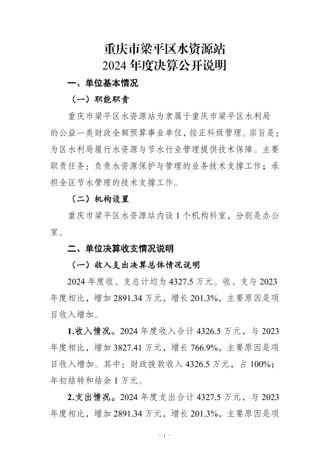 | 標題 | 重慶市梁平區水資源站2024年度決算公開說明及報表 |