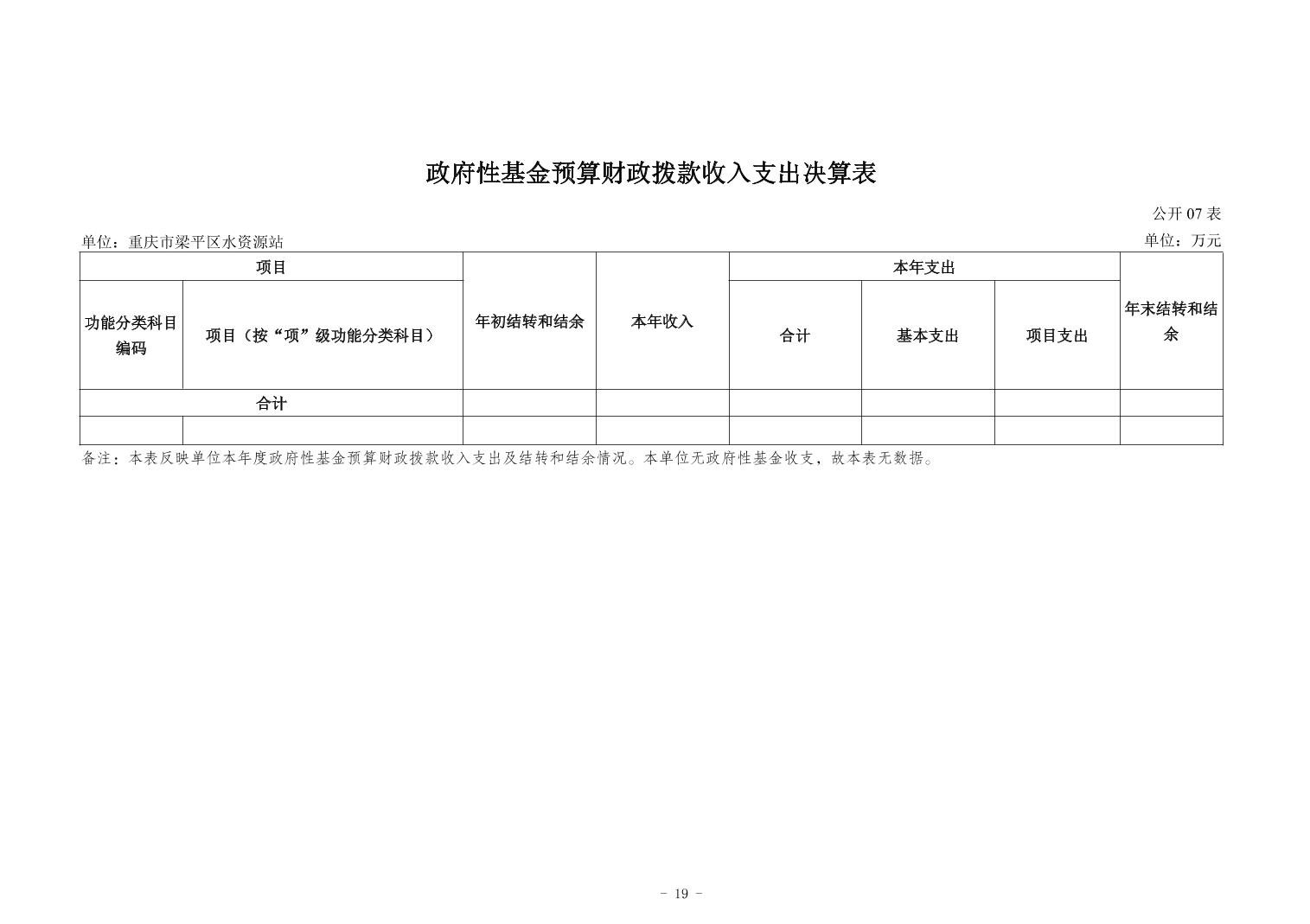 | 標題 | 重慶市梁平區水資源站2024年度決算公開說明及報表 | ||