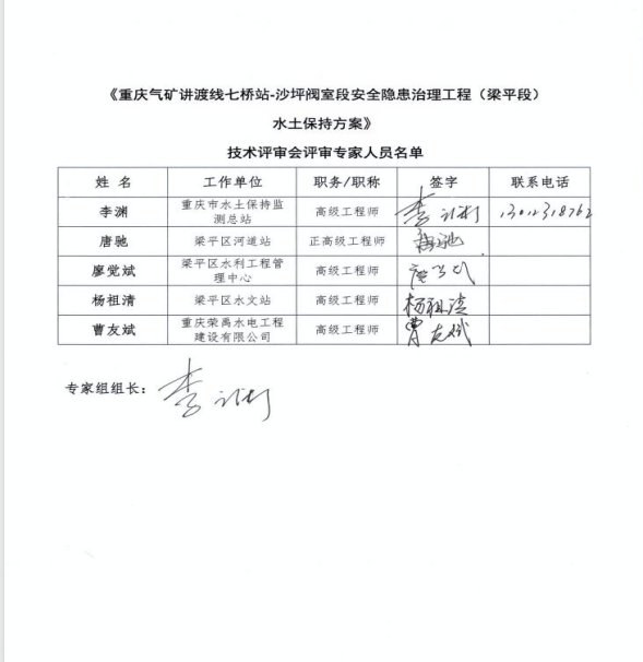 2.重慶氣礦講渡線七橋站-沙坪閥室段安全隱患治理工程(梁平段)水土保持方案報告書專家評審意見