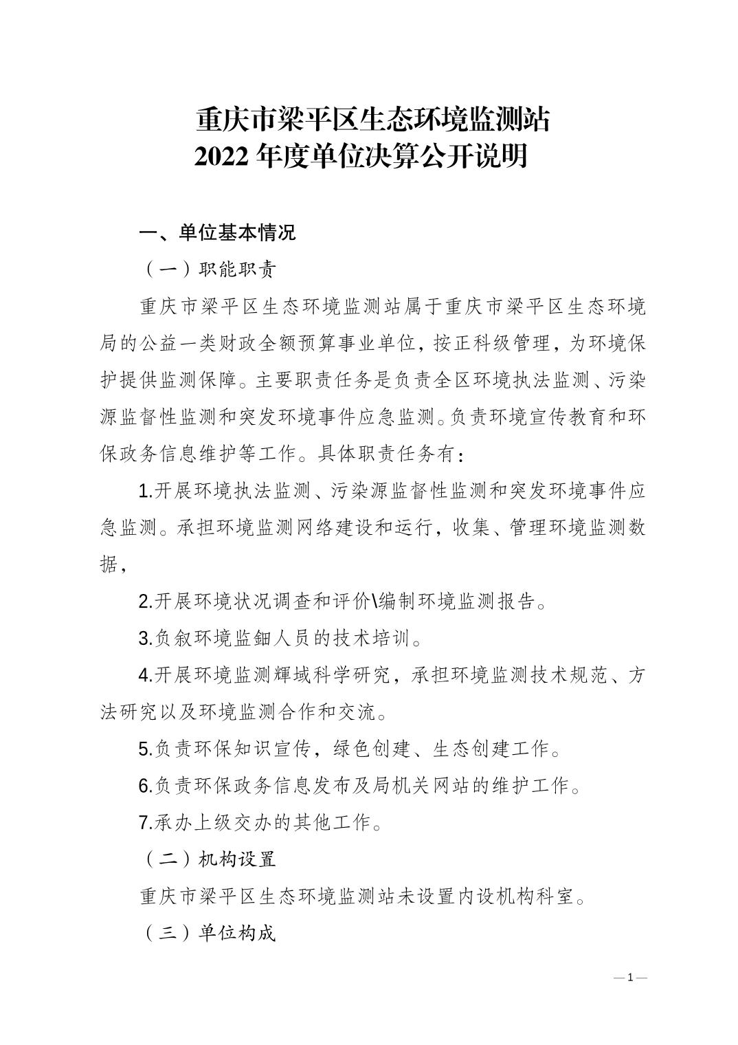 標題 重慶市梁平區生態環境監測站2022年度單位決算公開說明