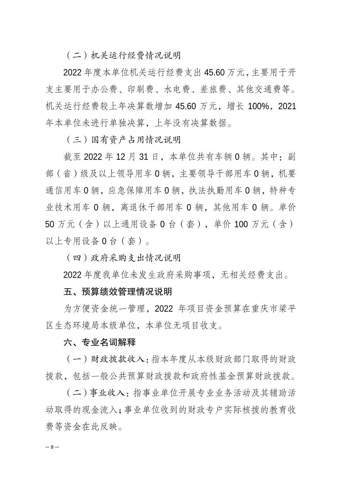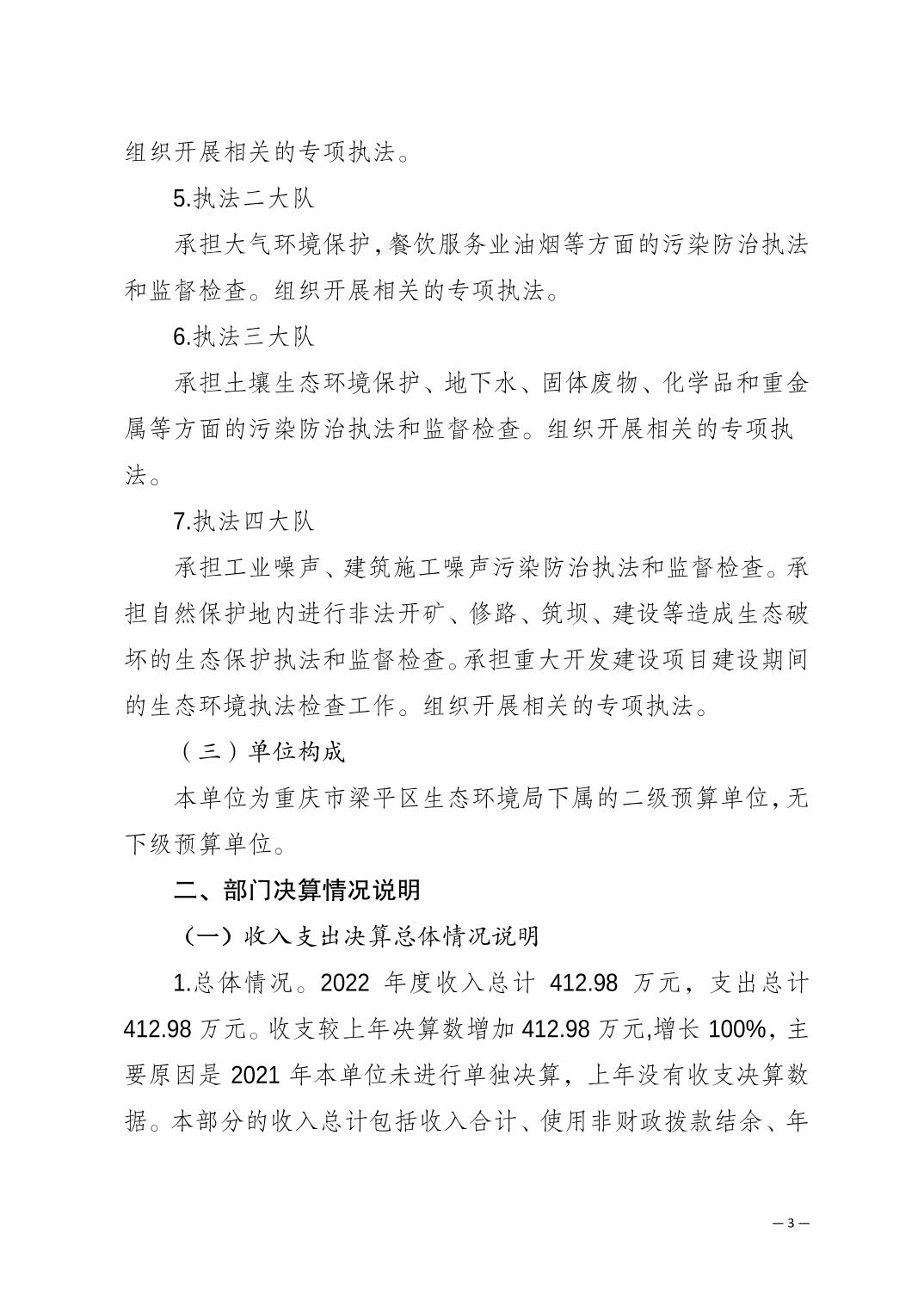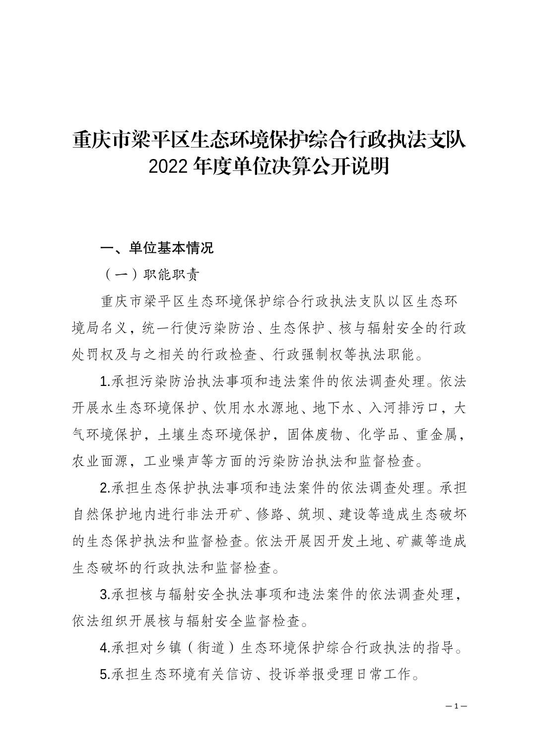 重慶市梁平區(qū)生態(tài)環(huán)境保護(hù)綜合行政執(zhí)法支隊(duì)2022年度單位決算公開說明 |