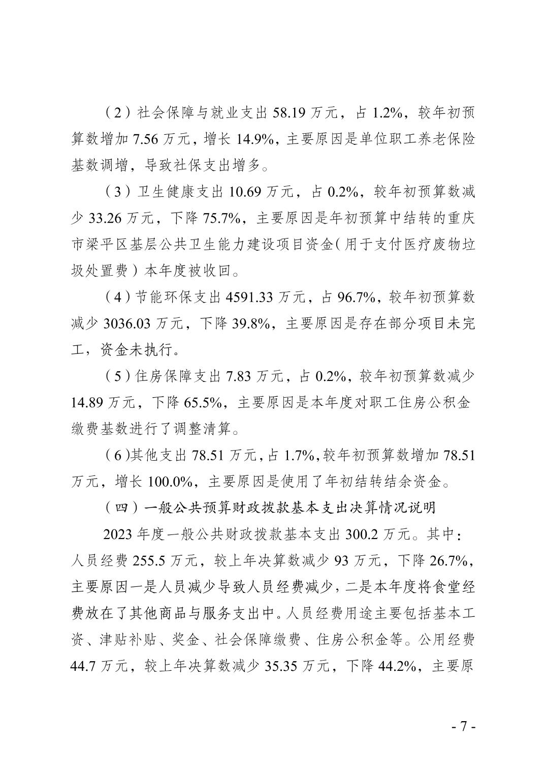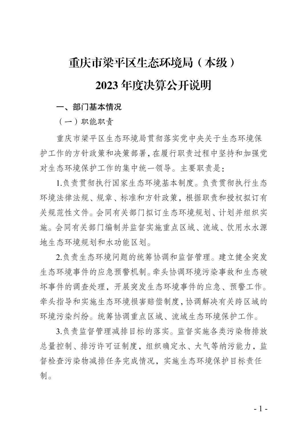 | 標題 | 重慶市梁平區生態環境局(本級)2023年度決算公開說明 |