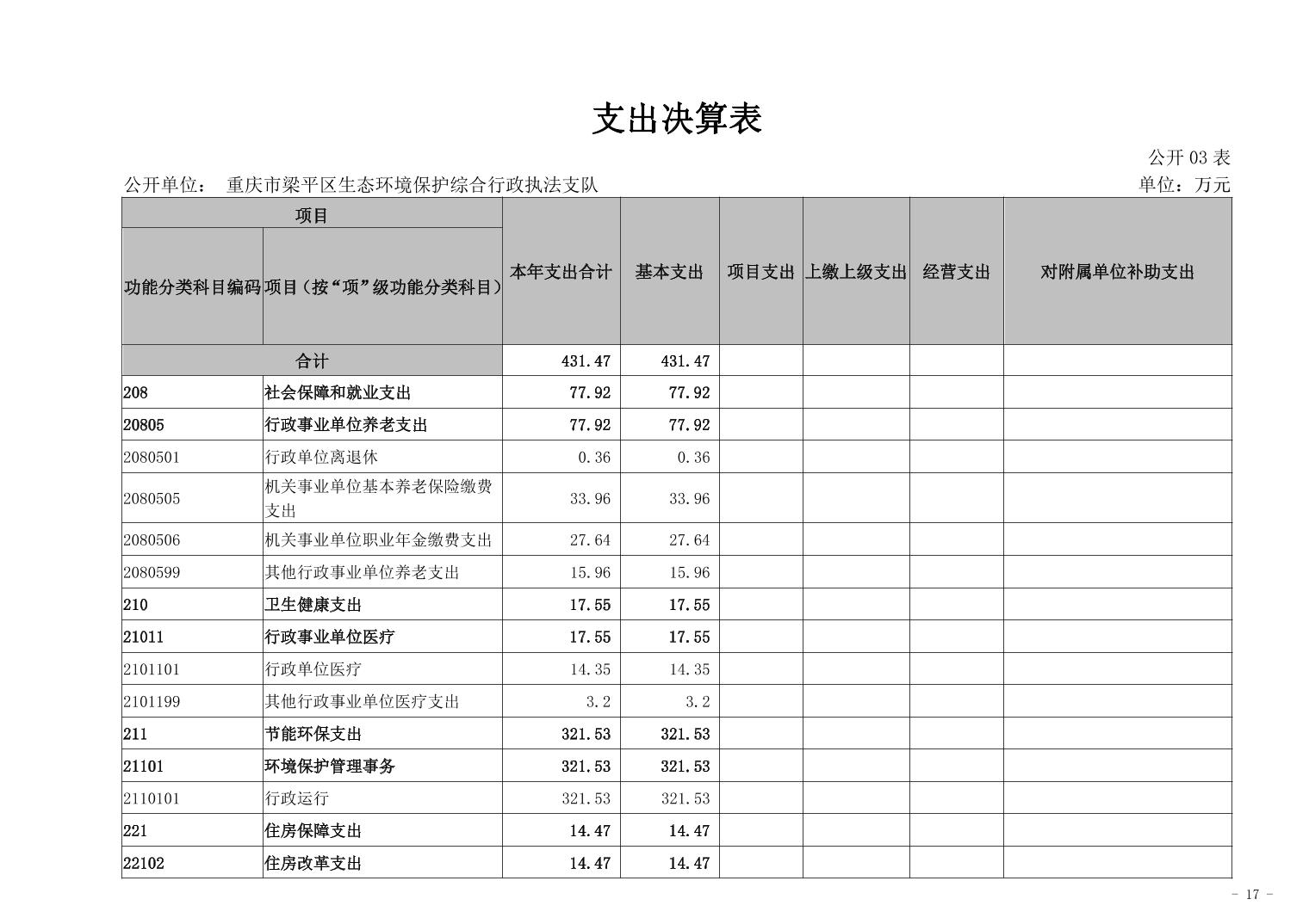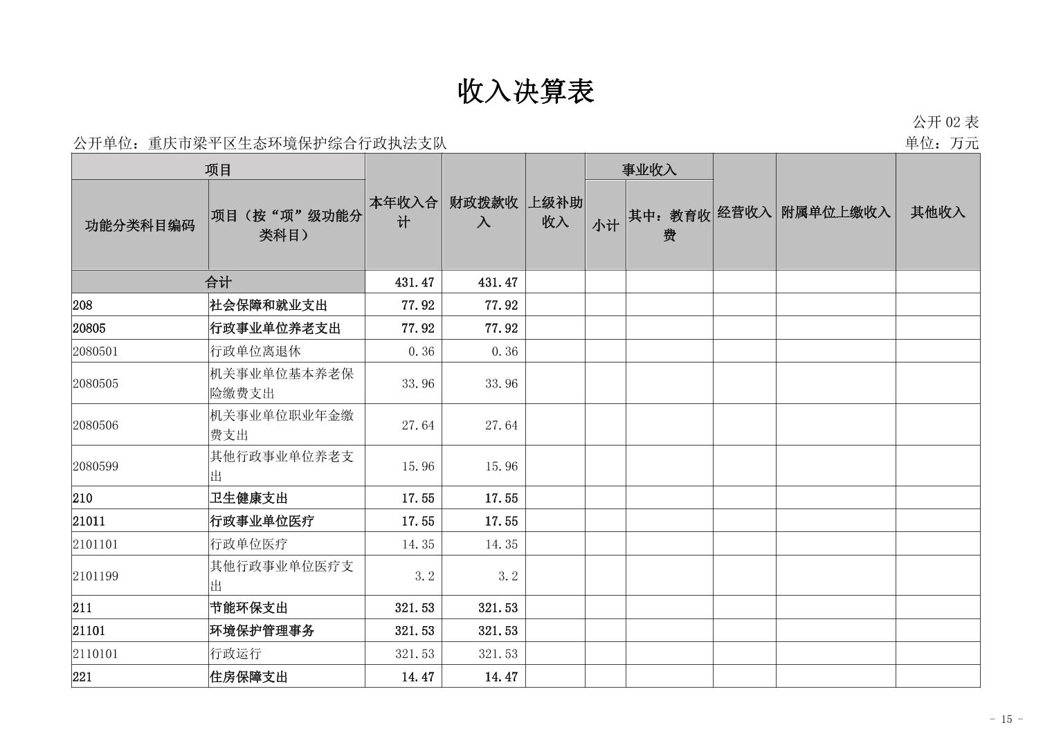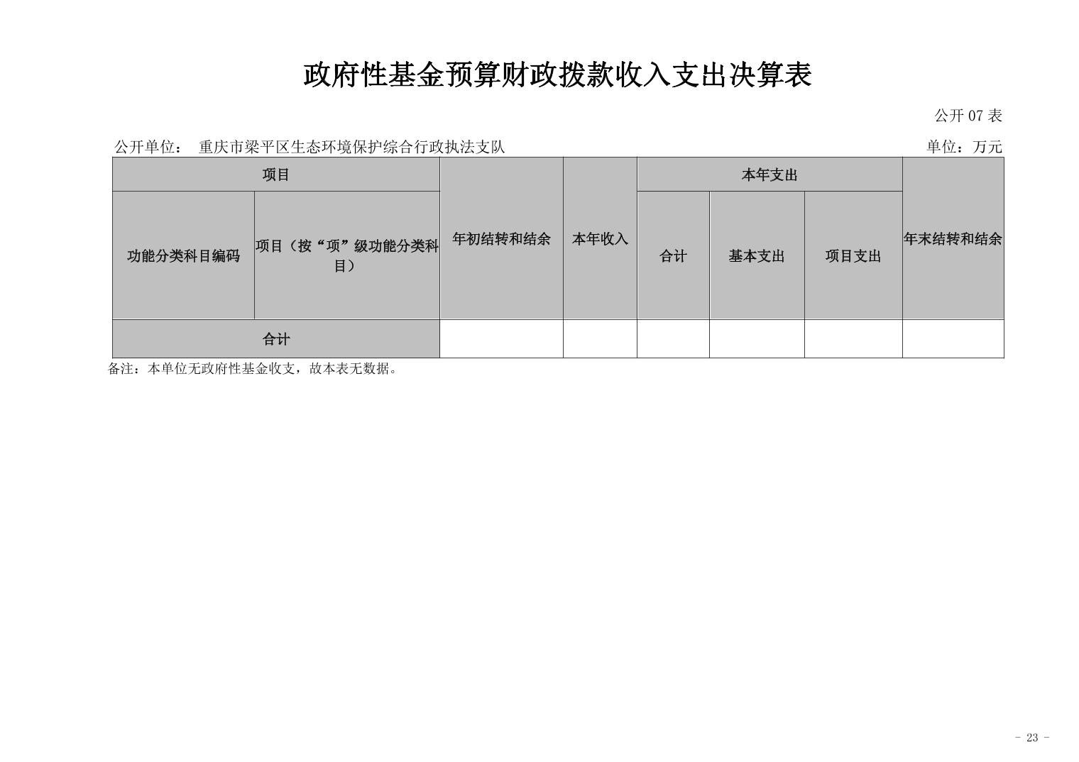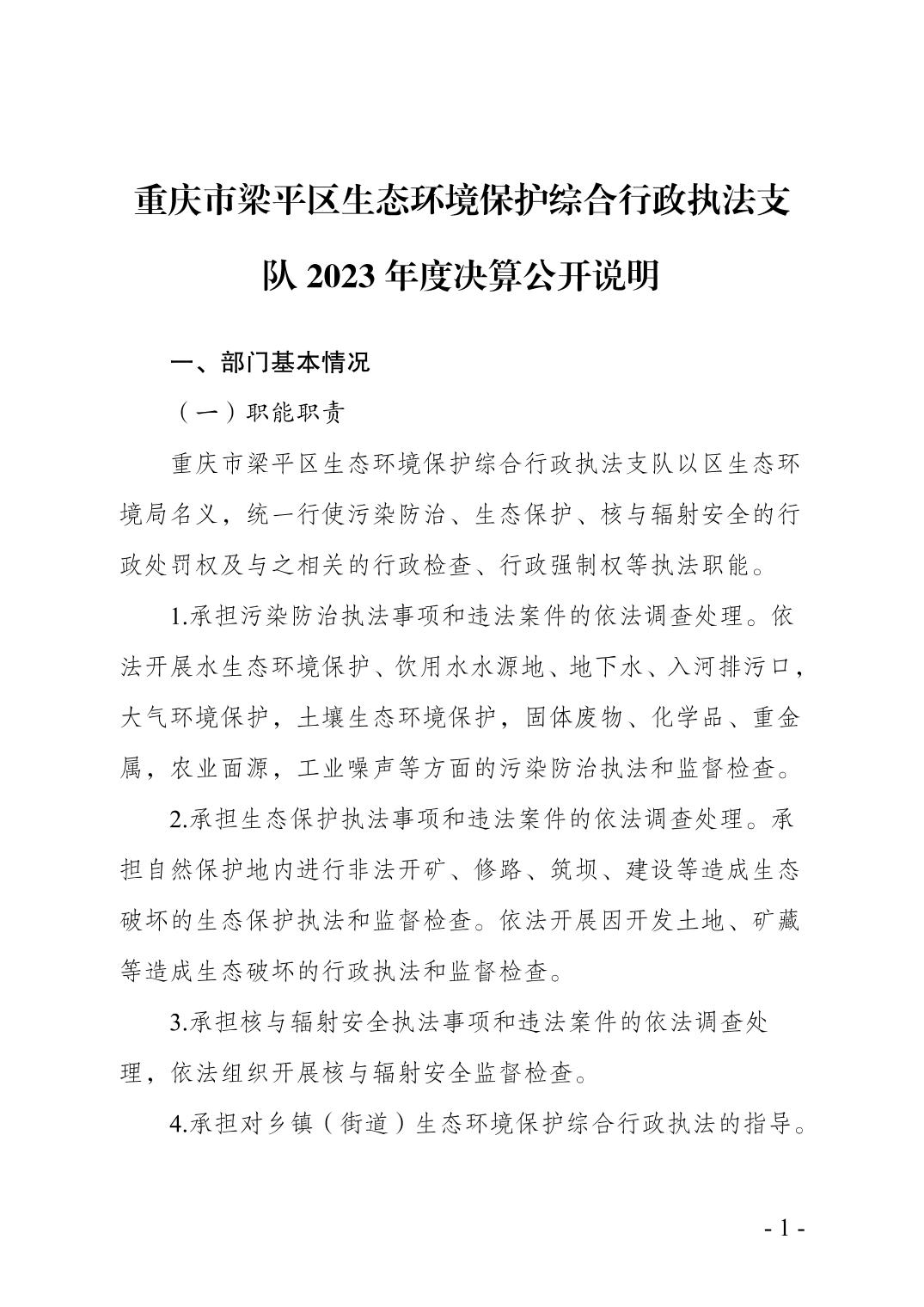 | 標題 | 重慶市梁平區生態環境保護綜合行政執法支隊2023年度決算公開說明 |