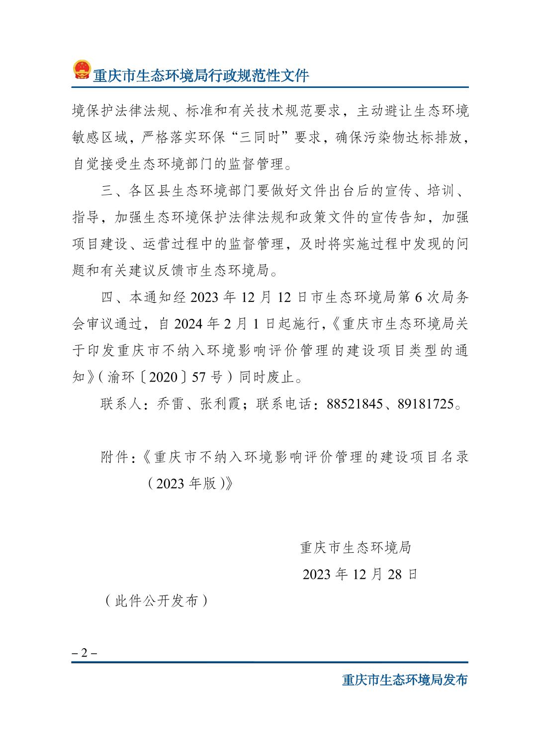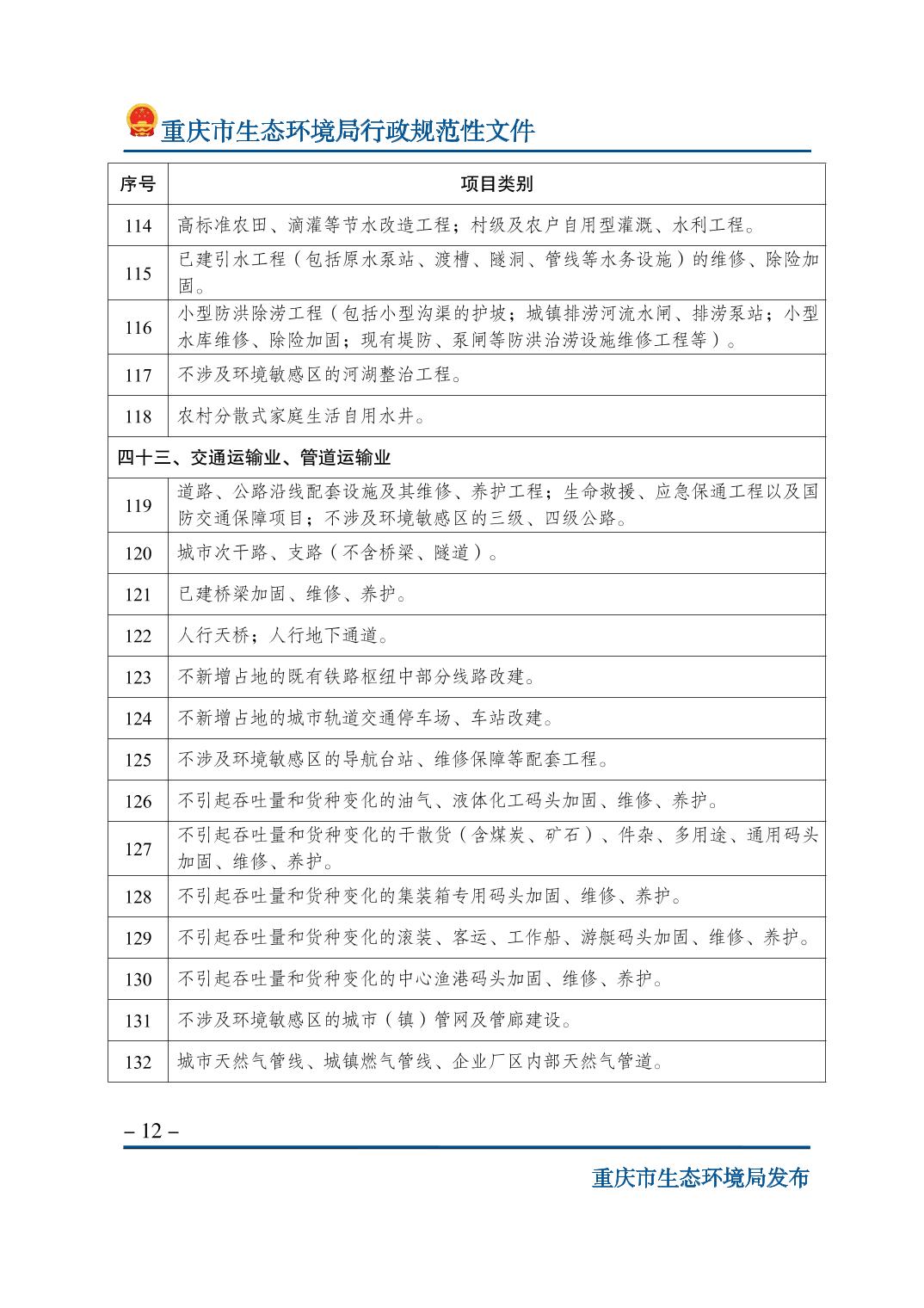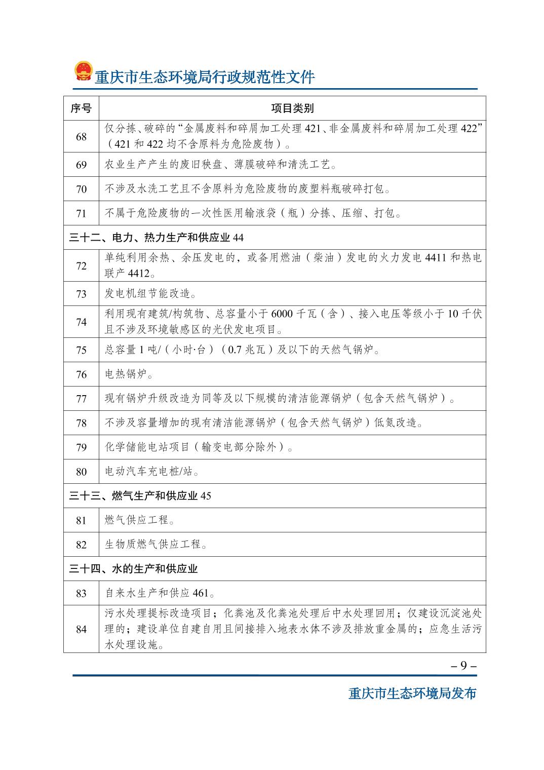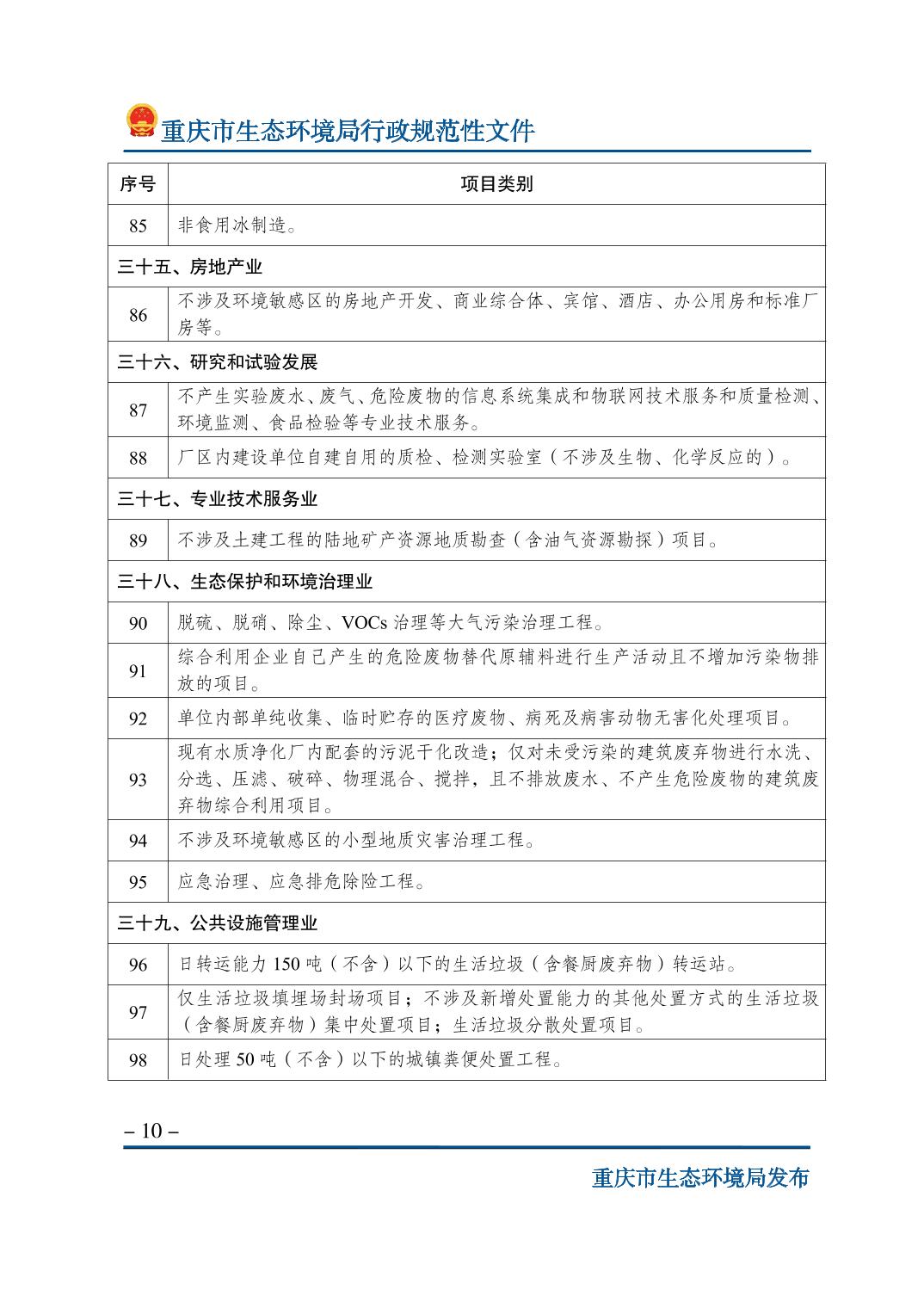 | 標(biāo)題 | 重慶市生態(tài)環(huán)境局關(guān)于印發(fā)《重慶市不納入環(huán)境影響評(píng)價(jià)管理的建設(shè)項(xiàng)目名錄(2023年版)》的通知 | ||