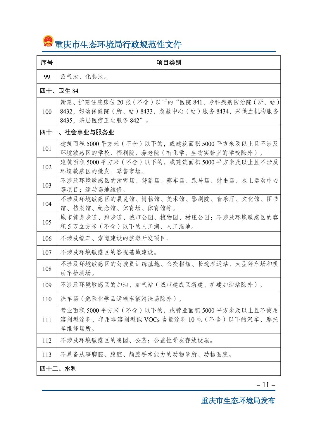 | 標(biāo)題 | 重慶市生態(tài)環(huán)境局關(guān)于印發(fā)《重慶市不納入環(huán)境影響評(píng)價(jià)管理的建設(shè)項(xiàng)目名錄(2023年版)》的通知 |