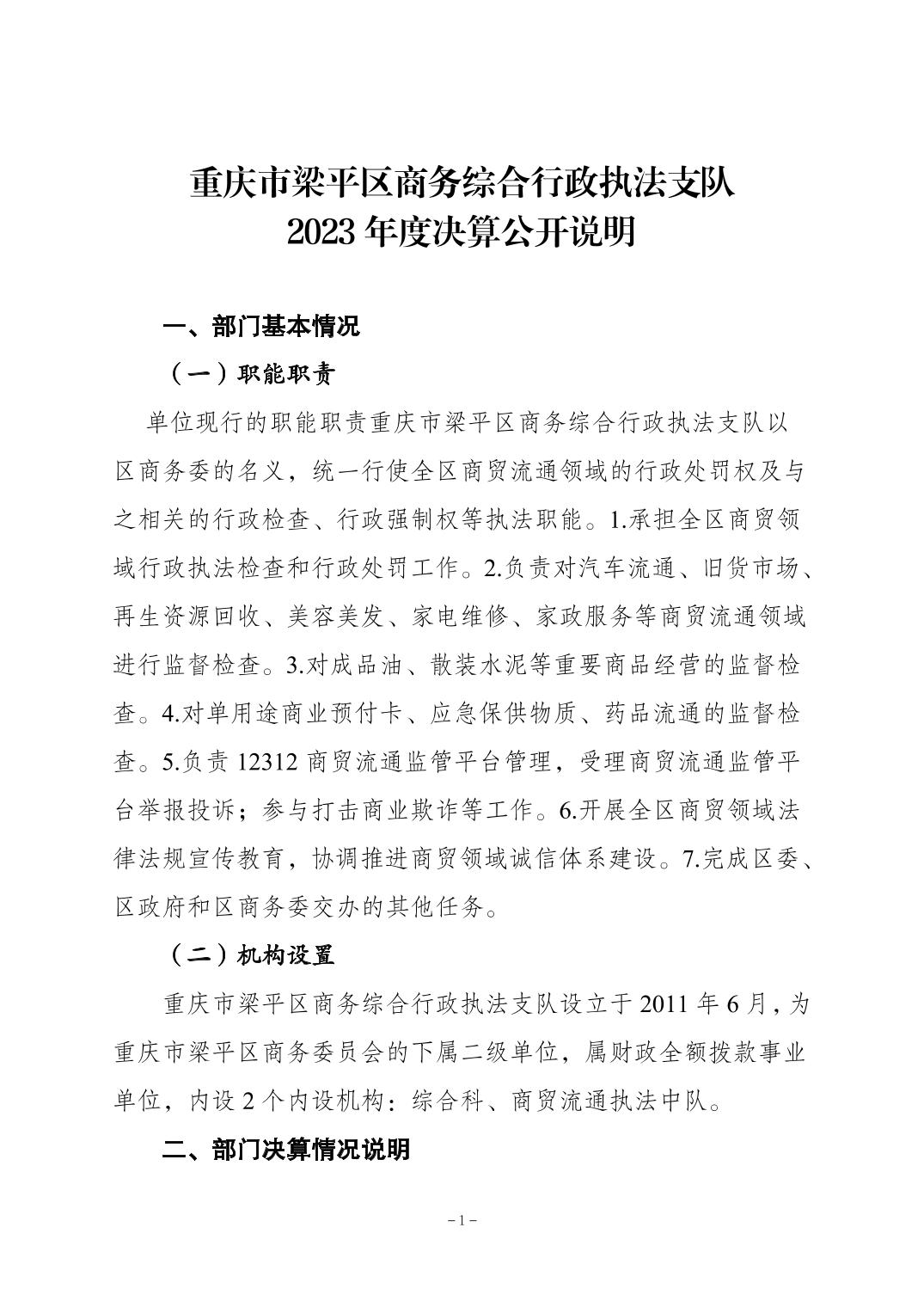 | 標(biāo)題 | 重慶市梁平區(qū)商務(wù)綜合行政執(zhí)法支隊(duì)2023年度決算公開(kāi)說(shuō)明 | ||