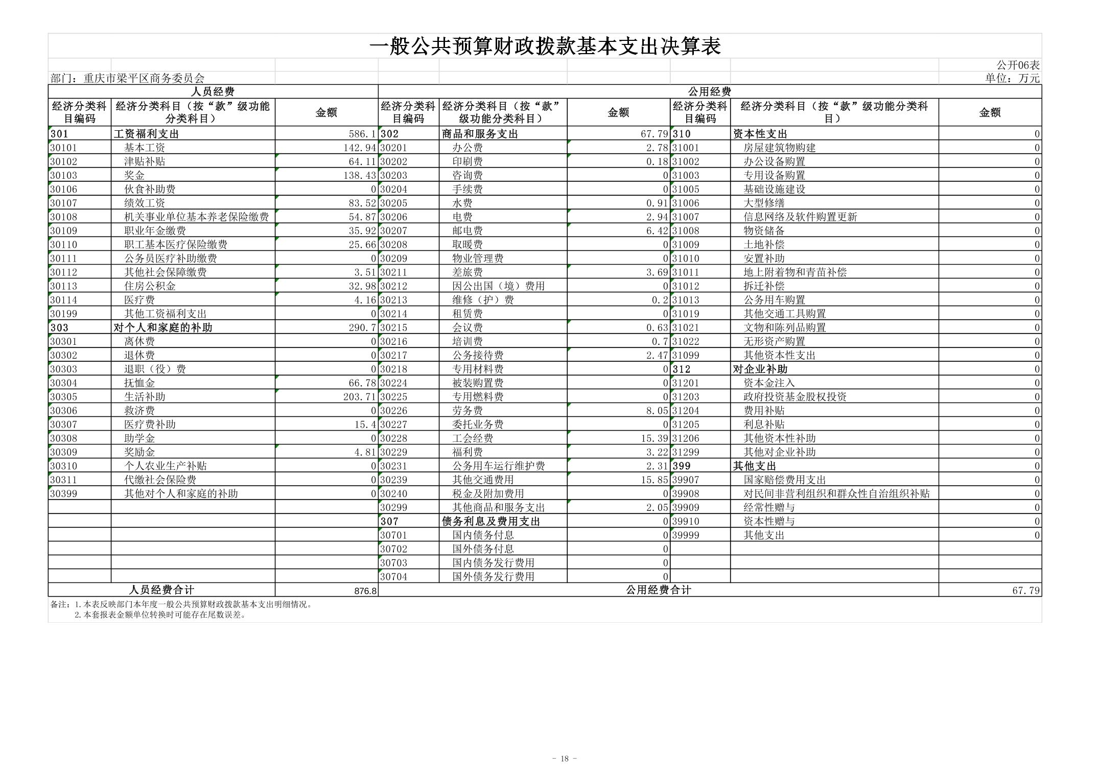 標題 重慶市梁平區商務委員會 2024年度決算說明