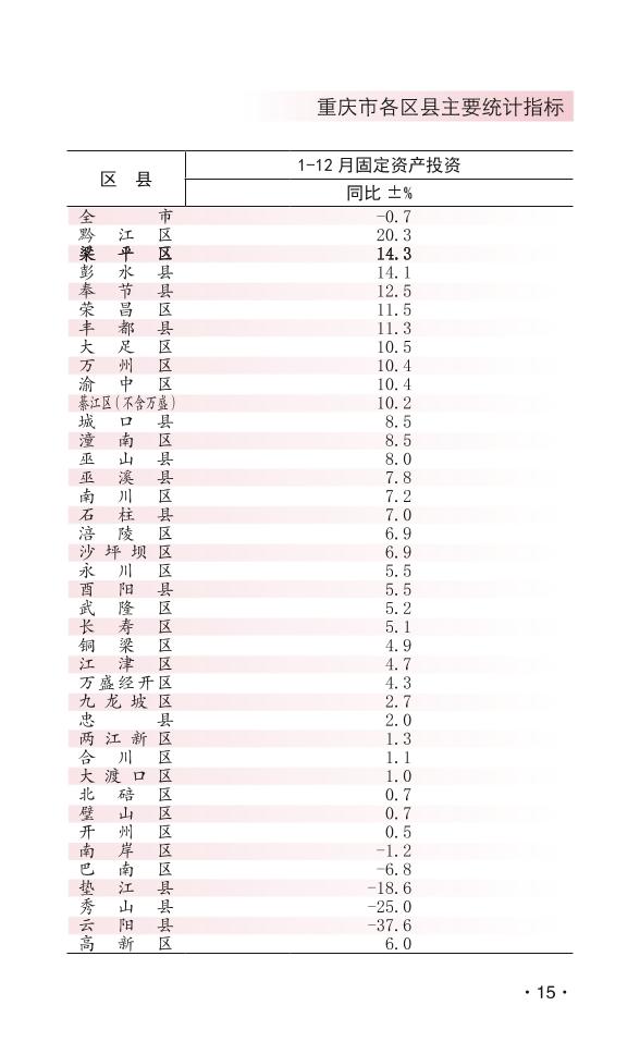 | 發布機構 | 梁平區統計局 |