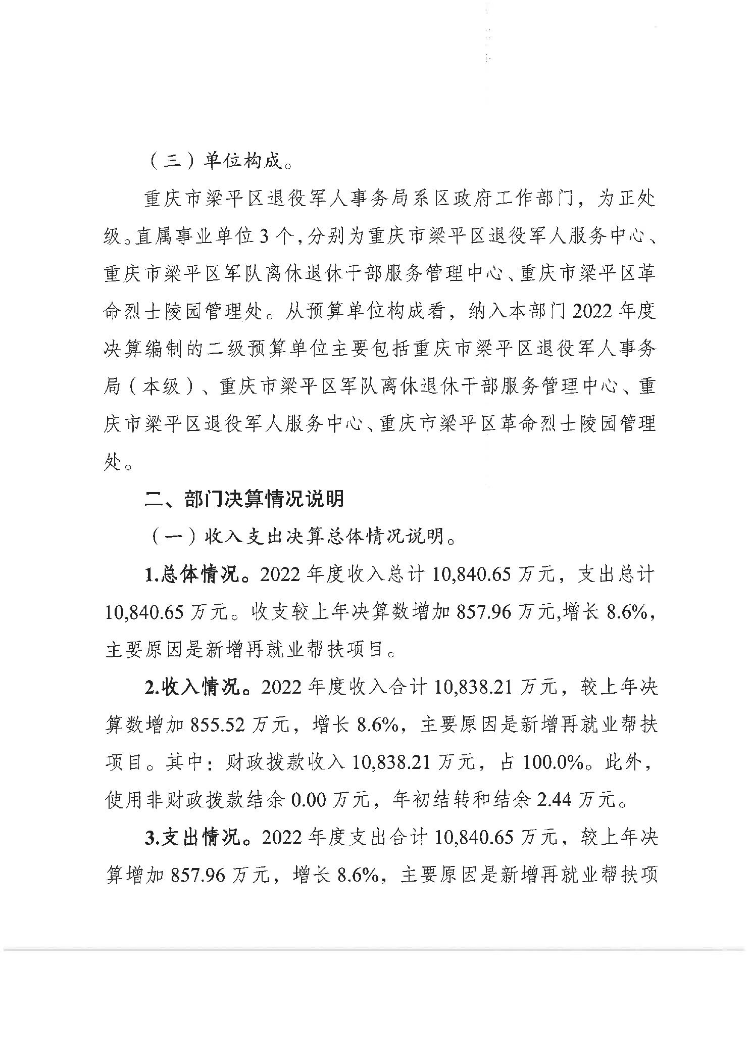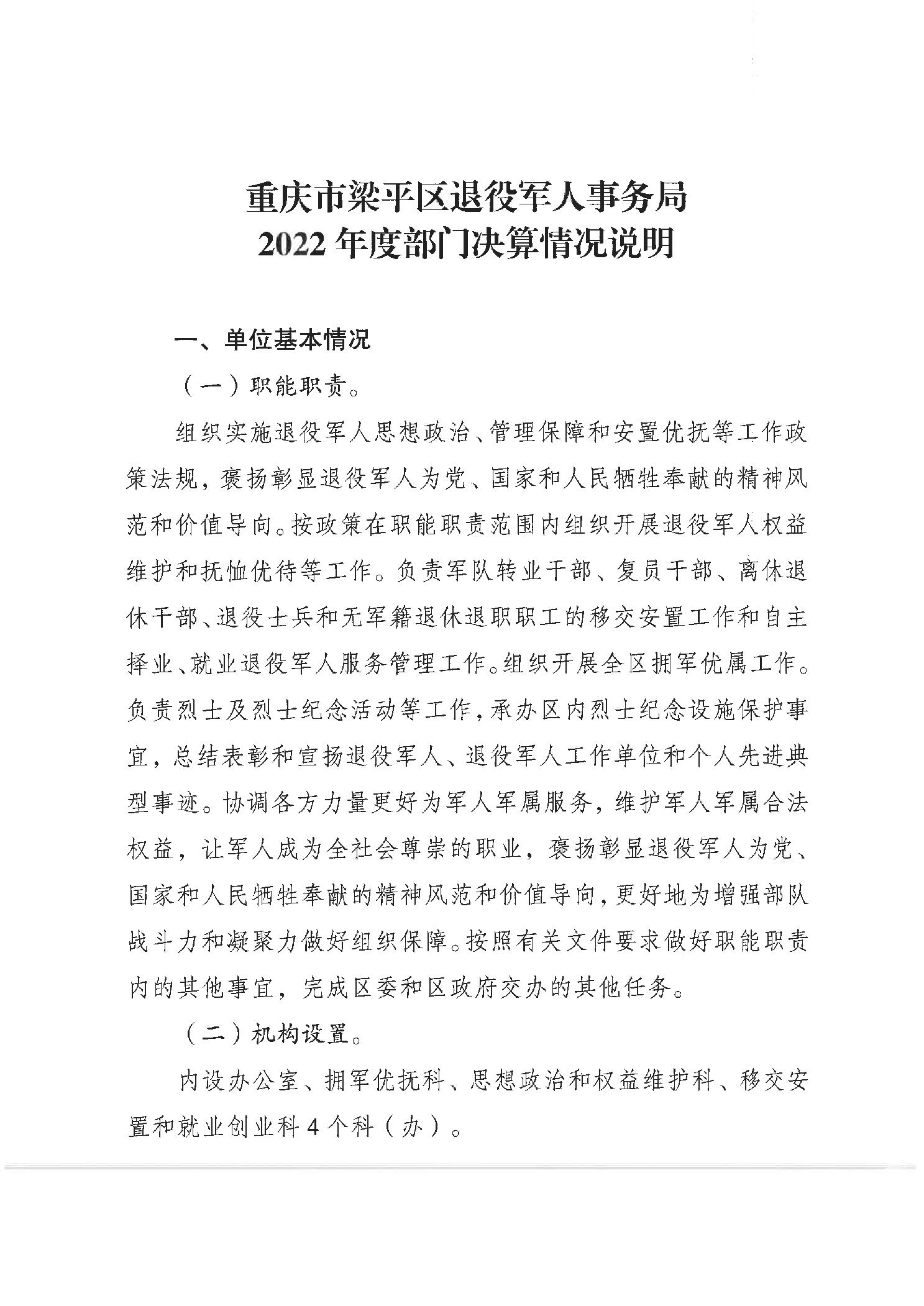 | 標(biāo)題 | 重慶市梁平區(qū)退役軍人事務(wù)局2022年度部門(mén)決算情況說(shuō)明 |