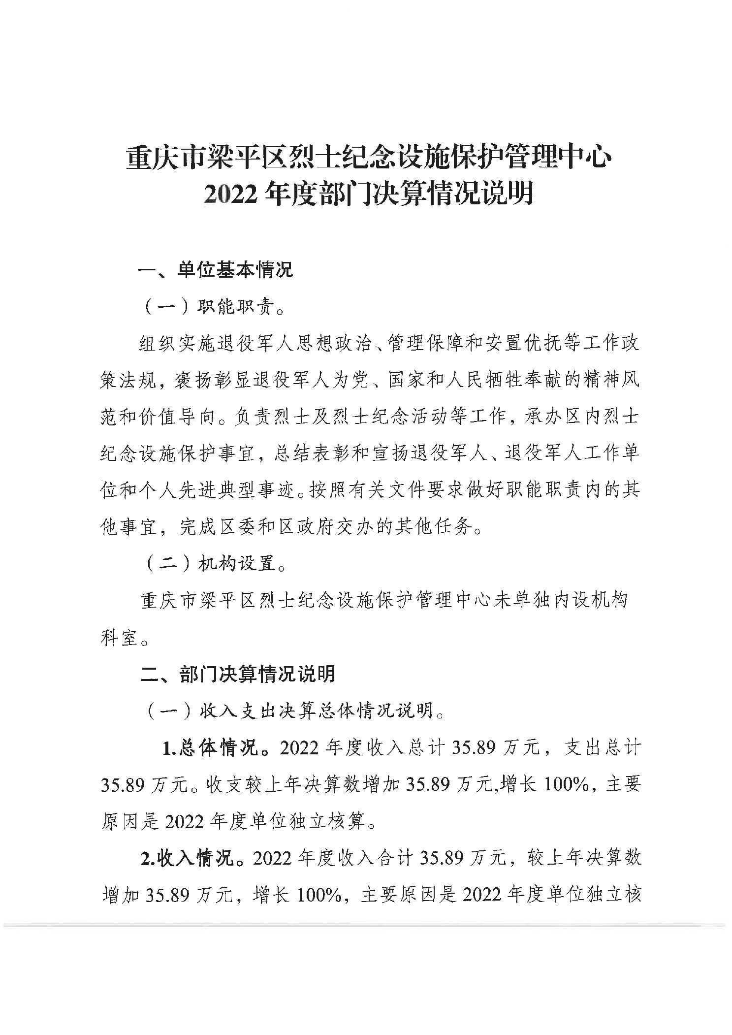 | 標題 | 重慶市梁平區烈士紀念設施保護管理中心 2022年度部門決算情況說明 |