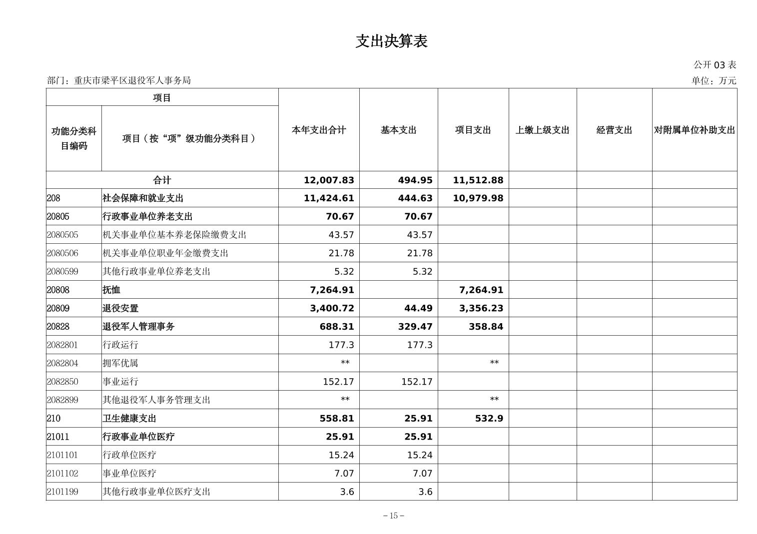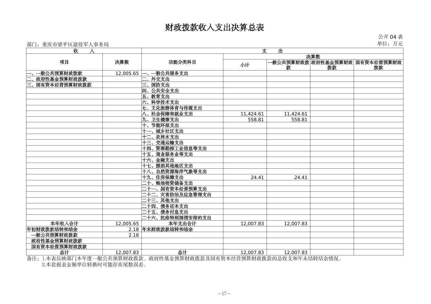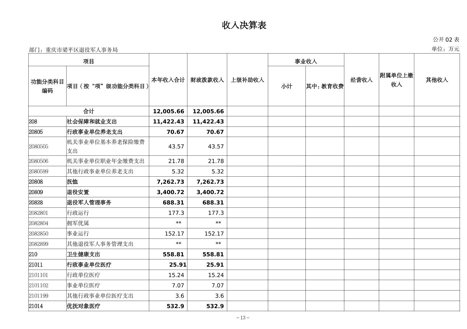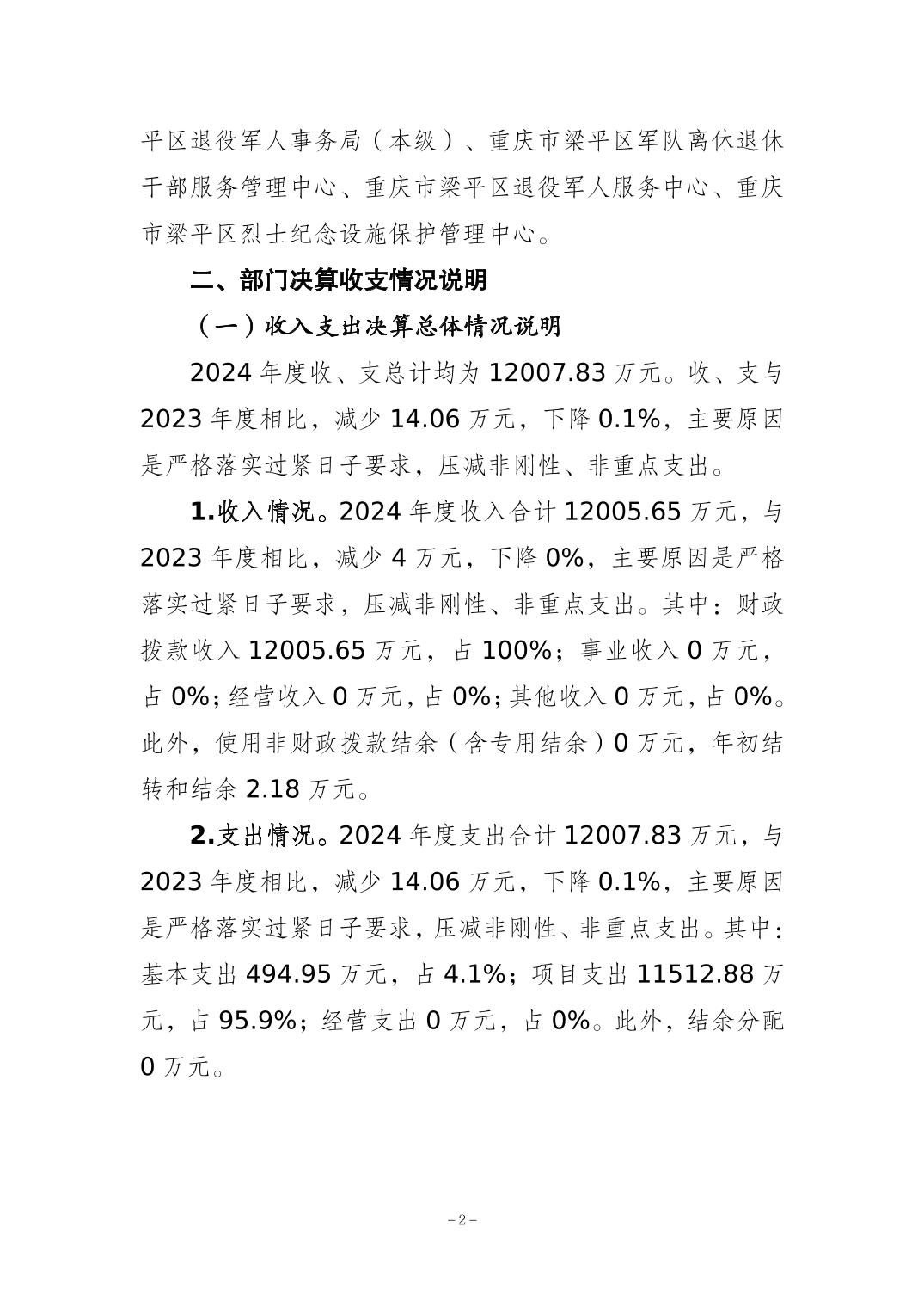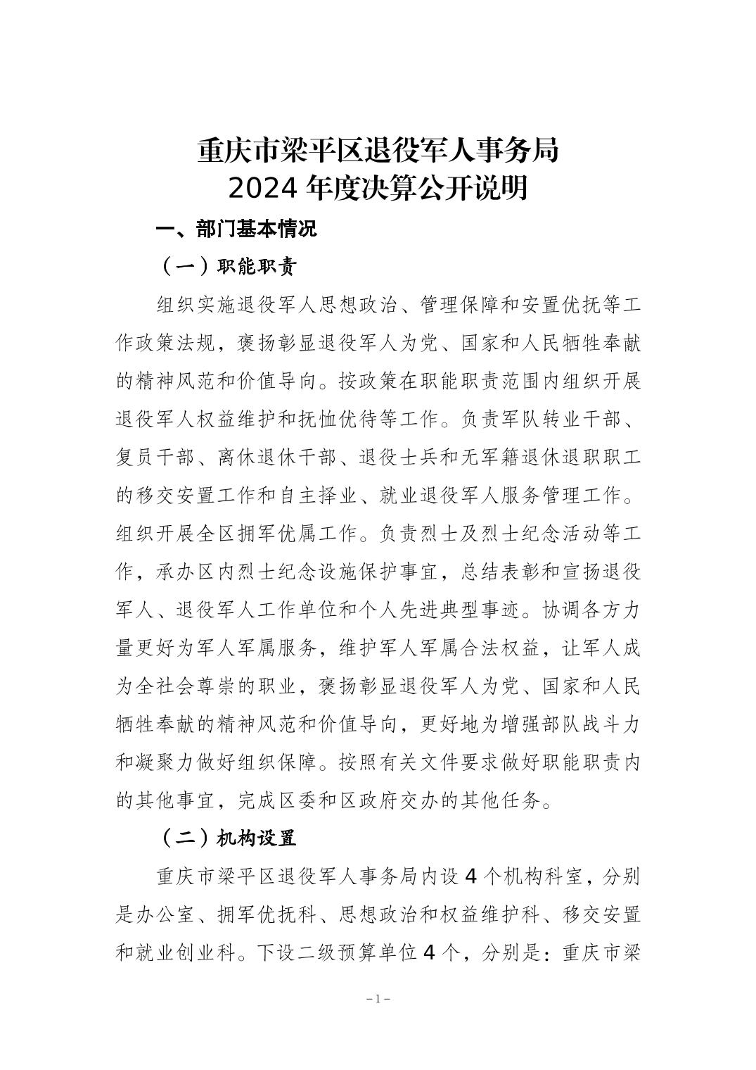 標題 重慶市梁平區退役軍人事務局2024年度決算公開說明
