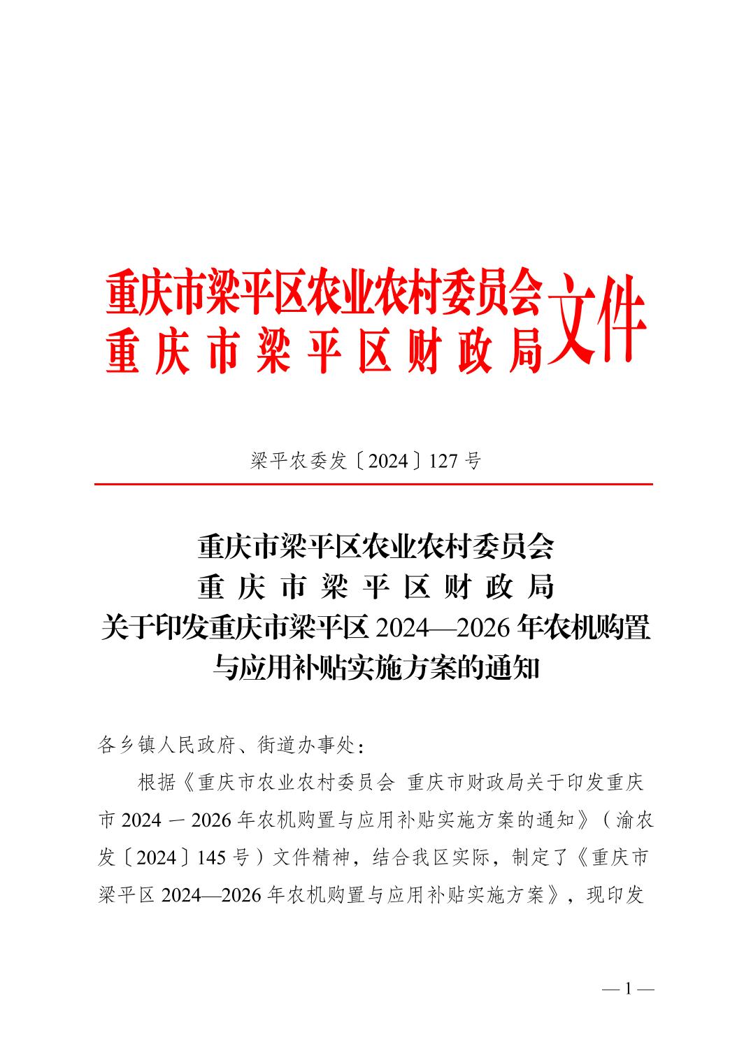 | 發文字號 | 梁平農委發〔2024〕 127號 |