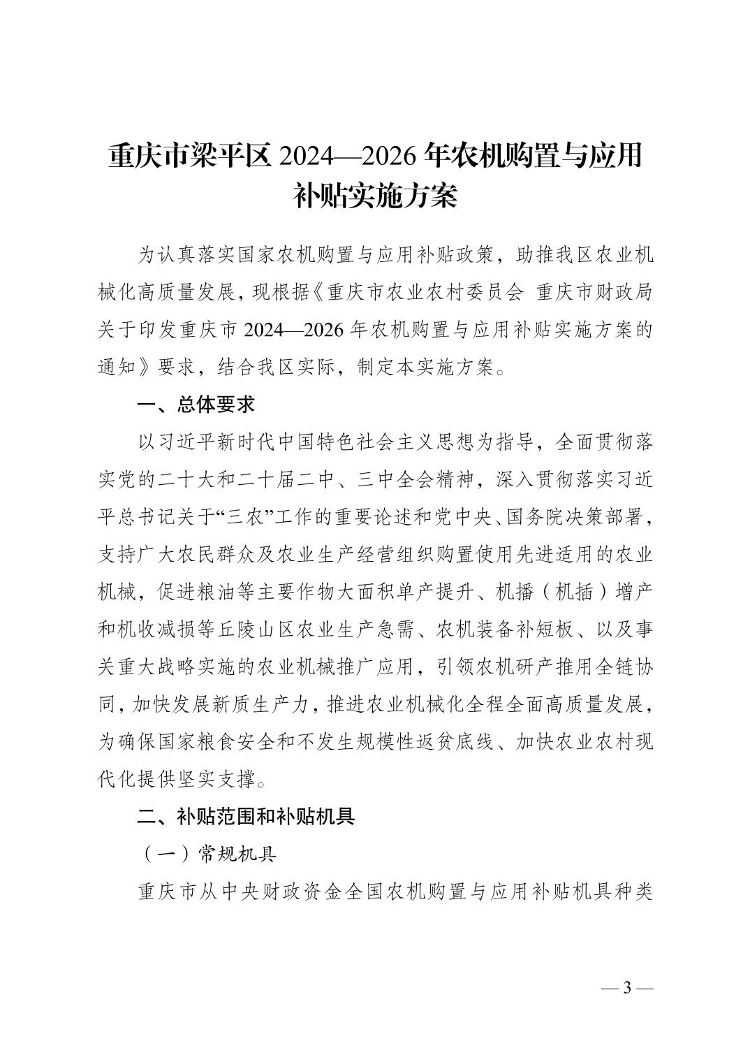 | 標題 | 關于印發重慶市梁平區2024—2026年農機購置 與應用補貼實施方案的通知 |
