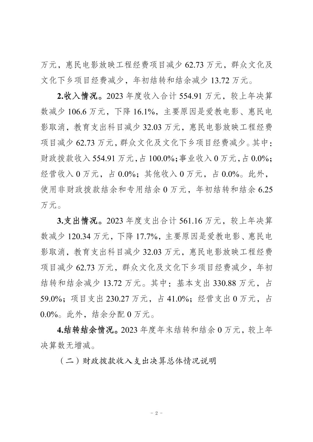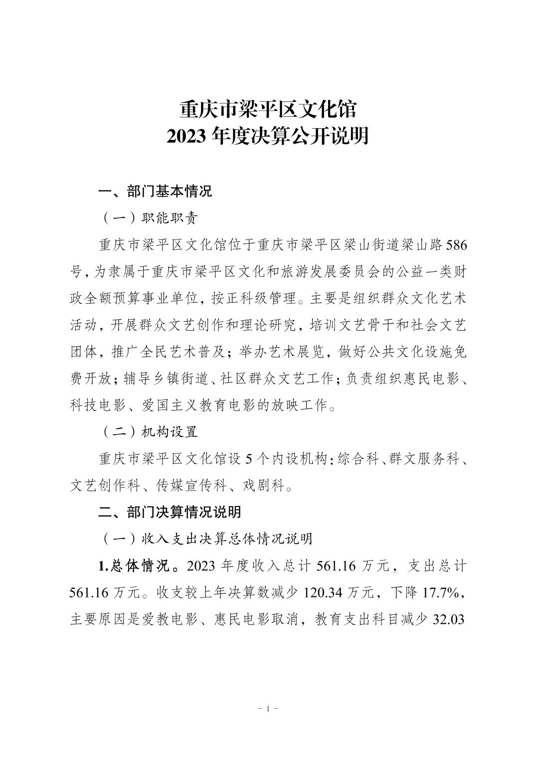 | 標題 | 重慶市梁平區文化館2023年單位決算公開說明 |