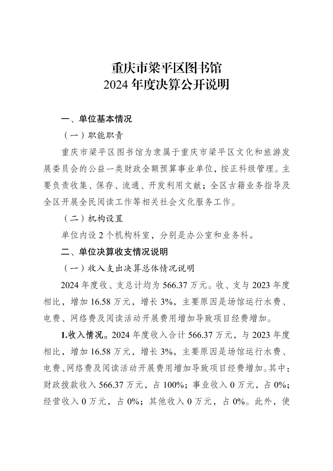 | 標(biāo)題 | 重慶市梁平區(qū)圖書館2024年決算公開說明 |