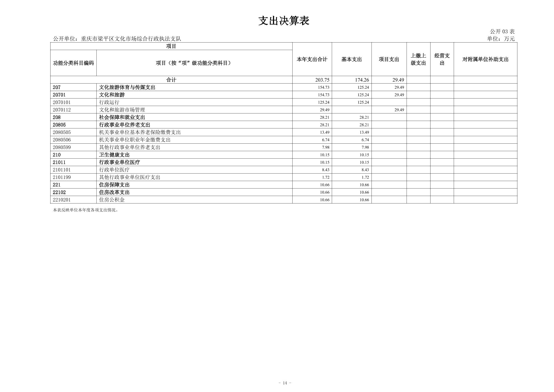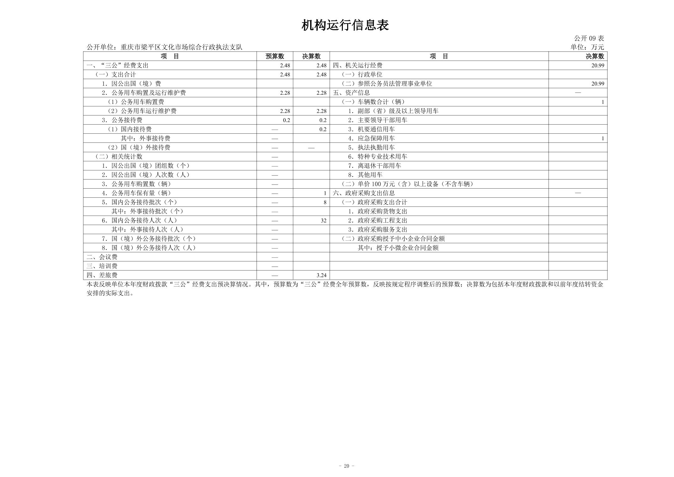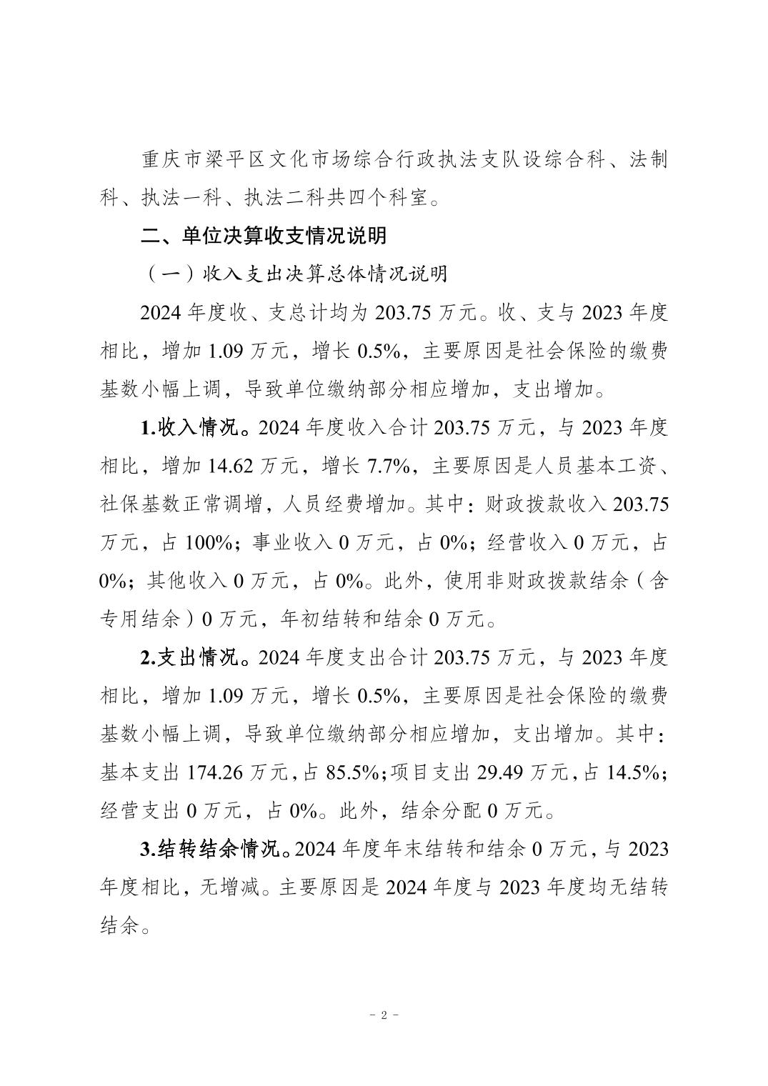 標題 重慶市梁平區文化市場綜合行政執法支隊2024年決算公開說明
