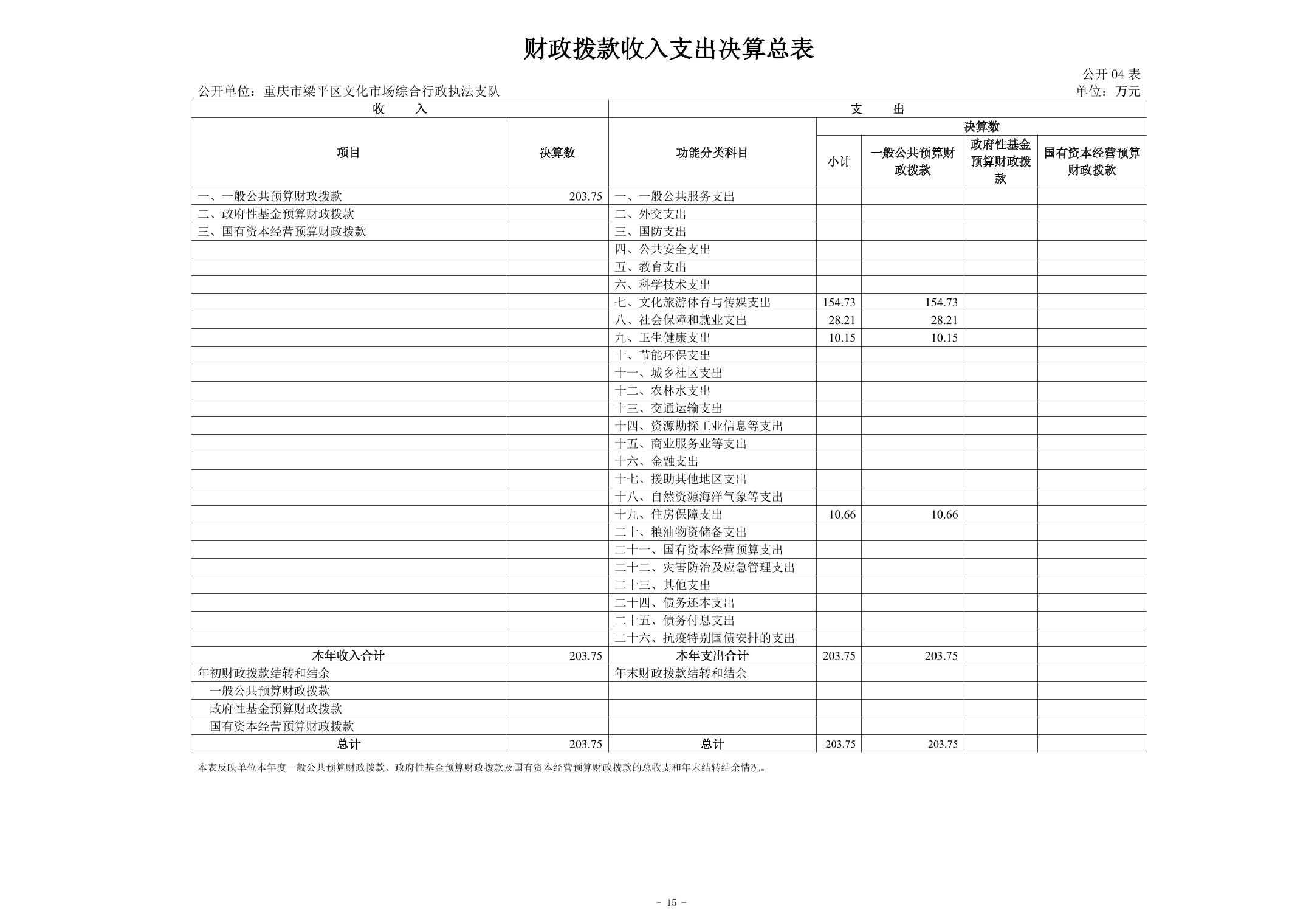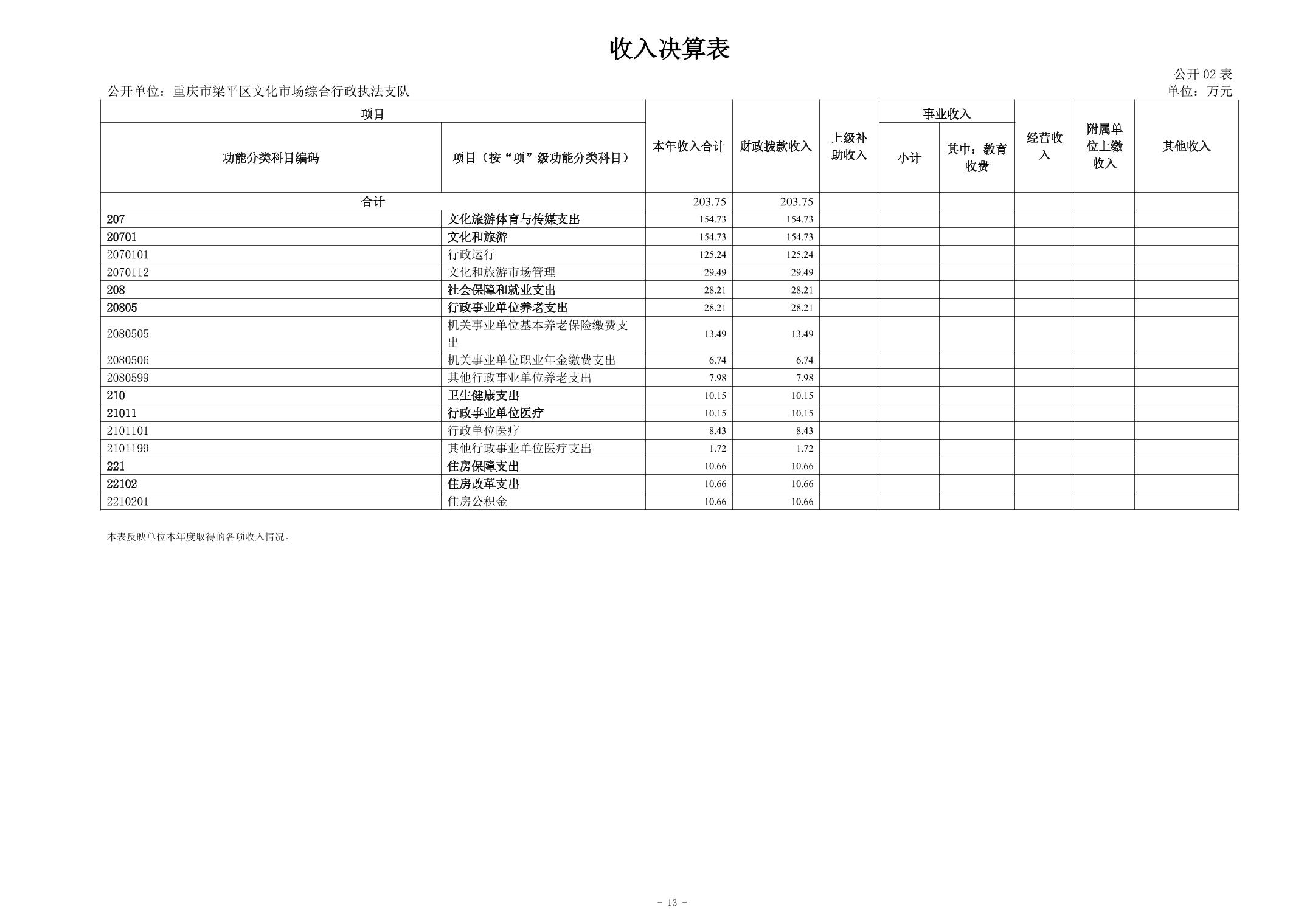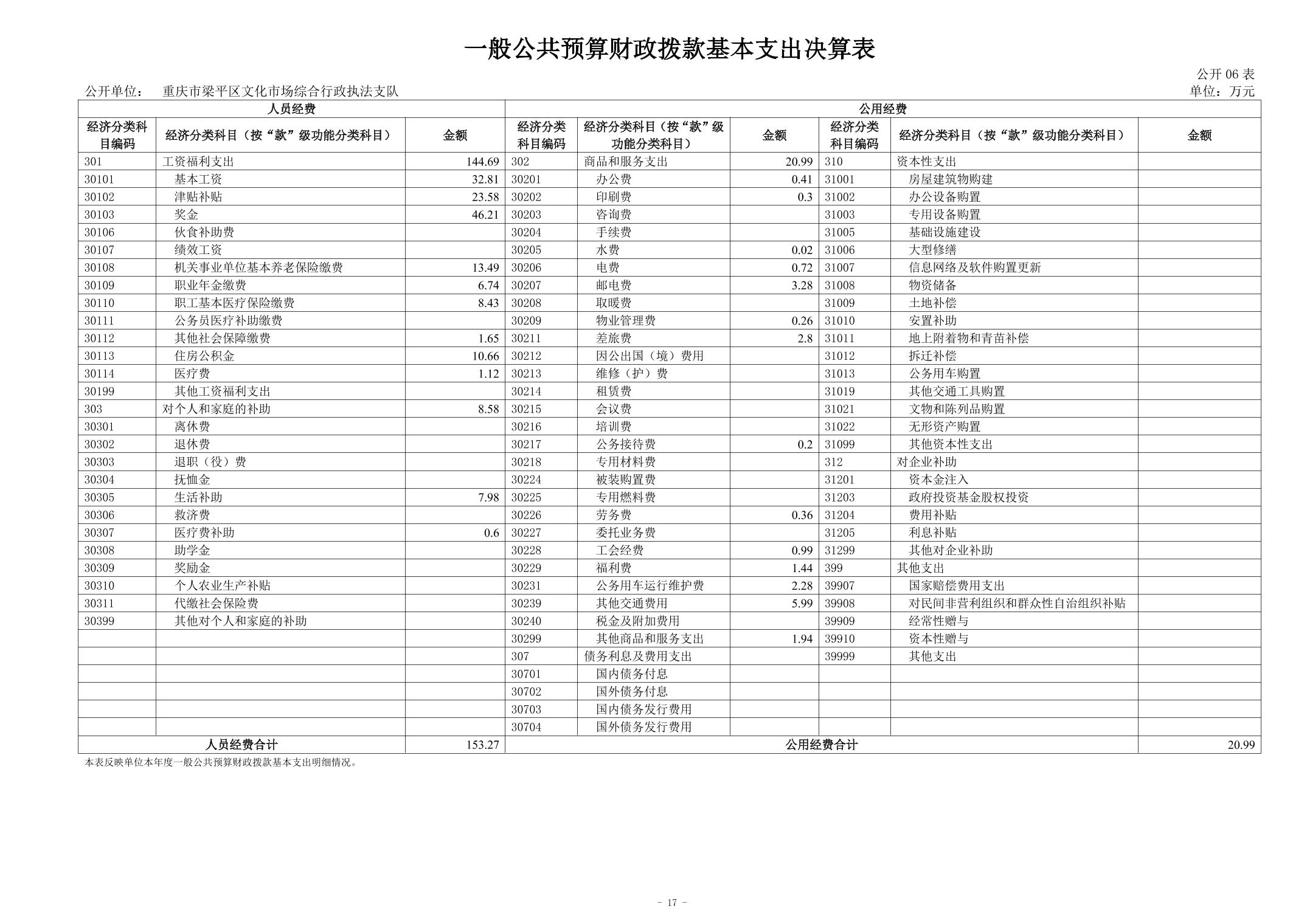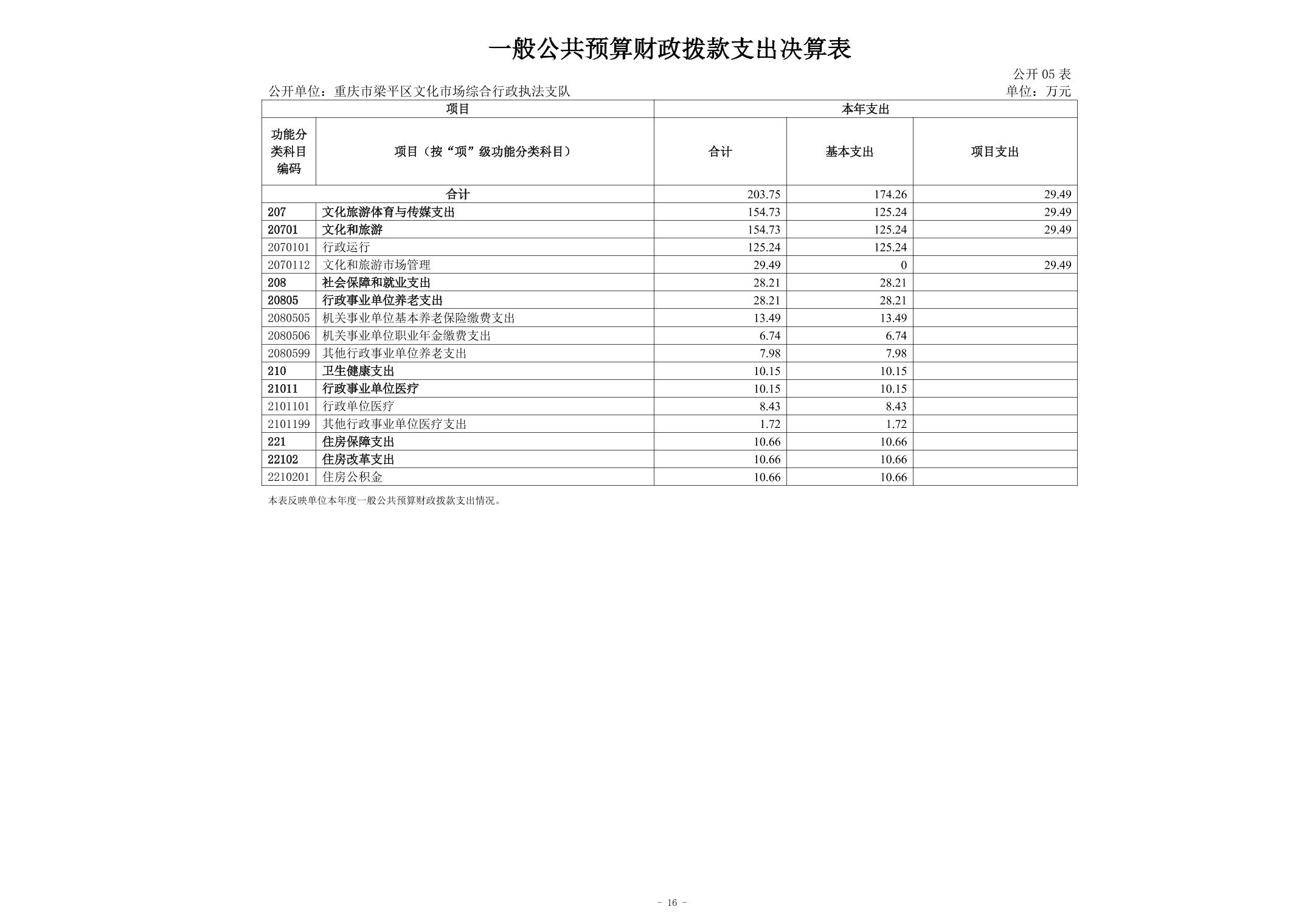 標題 重慶市梁平區文化市場綜合行政執法支隊2024年決算公開說明