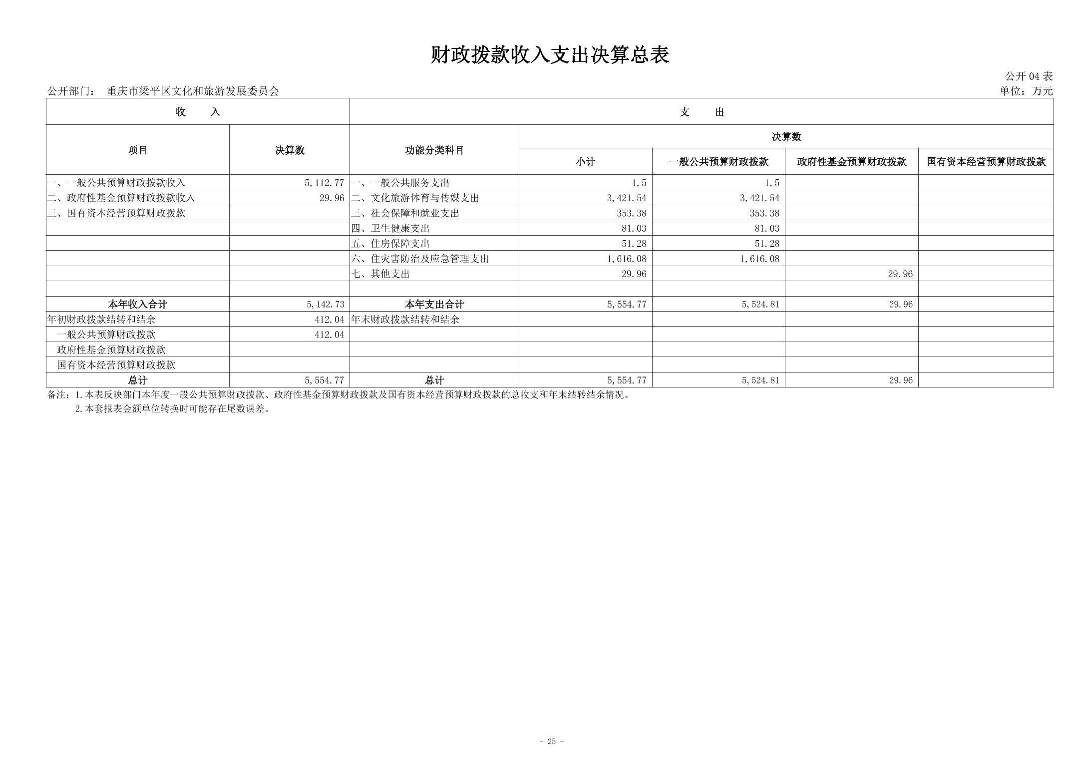 | 標題 | 重慶市梁平區文化和旅游發展委員會2024年決算公開說明 |