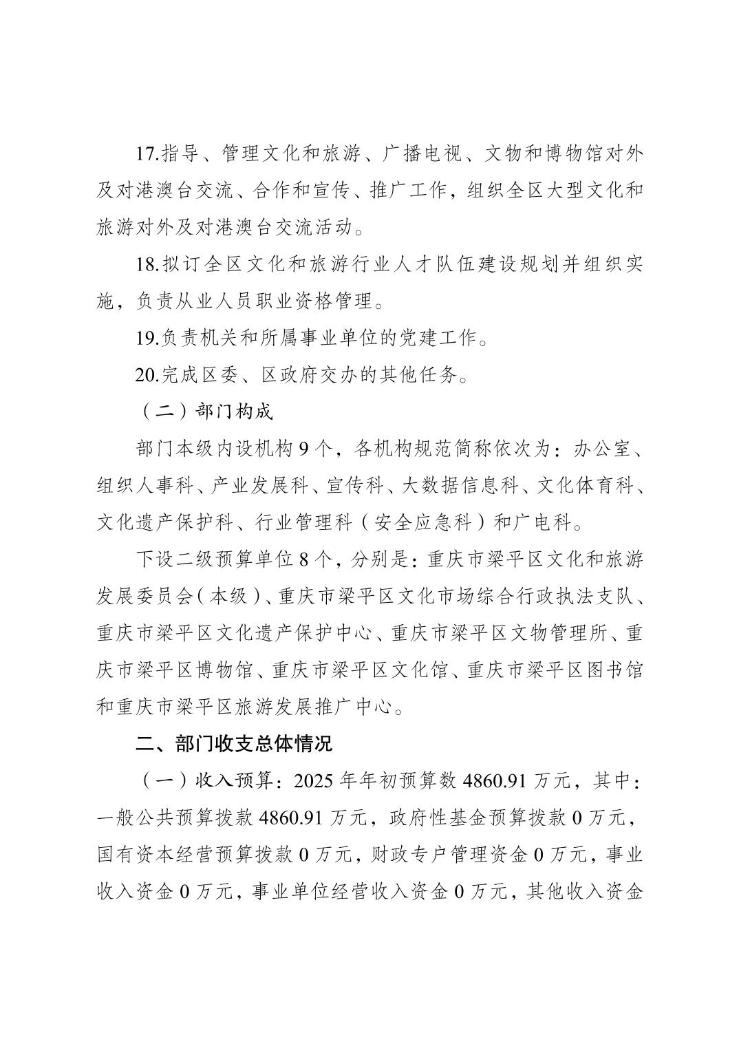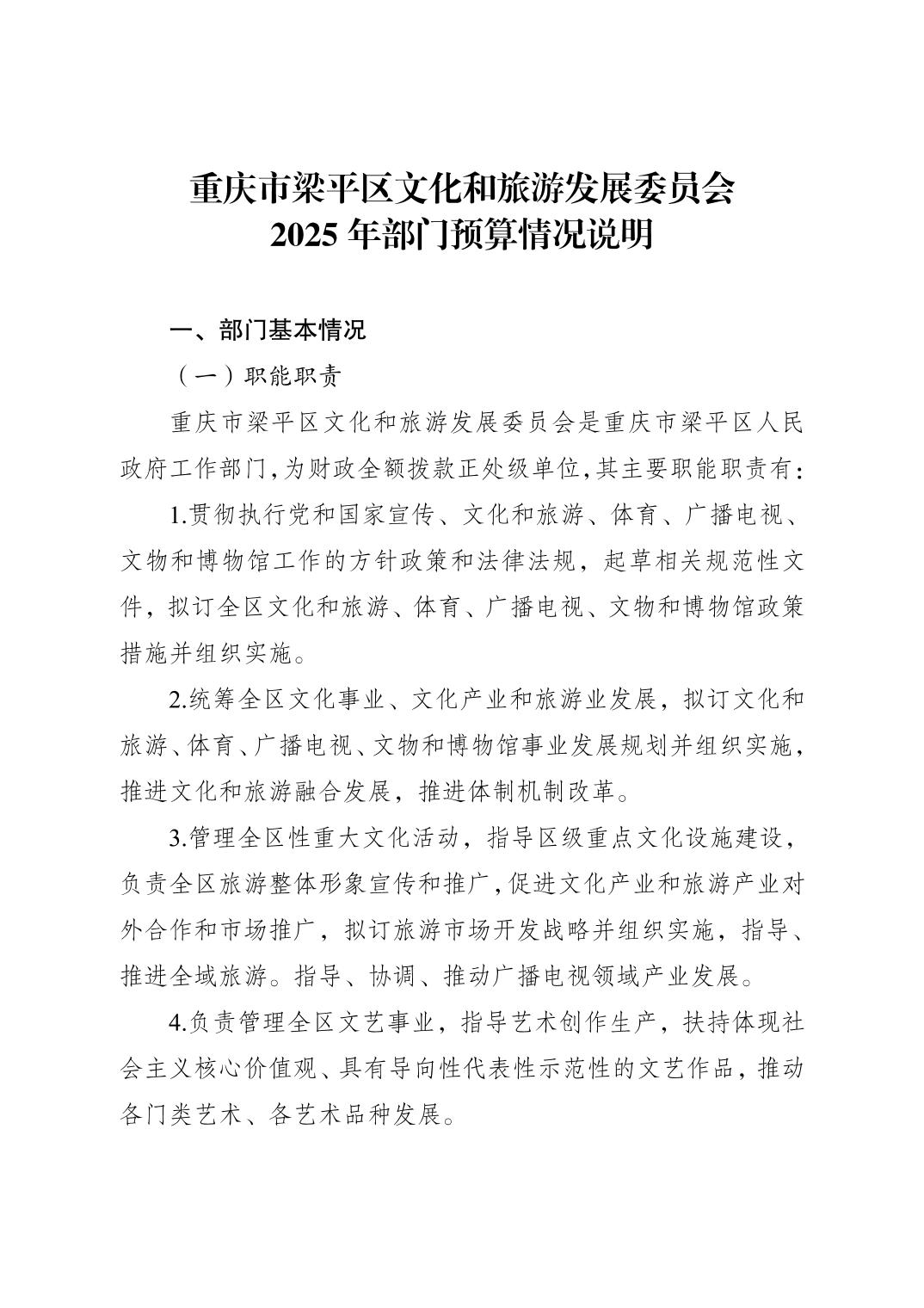 | 標題 | 重慶市梁平區文化和旅游發展委員會2025年部門預算情況說明 |