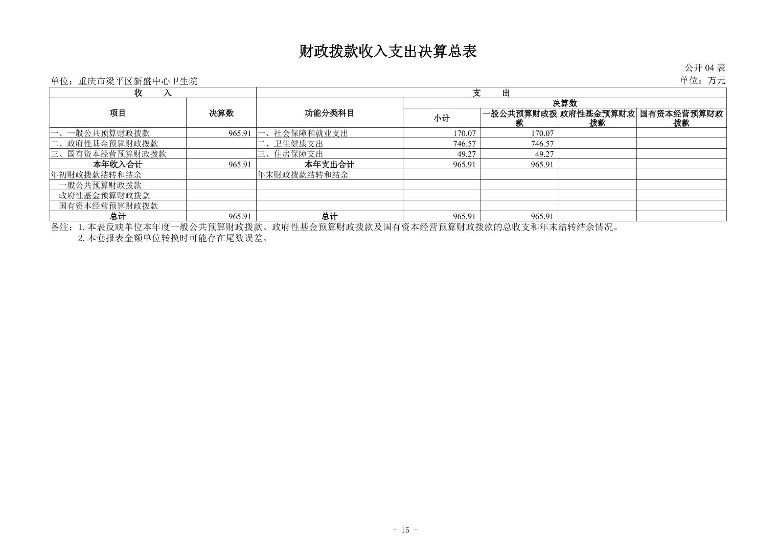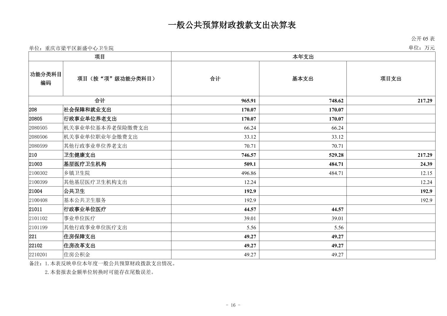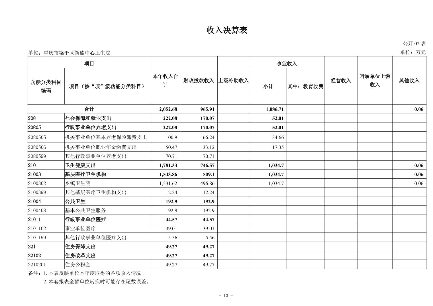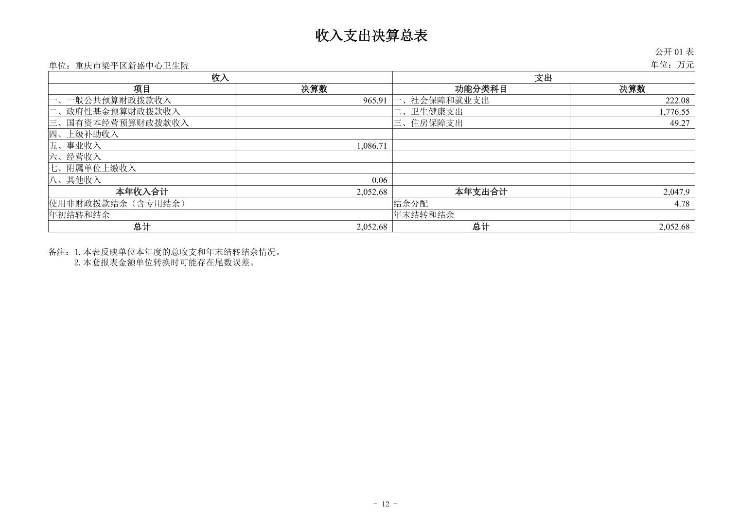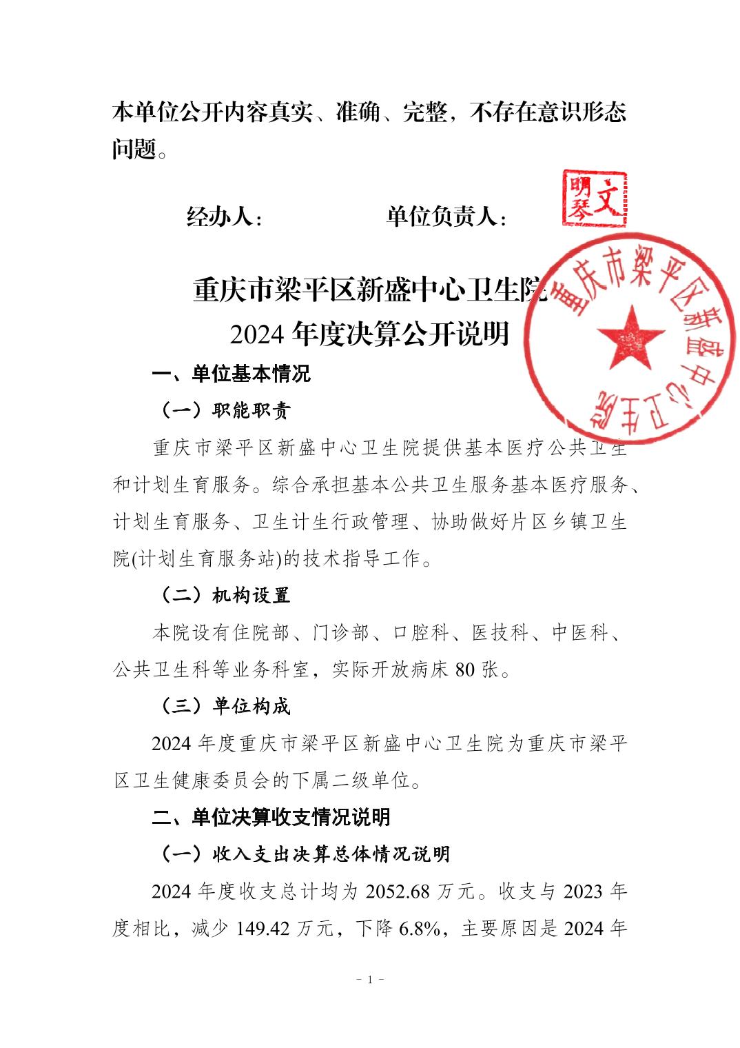 標題 重慶市梁平區新盛中心衛生院2024年度決算公開說明
