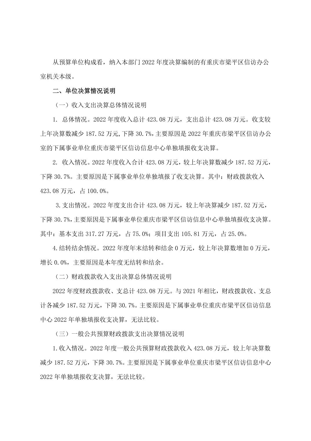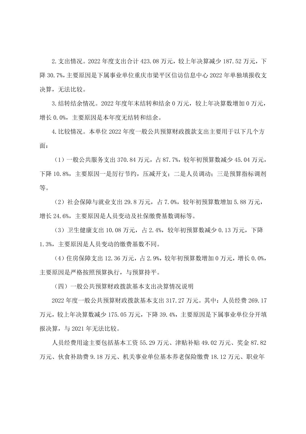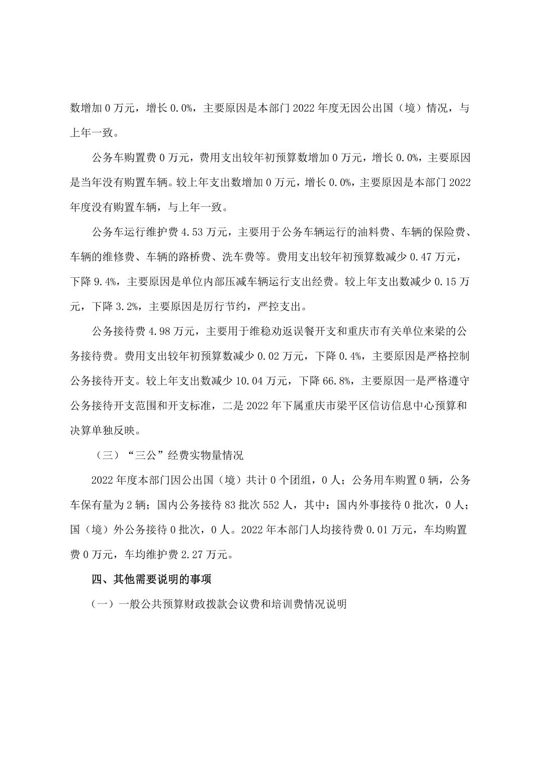 | 標題 | 重慶市梁平區信訪辦公室(本級)2022年度單位決算公開說明 |