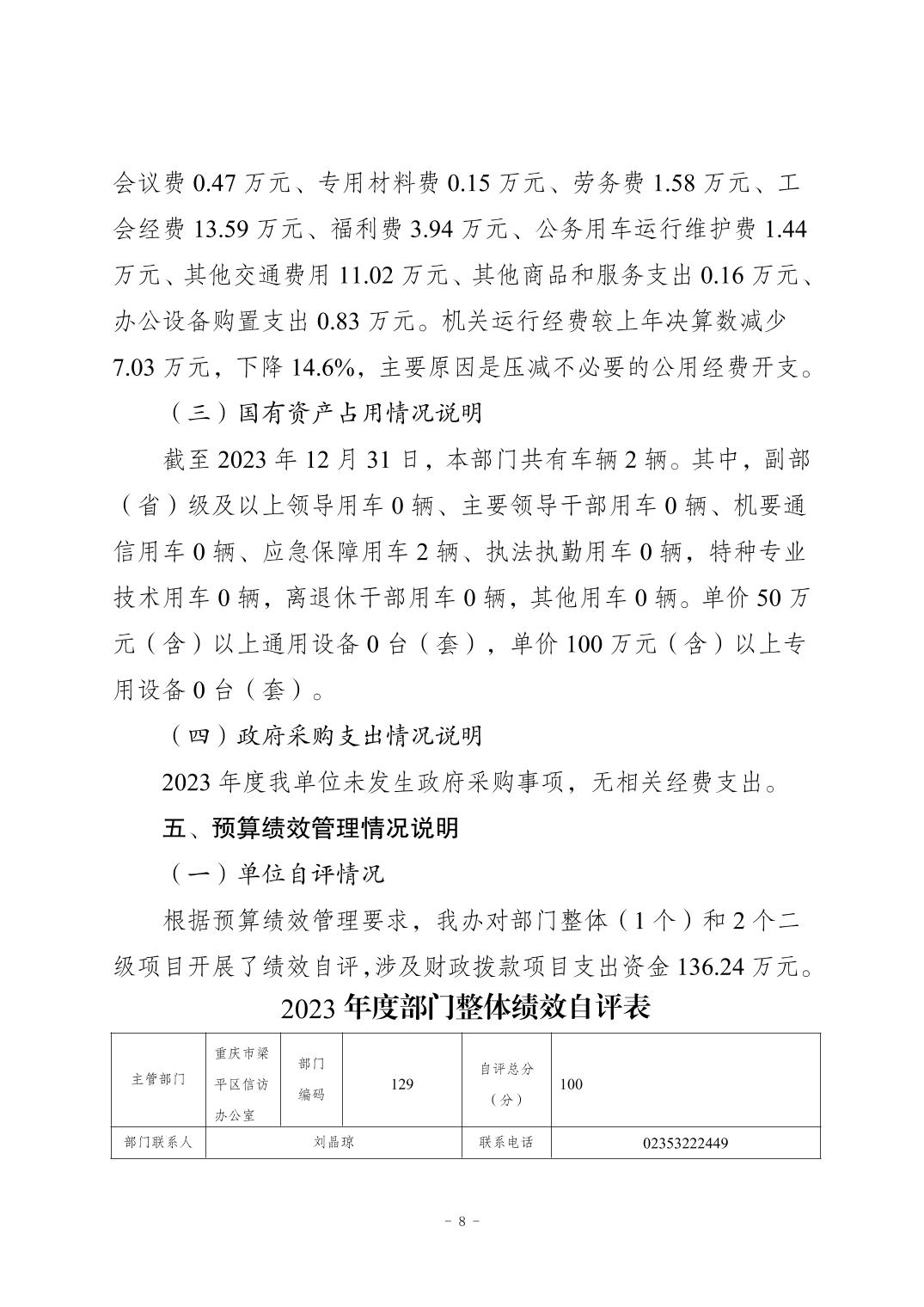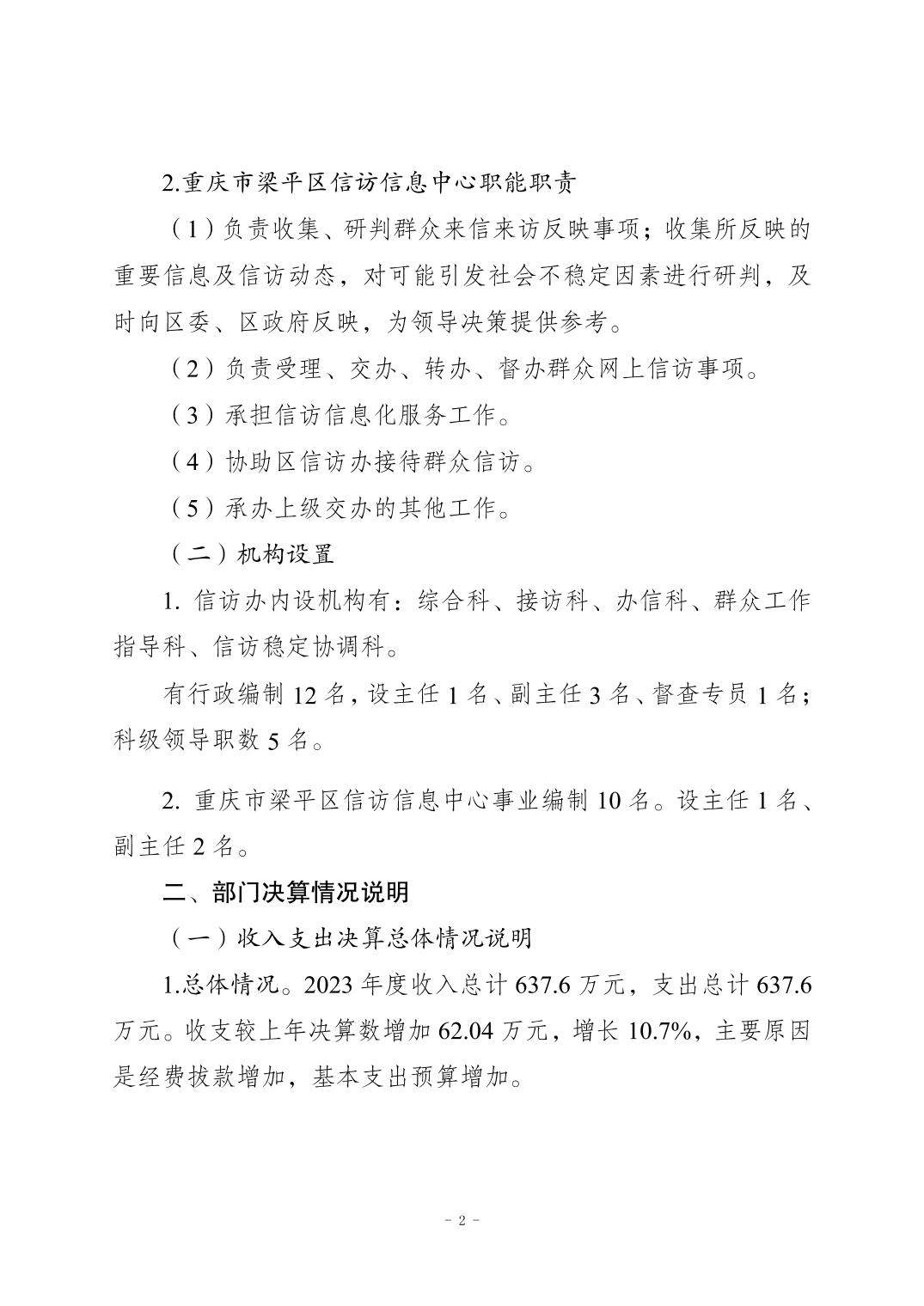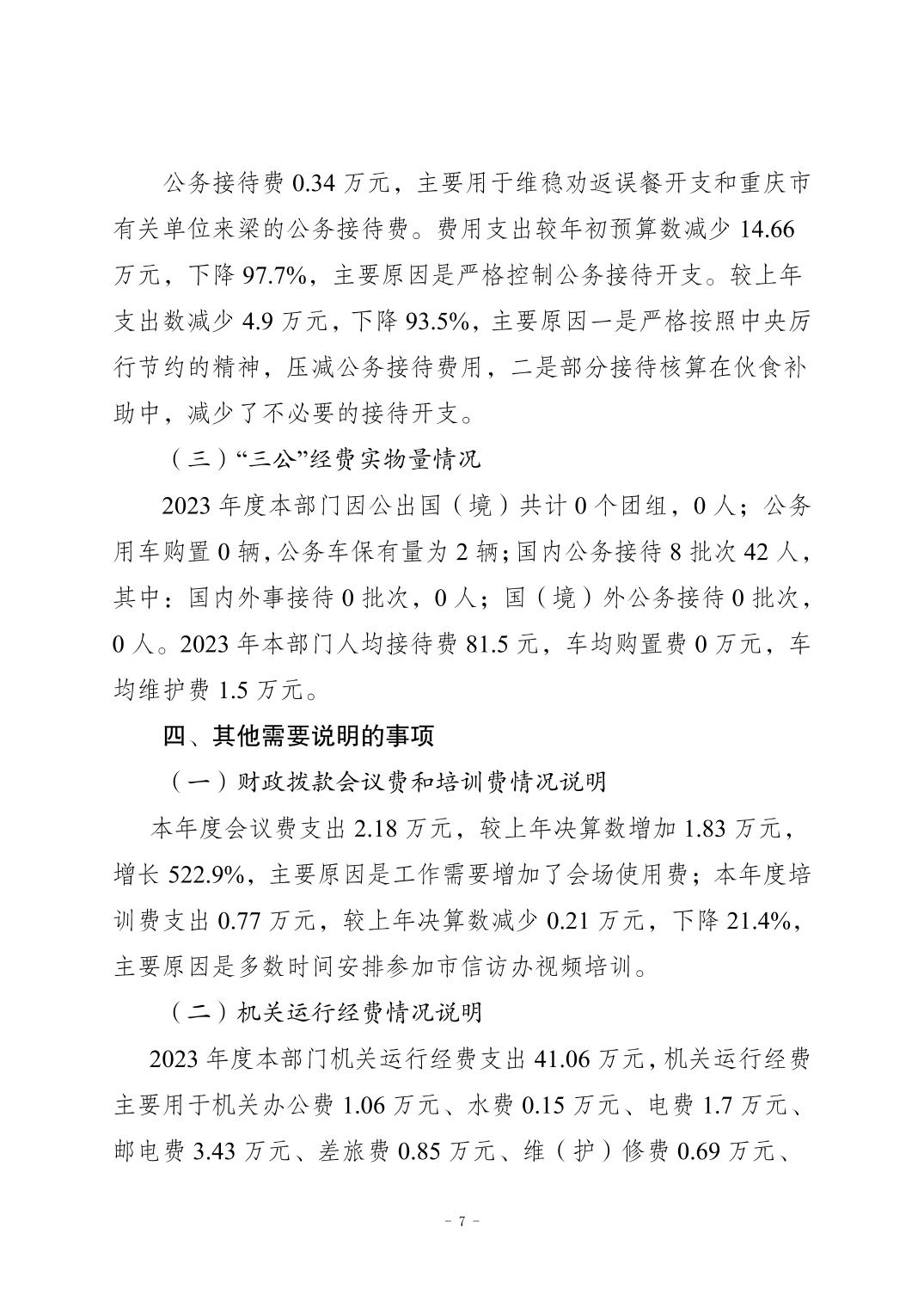 | 標題 | 重慶市梁平區信訪辦公室2023年度部門決算公開說明 |