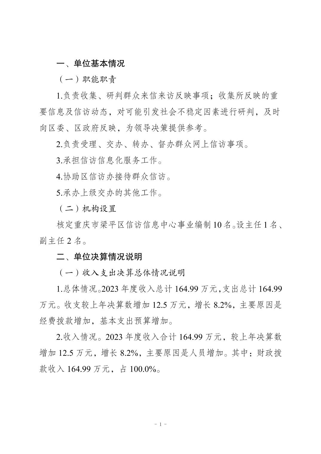 標題 重慶市梁平區信訪信息中心2023年度單位決算公開說明
