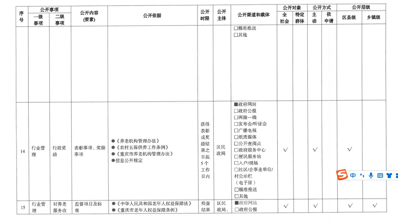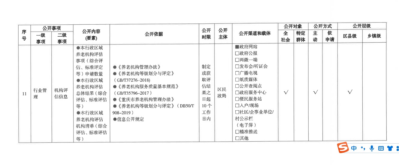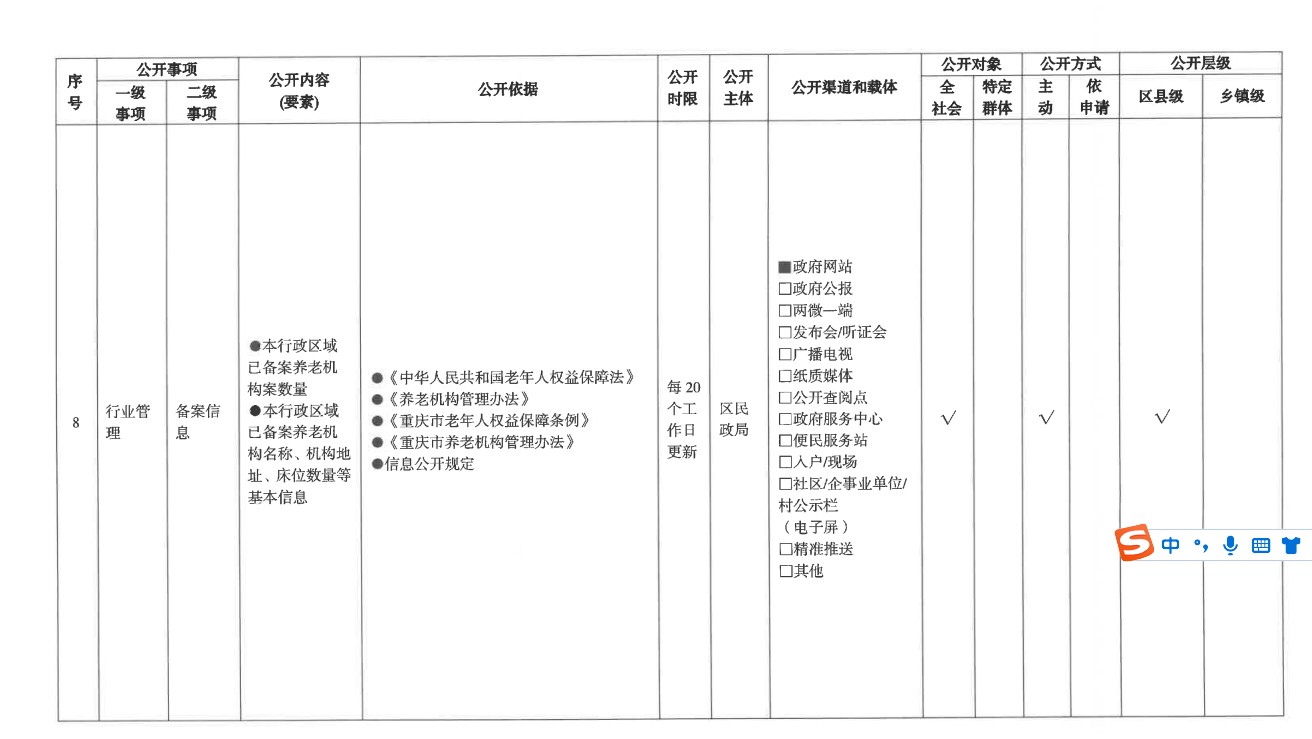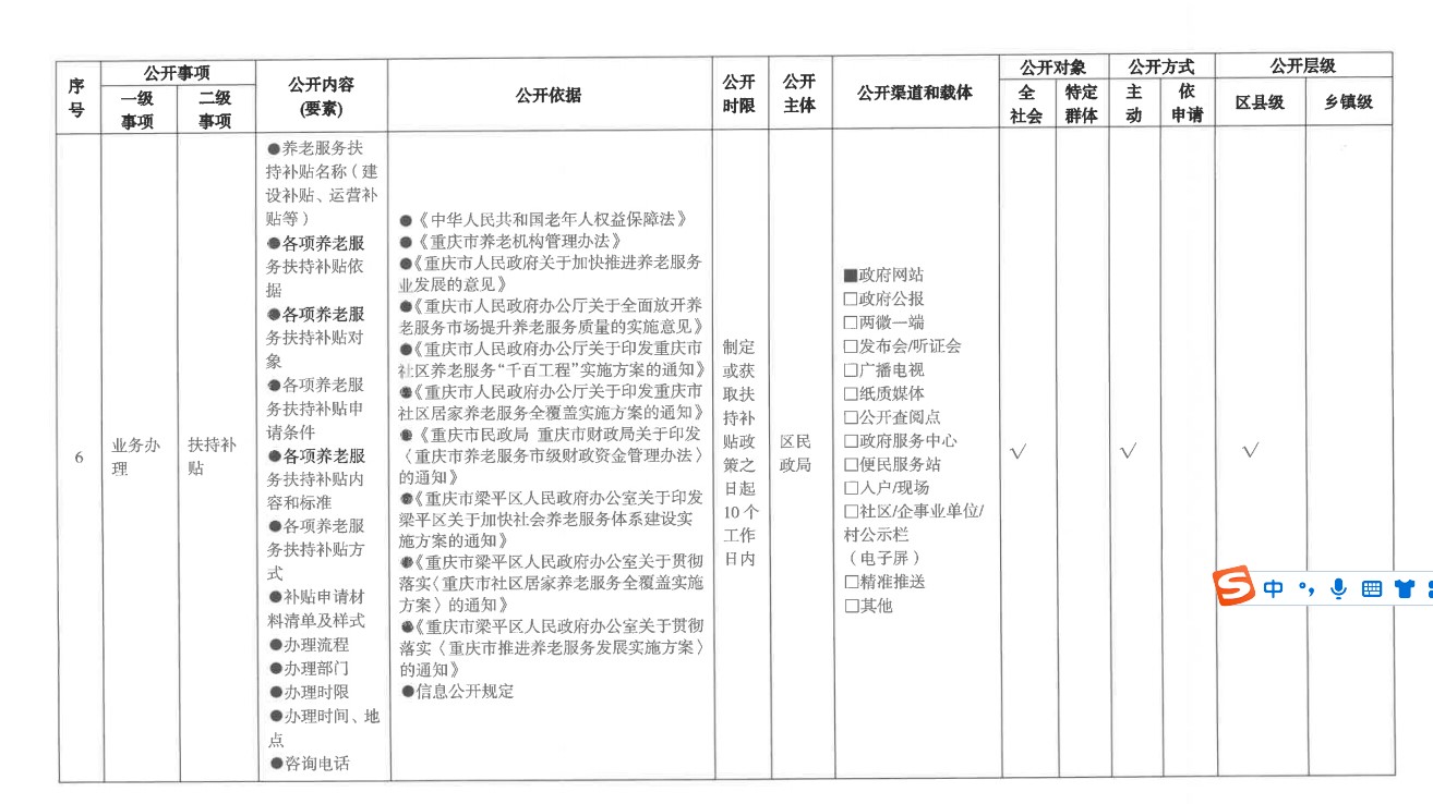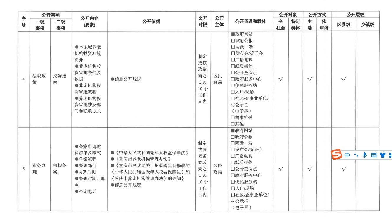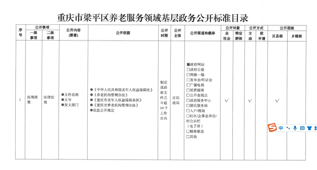 養老服務領域基層政務公開標準目錄
