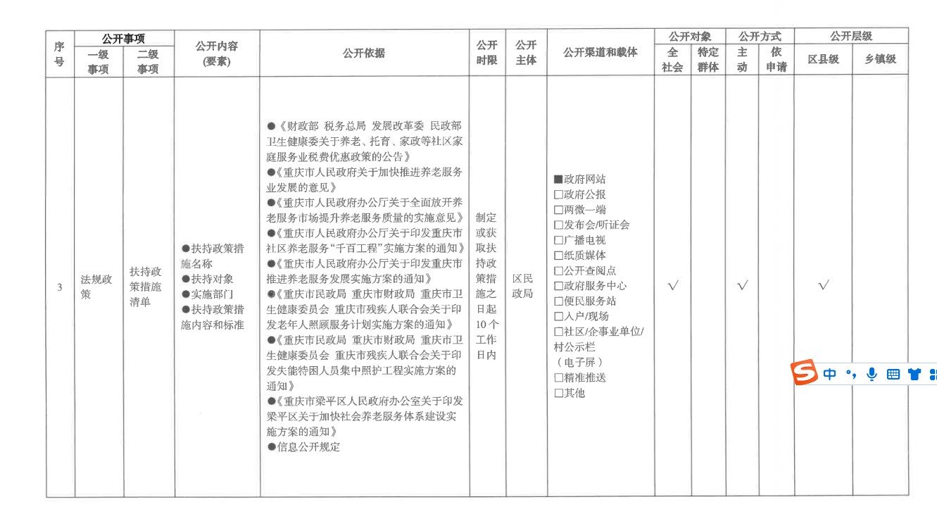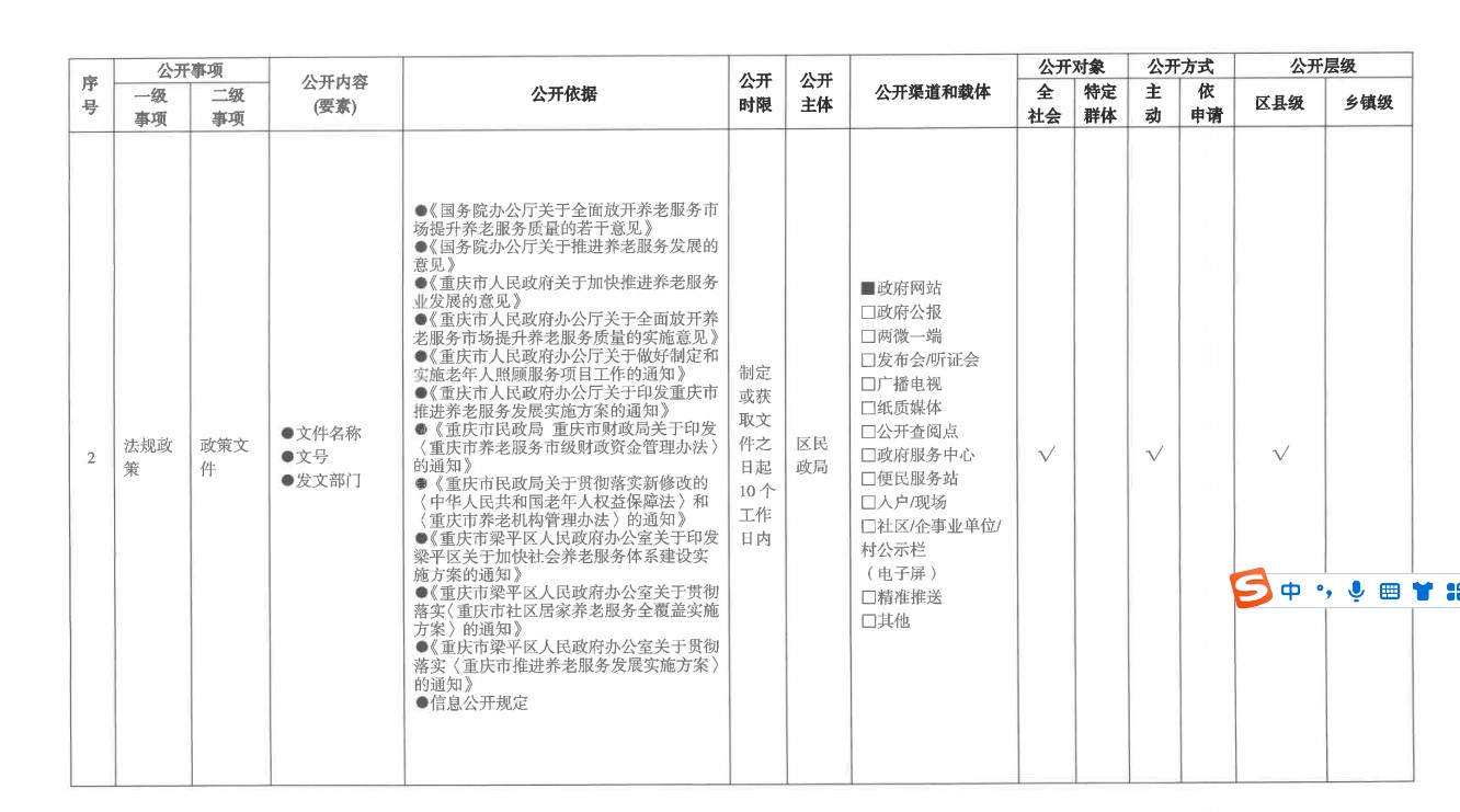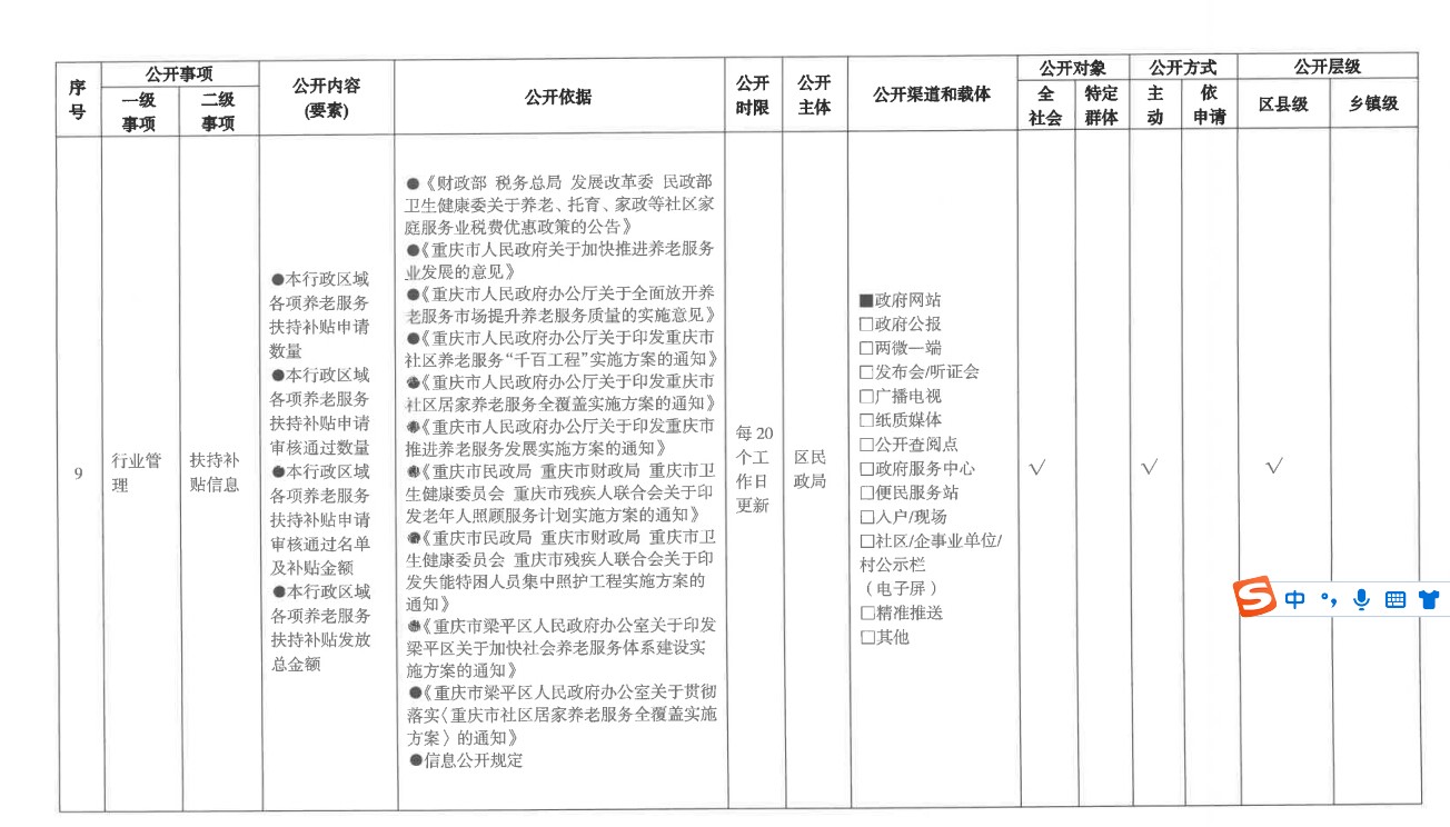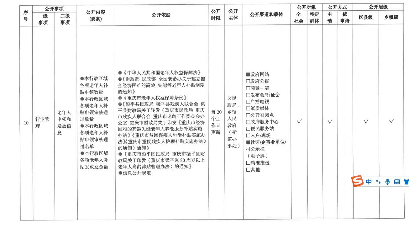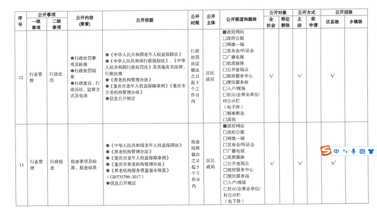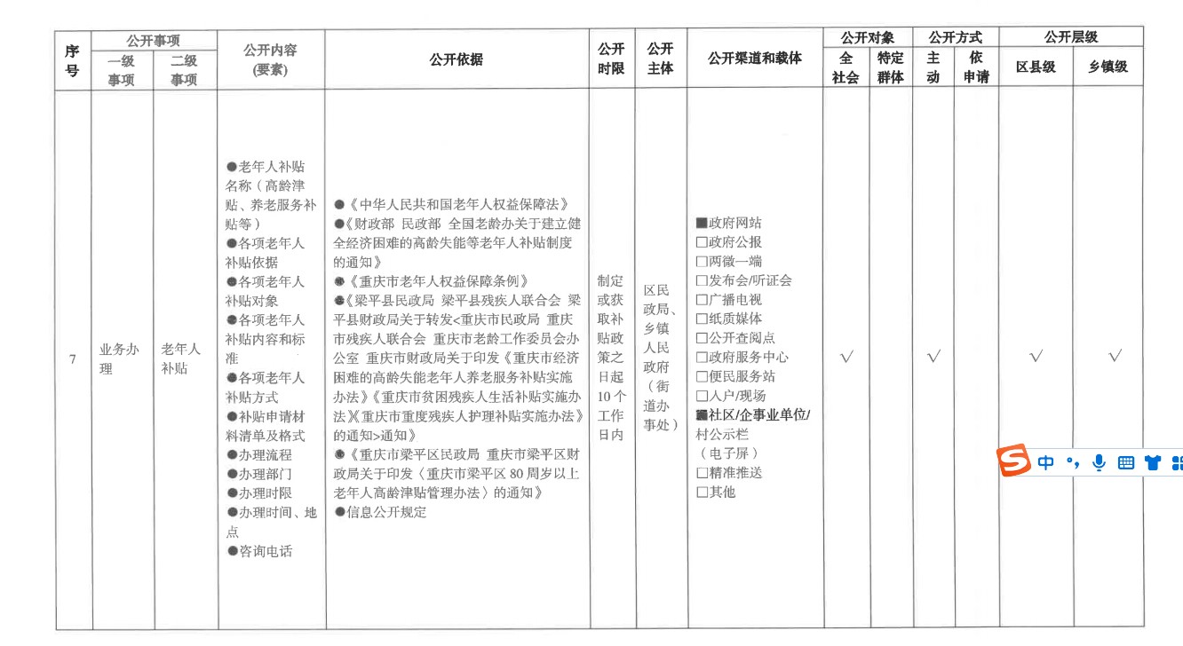 養老服務領域基層政務公開標準目錄