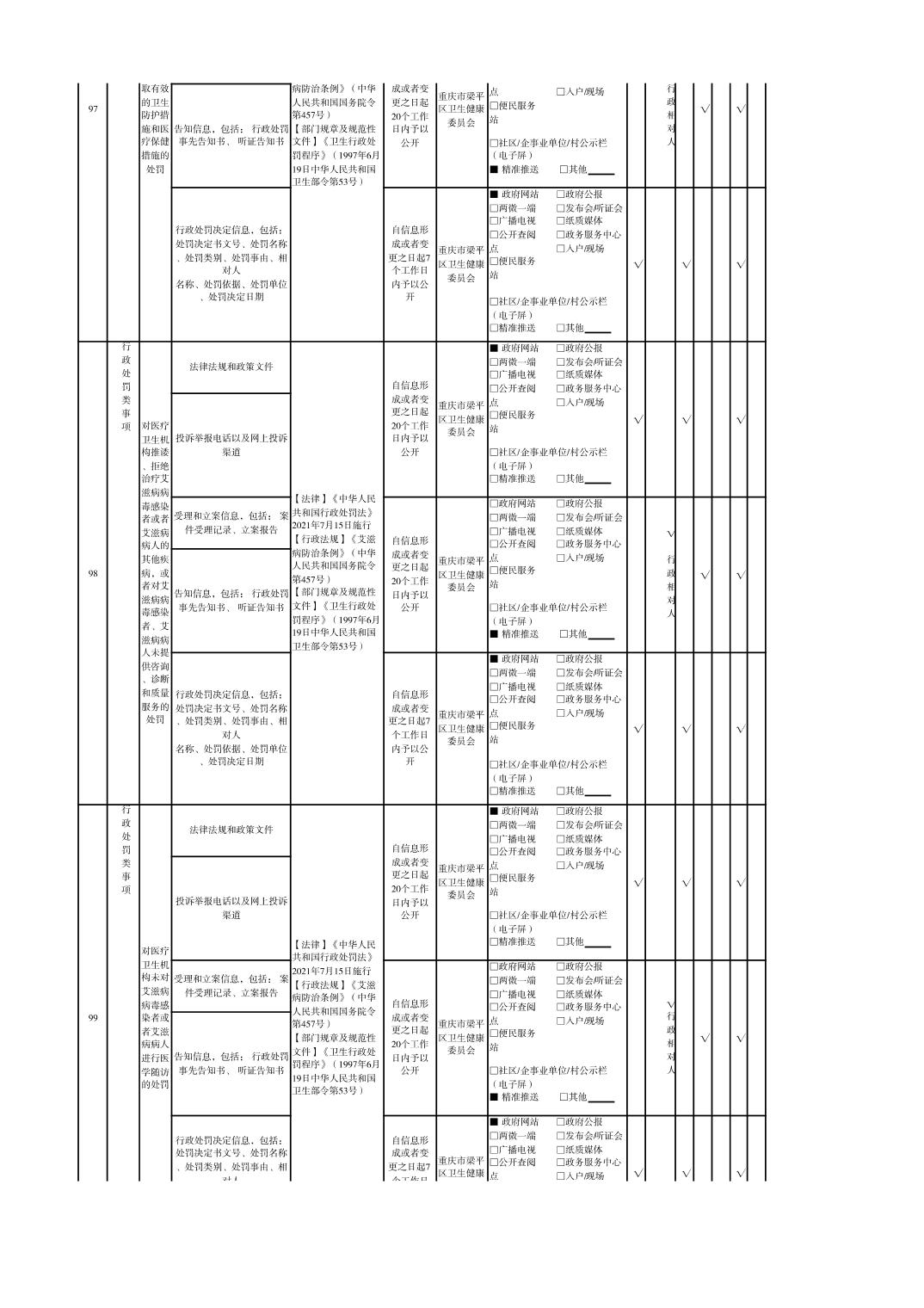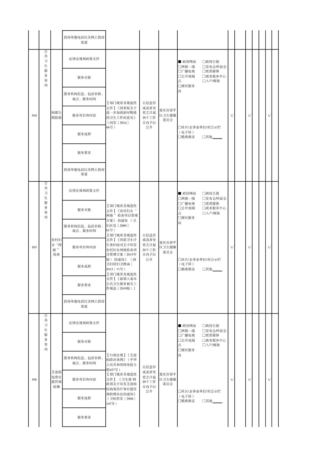 重慶市梁平區衛生健康領域基層政務公開標準目錄