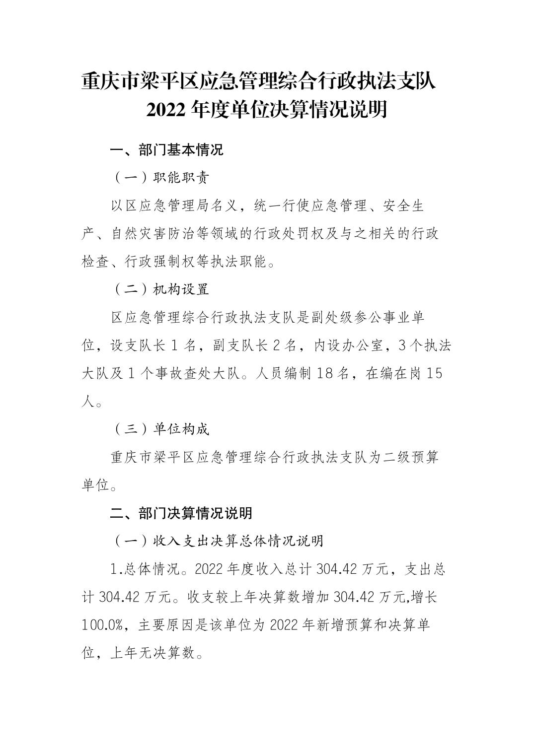 | 標題 | 重慶市梁平區應急管理綜合行政執法支隊2022年度單位決算情況說明 |
