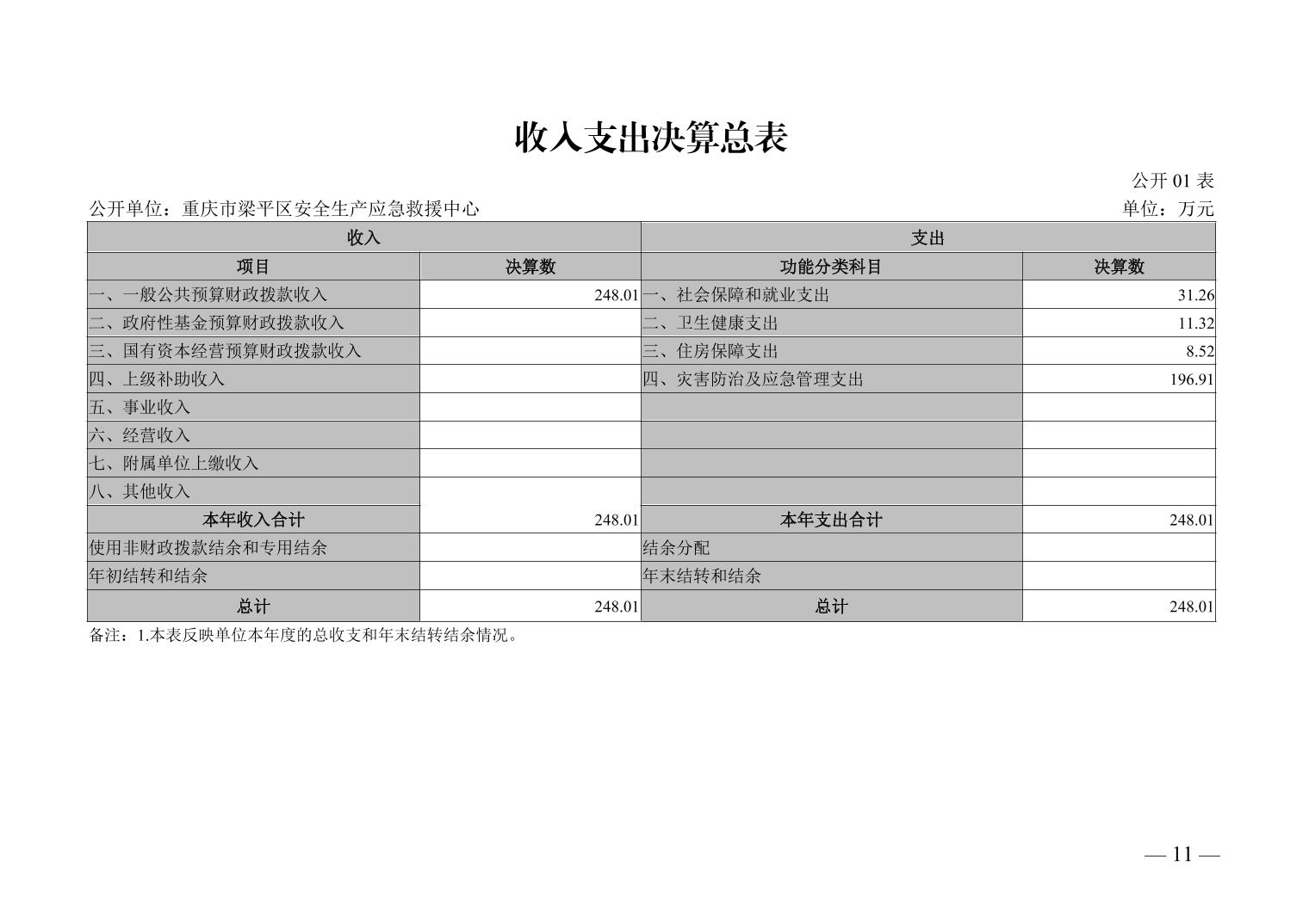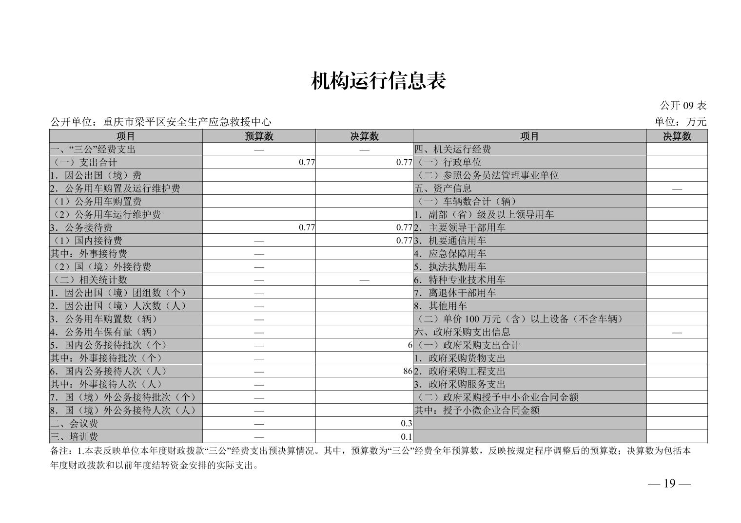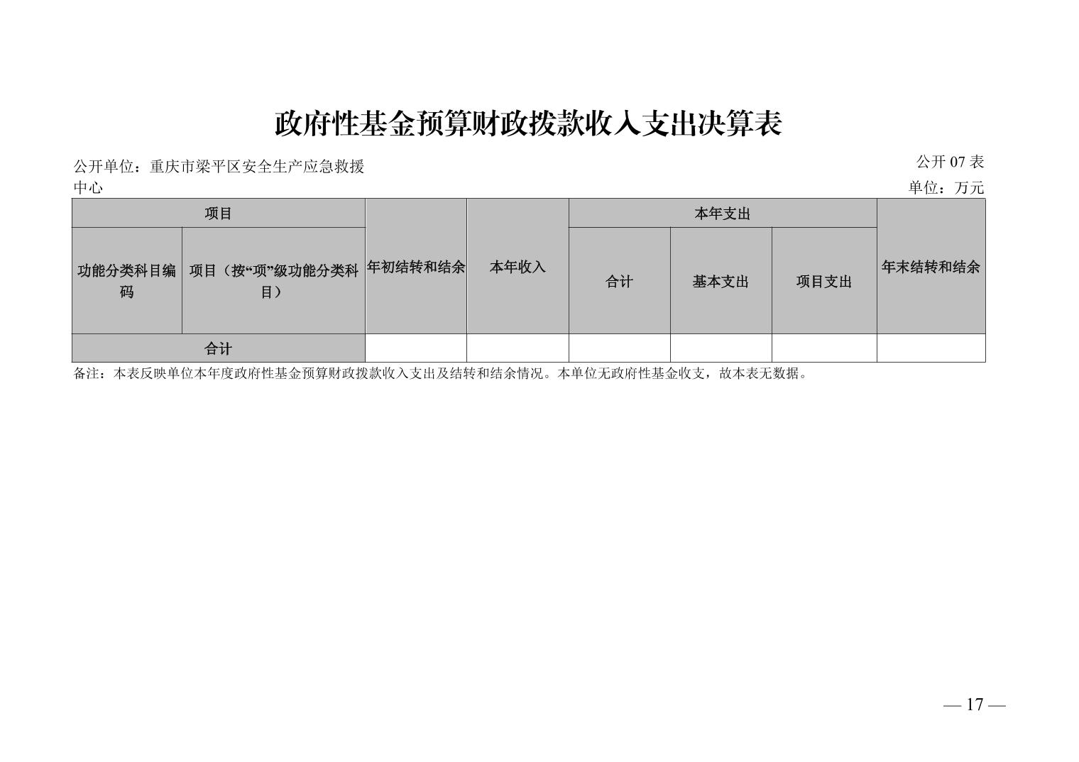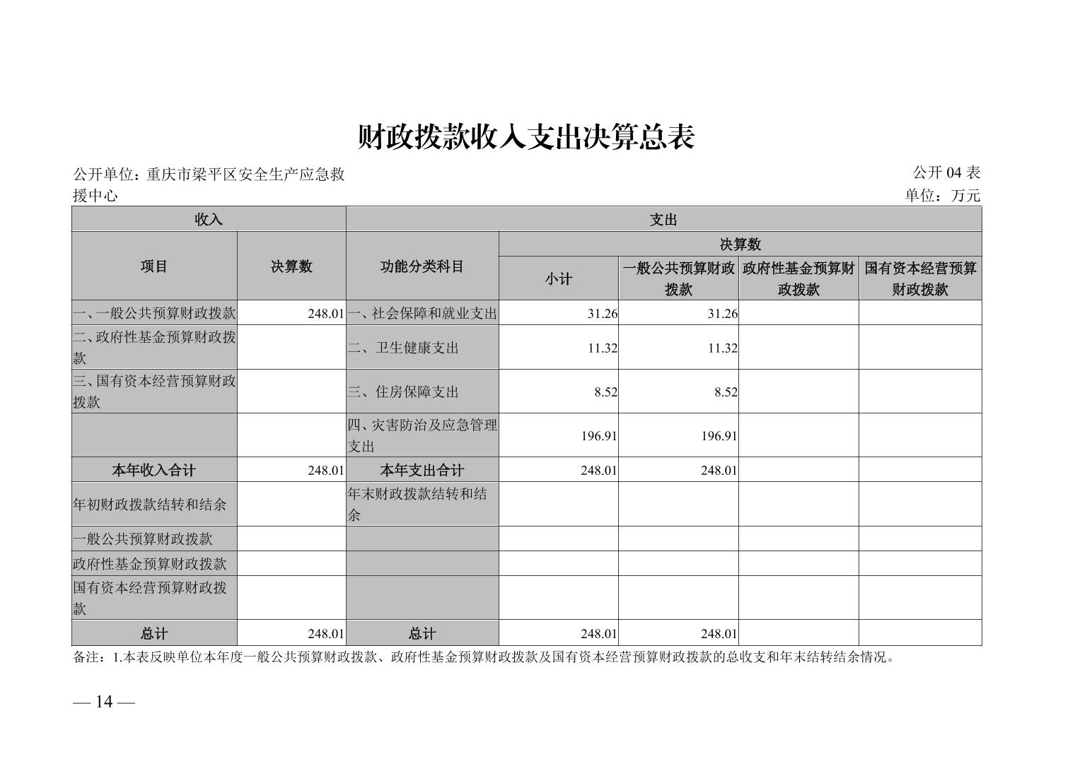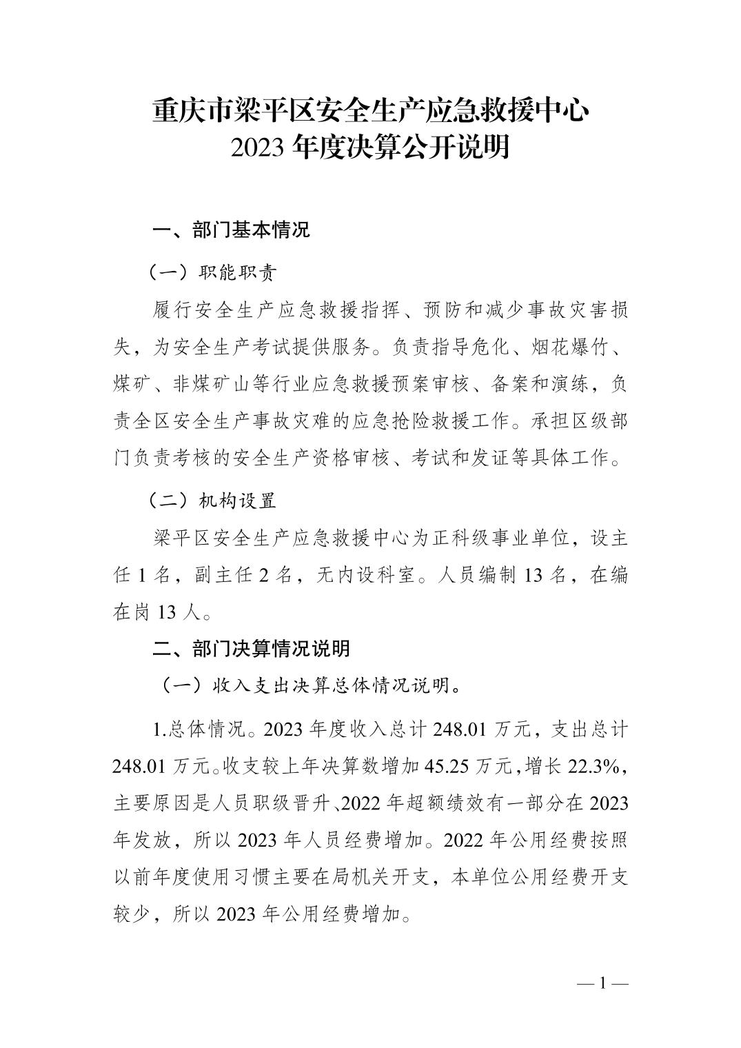 標題 重慶市梁平區安全生產應急救援中心_決算公開說明及公開報表