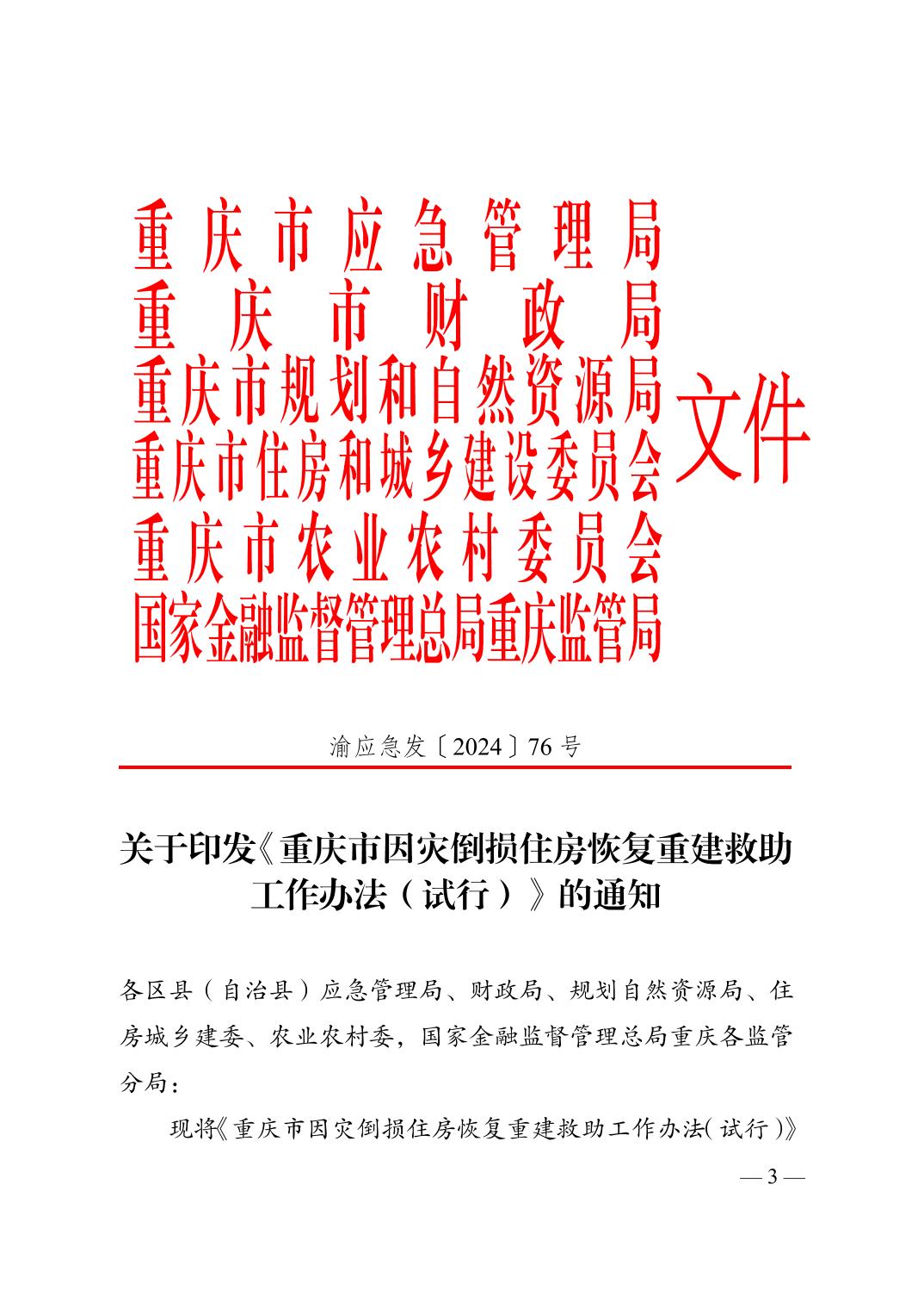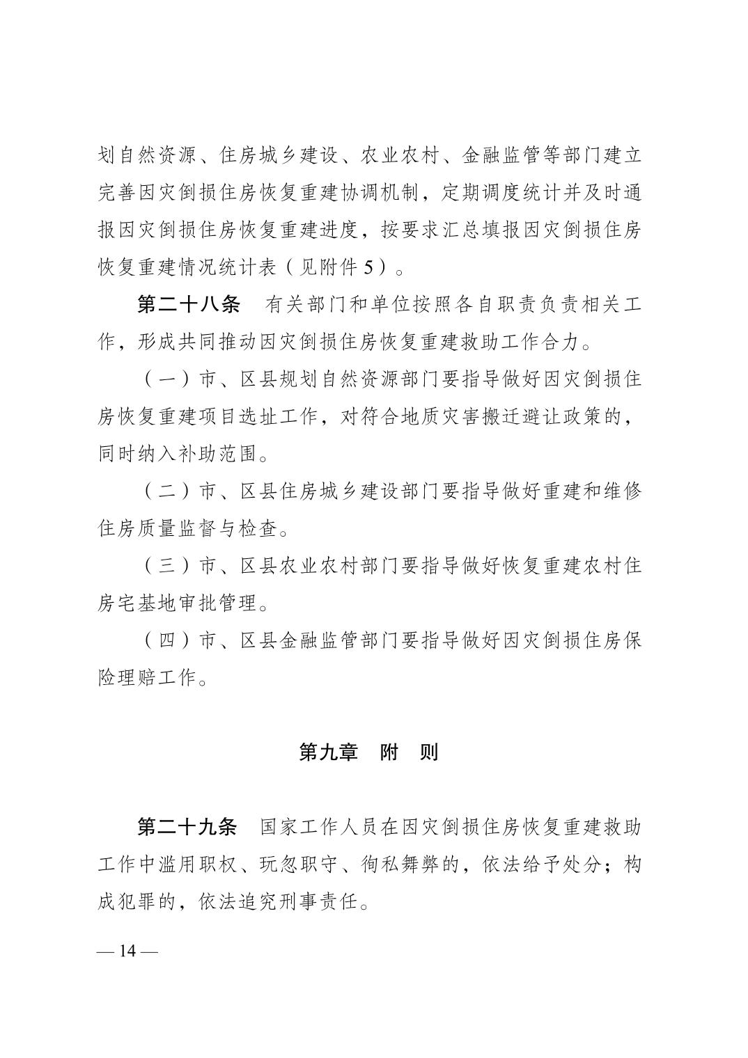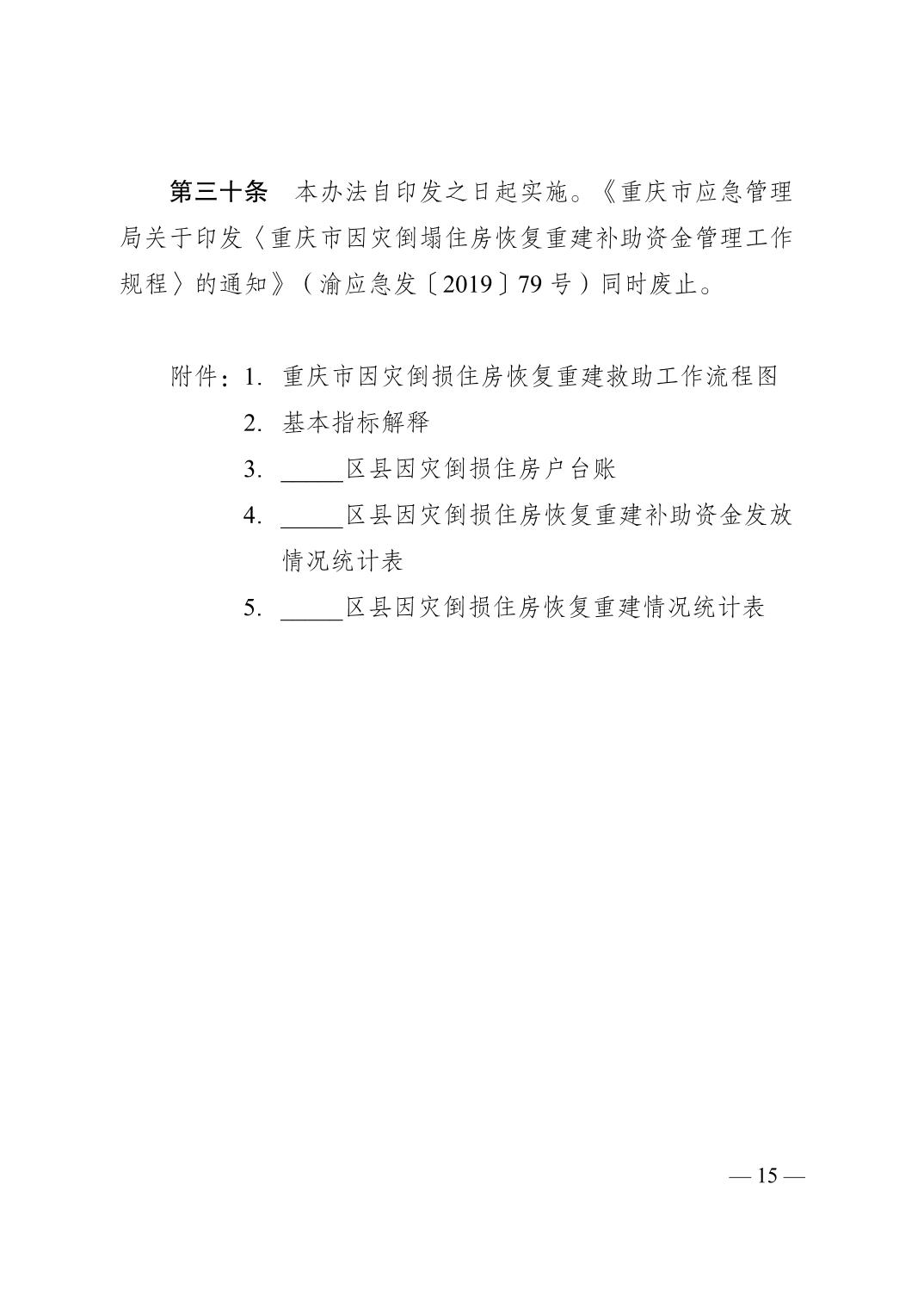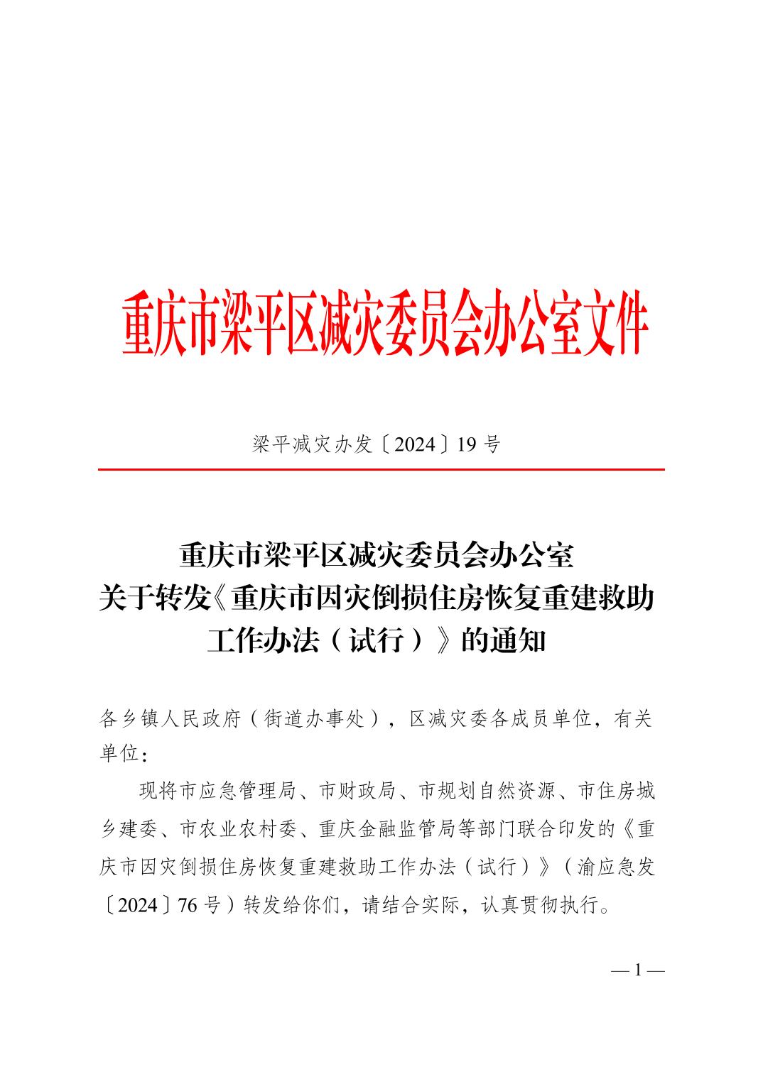 重慶市梁平區減災委員會辦公室關于轉發《重慶市因災倒損住房恢復重建救助 工作辦法(試行)》的通知