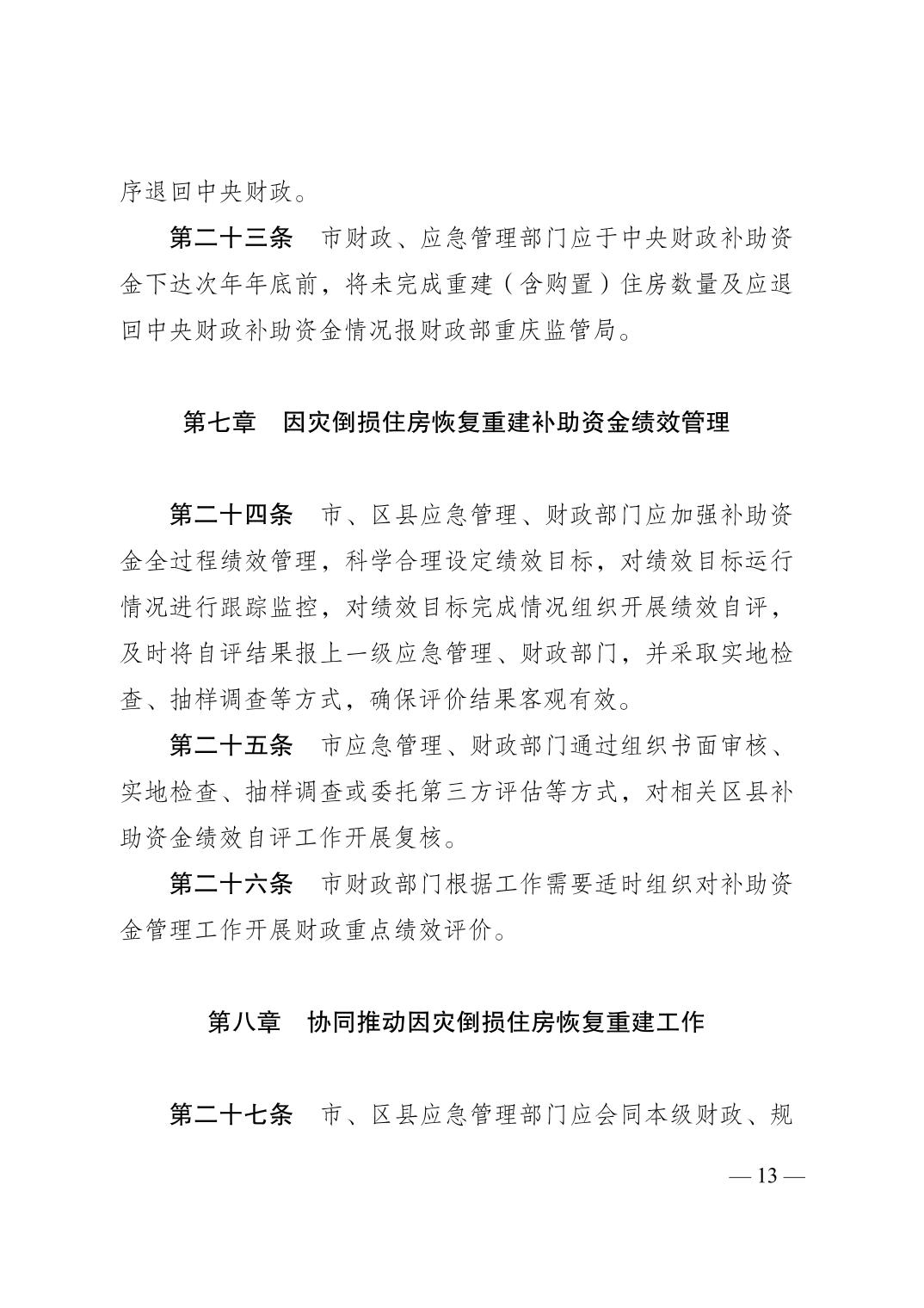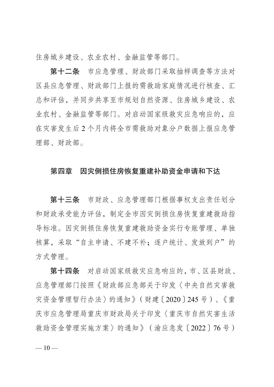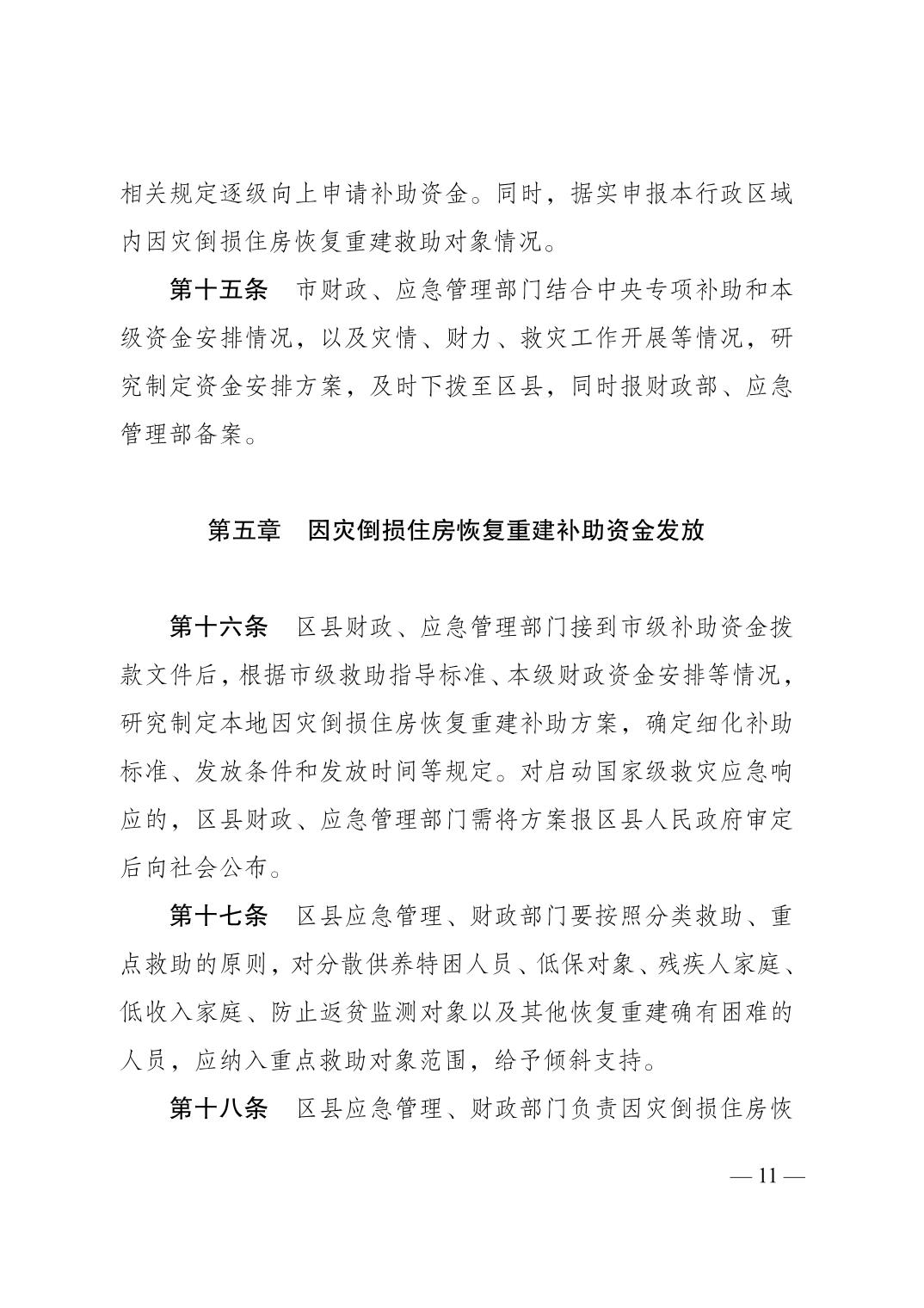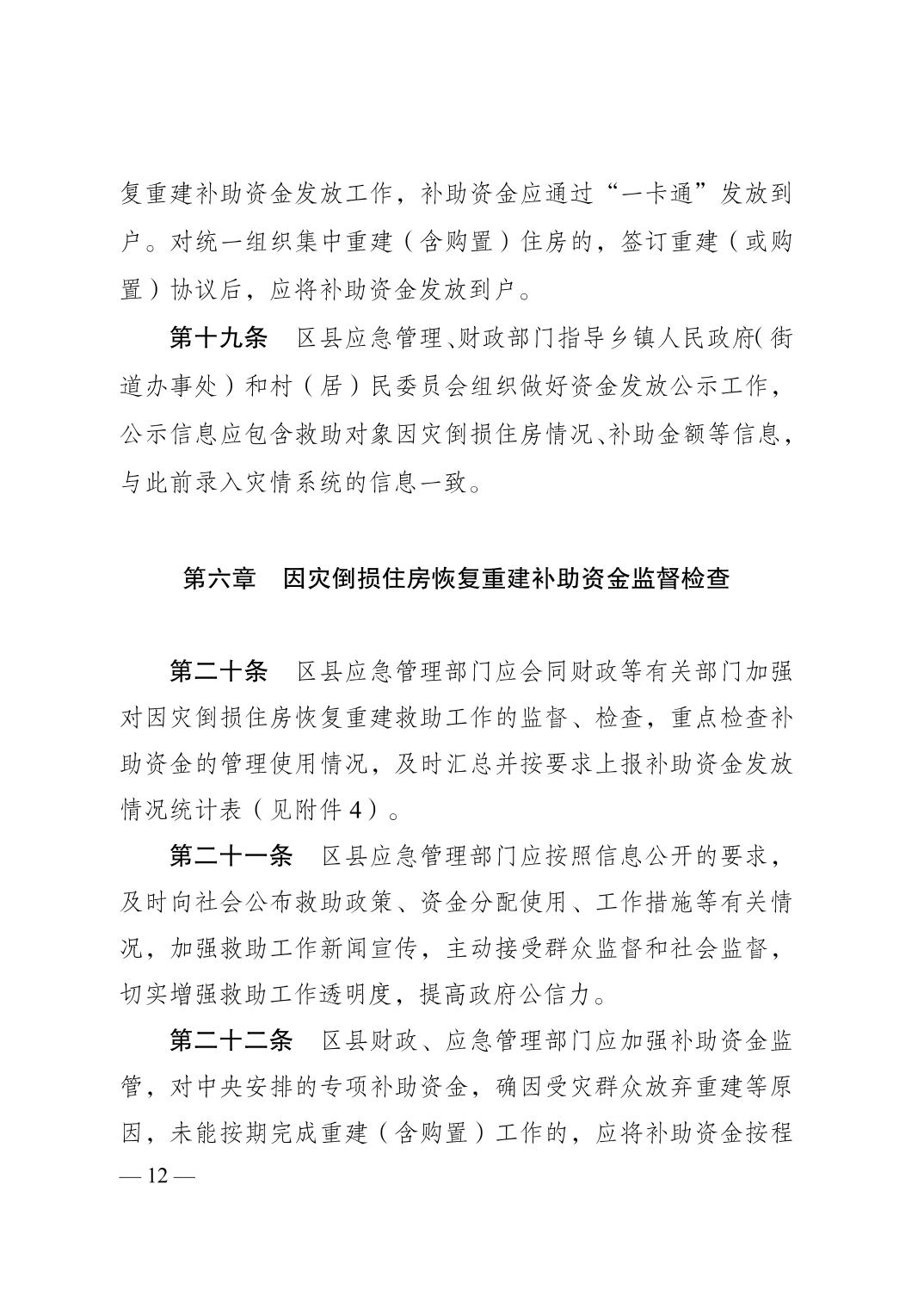 重慶市梁平區減災委員會辦公室關于轉發《重慶市因災倒損住房恢復重建救助 工作辦法(試行)》的通知